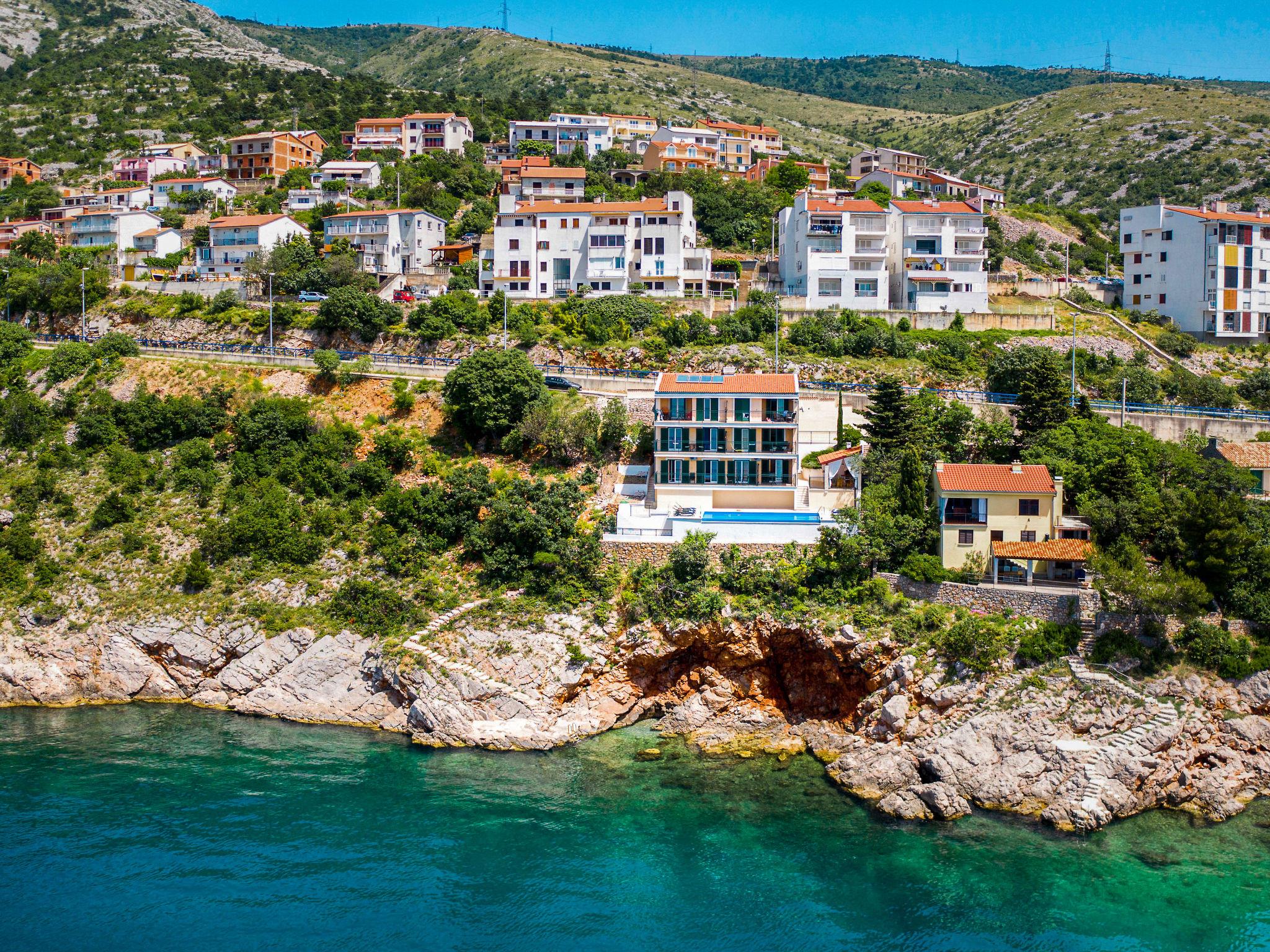 Apartment house "Marina". 1.2 km from the centre of Senj, 13 km from the centre of Klenovica, 20 km from the centre of Novi Vinodolski, 50 m from the sea, 50 m from the beach. For shared use: property 600 m2, swimming pool (10 x 3 m, depth 150 cm, seasonal availability: 15.Mar. - 15.Nov.). Outdoor shower, terrace, garden furniture, barbecue, pool maintenance by the owner/gardener. In the house: internet access, washing machine (for shared use, extra). Parking. Shop 700 m, restaurant 400 m, bus stop, pebble beach 300 m, rocky beach 50 m. There are no dogs on the rocky beach below the holiday house allowed.