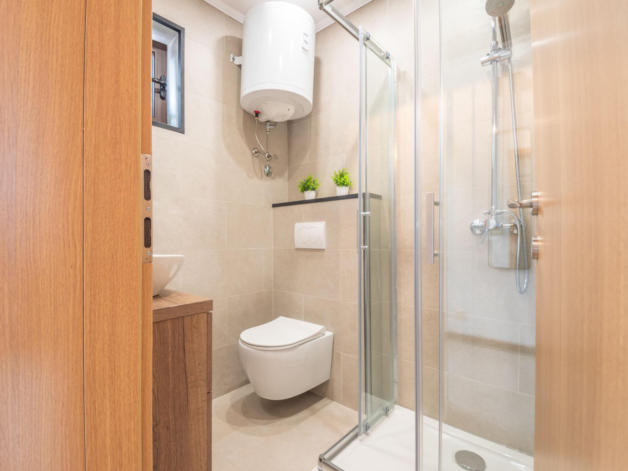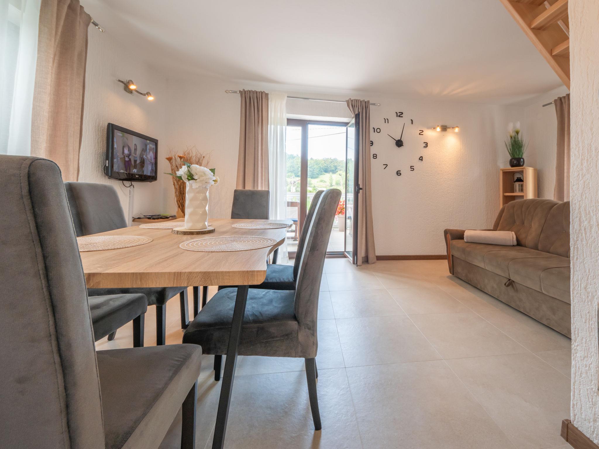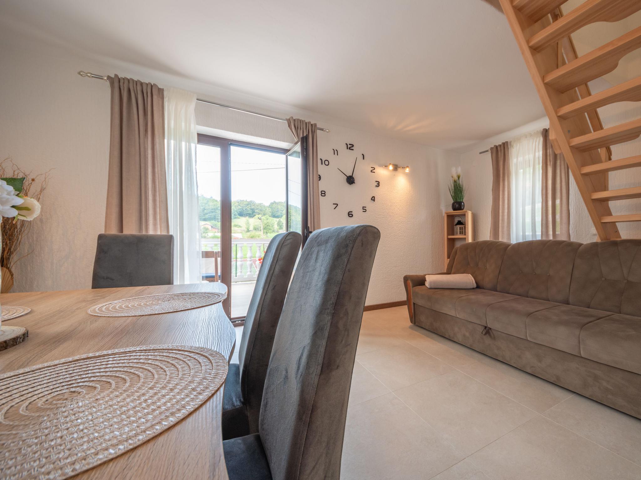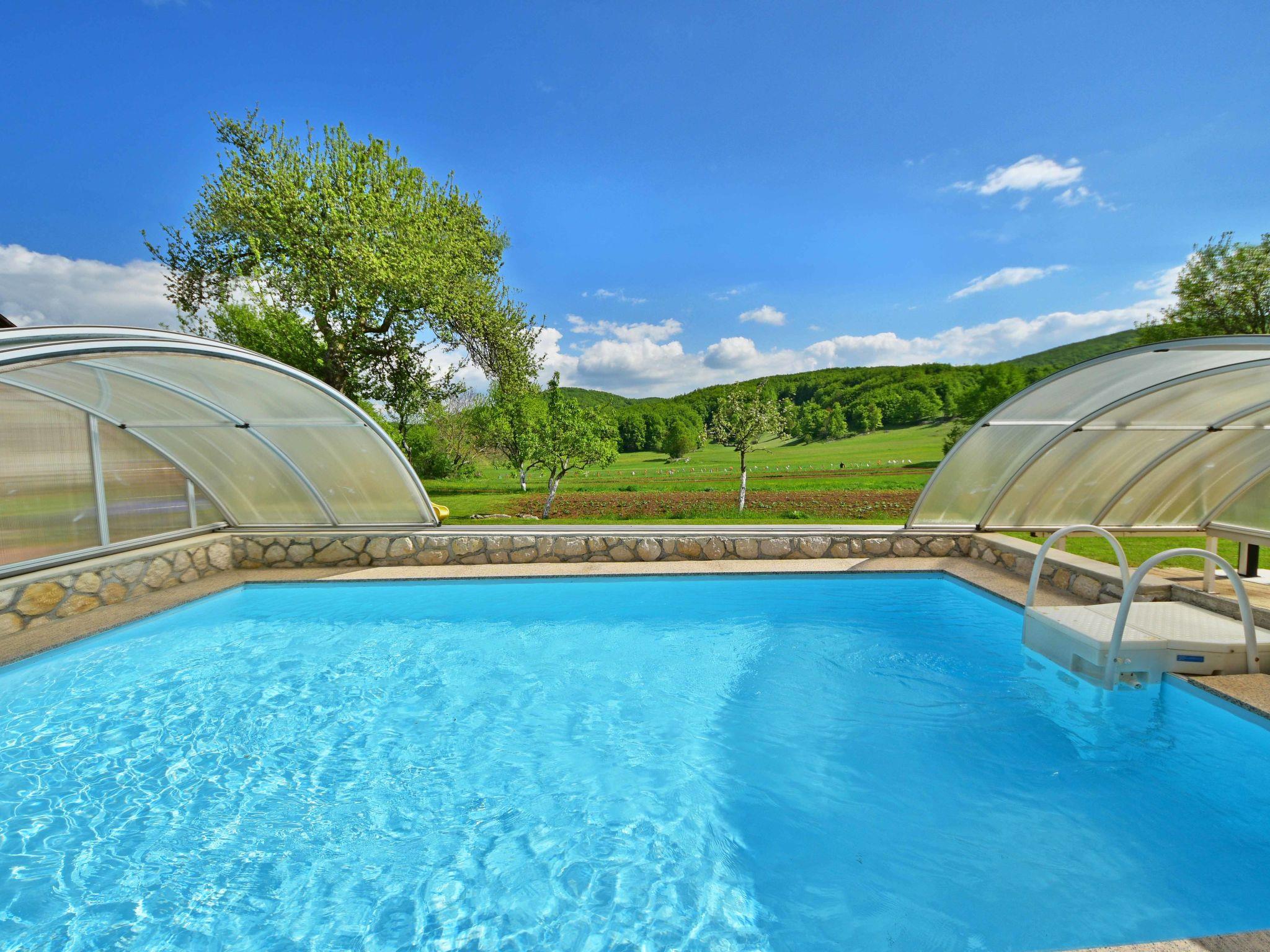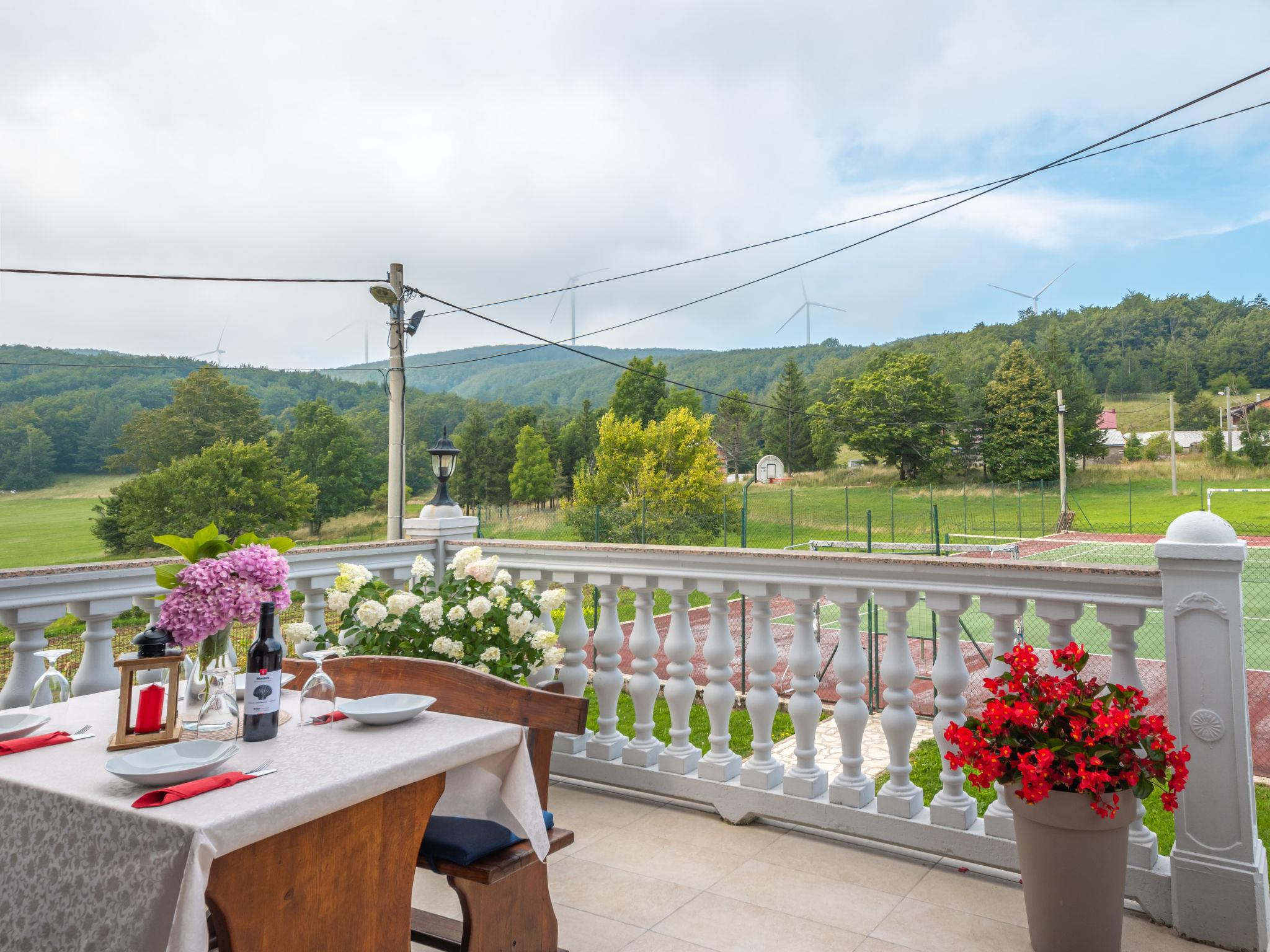 Single-family house "Nada", 2 storeys. Above Senj, in the hamlet Krivi Put 15 km from the centre of Senj, in a quiet, sunny position, 15 km from the sea, in the countryside. For shared use: property 5'000 m2 with lawn 2'000 m2, trees, swimming pool angular (6 x 4 m, 27 m2, depth 120 cm, seasonal availability: 01.Jun. - 30.Sep.) with shutter cover. Outdoor shower, tennis, floodlit, garden furniture, barbecue. In the house: internet access, washing machine. Parking at the house on the premises. Shop 15 km, restaurant 8 km, bus stop 13.7 km, shingle beach 15 km, concrete beach 15 km. Please note: Property ref. HR3420.700.1 is situated on the same property. Swimming pool with hydromassage. Available at the object HR3420.700.1: room with billiard, table football, darts and pinball for shared use.