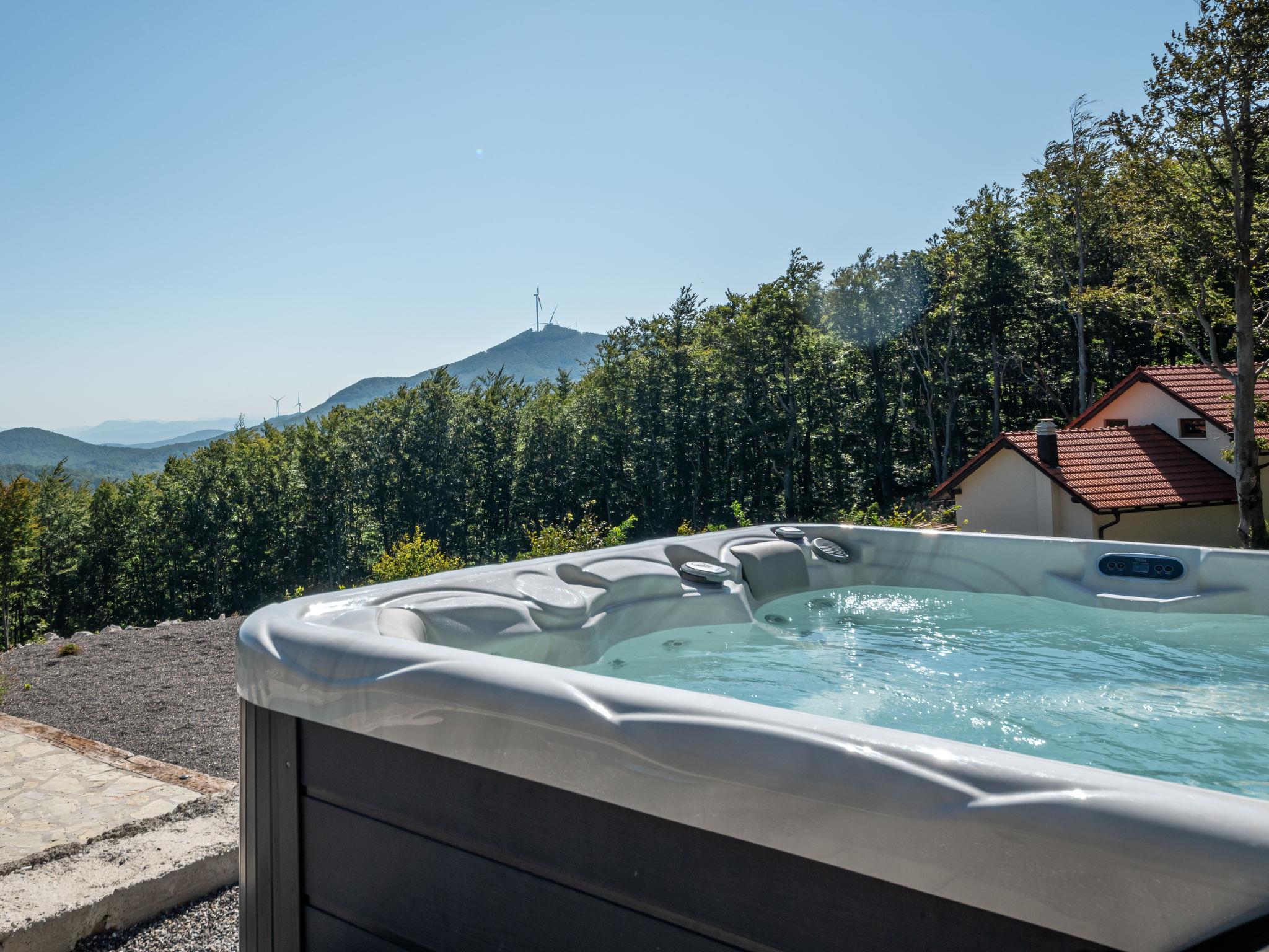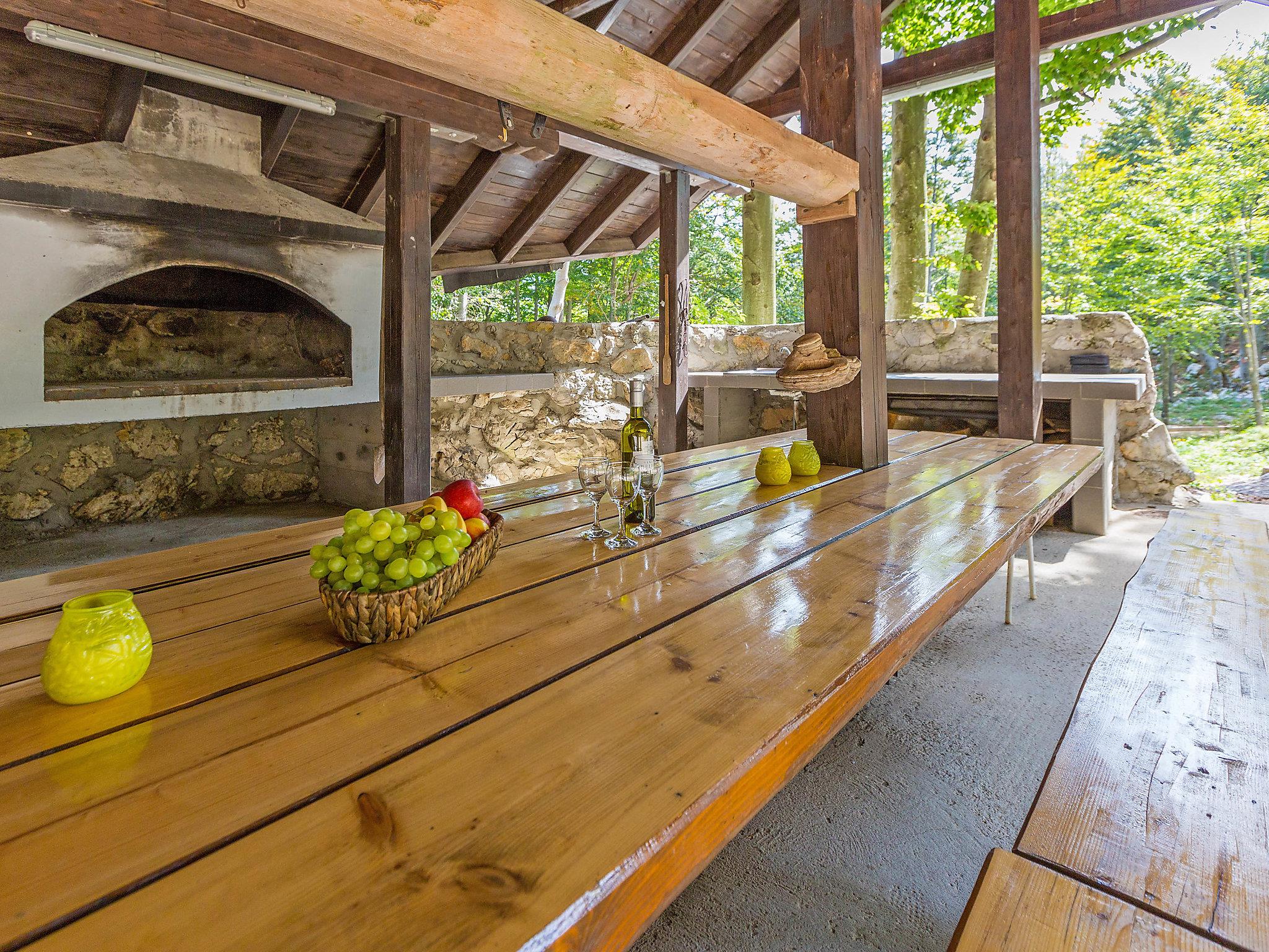 Chalet "Vršak", 2 storeys, surrounded by trees. Above Senj, in the hamlet Alan 19 km from the centre of Senj, in a secluded, quiet position, 19 km from the sea, in the woods. For shared use: property 5'000 m2 with trees. Boccia. Private: property 1'000 m2, swimming pool angular (8 x 3 m, depth 150 cm, seasonal availability: 01.Jun. - 15.Sep.). Outdoor shower, hot tub, arbour, terrace (70 m2), garden furniture, barbecue, pool maintenance by the owner/gardener. In the house: internet access, washing machine. Motor access to the house (100 m via unmade road). Parking at the house on the premises. Shop 19 km, restaurant 19 km, bus stop 16 km, shingle beach 19 km, concrete beach 19 km. Walking paths from the house, cycle lane 20 m.