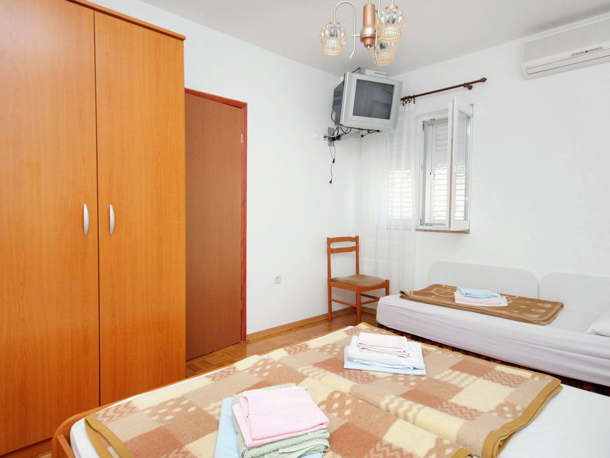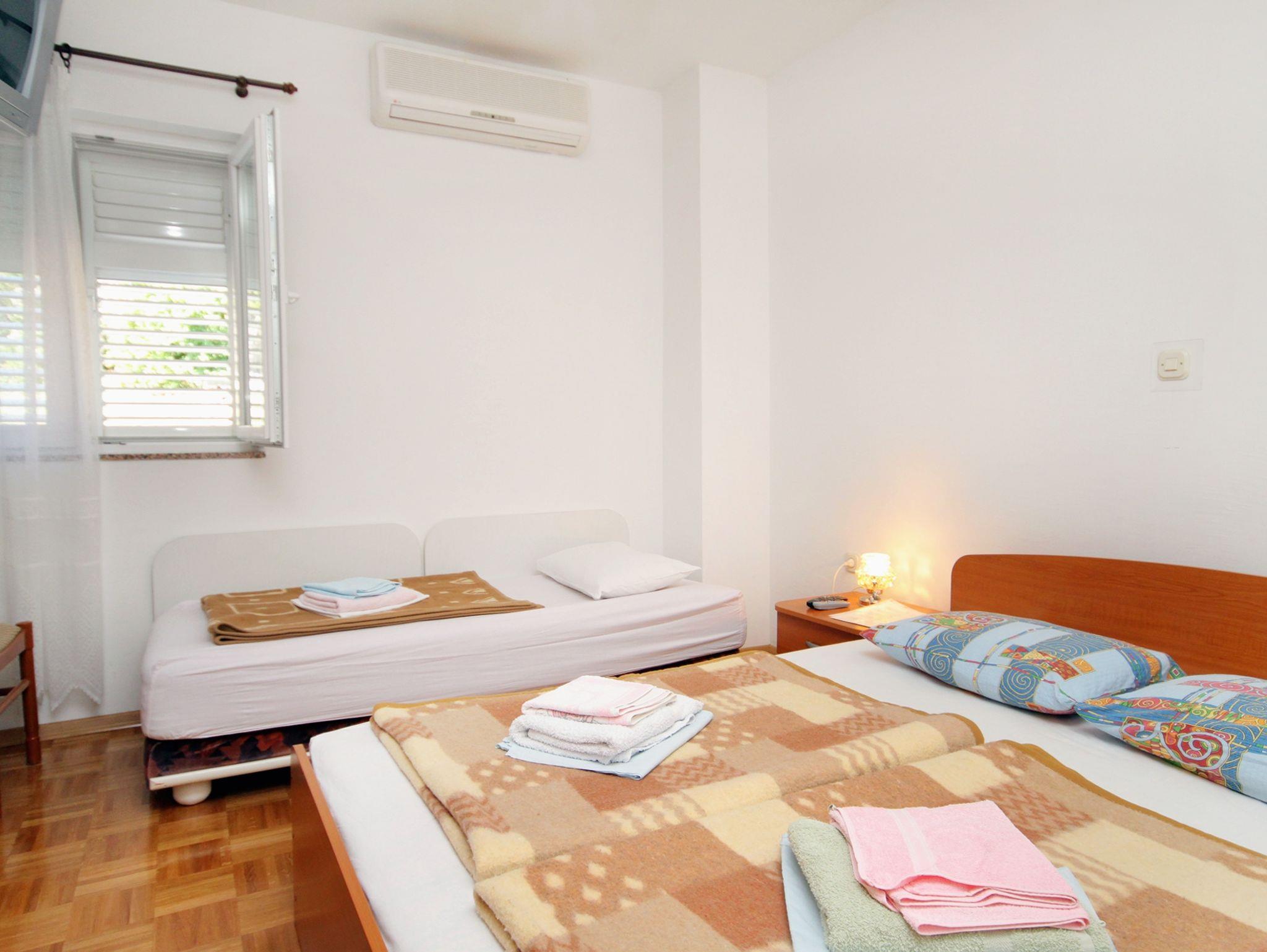 Ferienwohnung bietet Platz für 3 Gäste. Die Betten sind in Schlafzimmern, die es 1 gibt, innerhalb einer Gesamtfläche von 23m2, angeordnet. Die Gäste haben eine eigene Terrasse zur Verfügung, auf der sie in warmen Sommernächten genießen können. Das Apartment bietet Meerblick. Es ist erlaubt, Speisen auf dem Gemeinschafts-Grill vorzubereiten. Unterkunftseinheit hat Räume, die von dem Rest der Einheit abgetrennt werden. IM PREIS INBEGRIFFEN: Kurtaxe, Endreinigung, Parkplatz, Internet, Bügeleisen. UNVERBINDLICHE ZUSÄTZLICHE KOSTEN: Klimatisierung (5,00 € pro Nacht), Wäschewaschen (5,00 € Waschen), Zusatzbett (7,00 € pro Nacht). Die Verfügbarkeit zusätzlicher Dienstleistungen in Ihrem reservierten Termin und die Preise derselben (falls nicht aufgeführt) müssen im Voraus überprüft werden. Zusätzliche Dienstleistungen die in der Zahlungsaufforderung nicht aufgeführt sind werden direkt beim Vermieter bezahlt, angenommen der Gast nutzt auch diese. Ermäßigung auf den Grundpreis: Gratistag 14=13 (bei einem Aufenthalt von 14 Tagen oder mehr erhalten Sie einen Gratistag für den Aufenthalt bis 31.12.26).