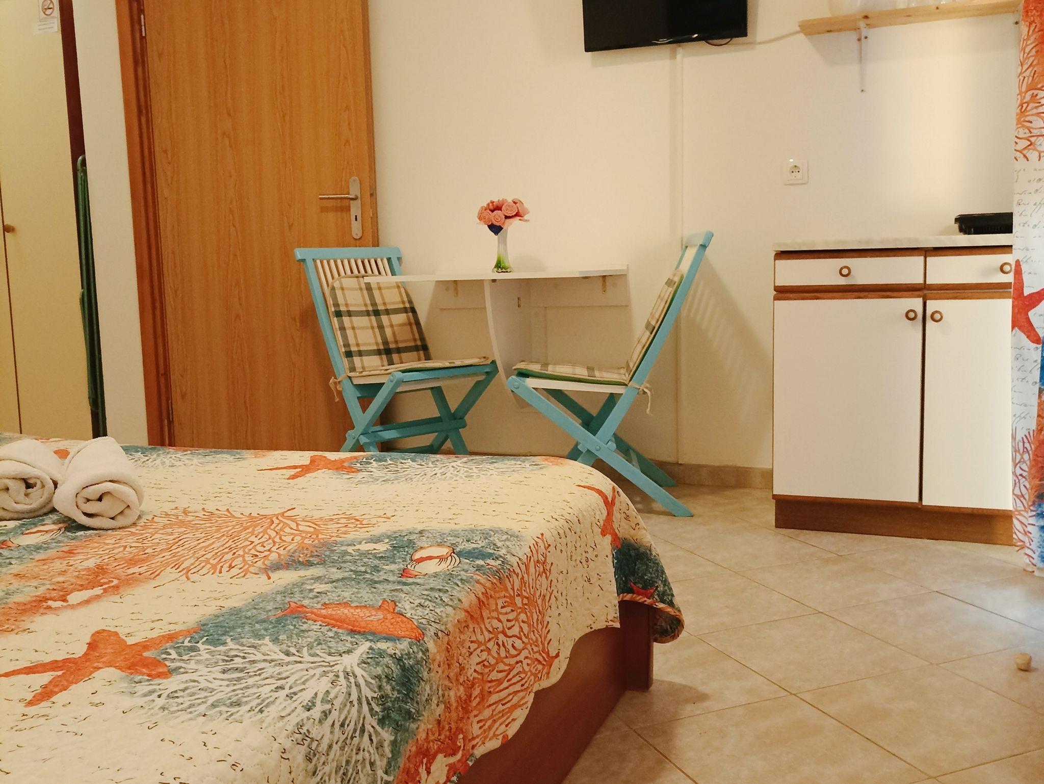 Zimmer bietet Platz für 2 Gäste. Die Betten sind in Schlafzimmern, die es 1 gibt, innerhalb einer Gesamtfläche von 22m2, angeordnet. Die Gäste haben eine eigene Terrasse zur Verfügung, auf der sie in warmen Sommernächten genießen können. Das Zimmer bietet Meerblick. Es ist erlaubt, Speisen auf dem Gemeinschafts-Grill vorzubereiten. Während ihres Aufenthalts können Gäste das gemeinsam zur Nutzung stehende Schwimmbad benutzen. In der Unterkunftseinheit besteht die Möglichkeit des Mitbringens von Haustieren gegen Aufpreis. Die reservierte Unterkunftseinheit ist ein Zimmer mit eigenem Badezimmer ohne die Möglichkeit der Nutzung einer Küche. IM PREIS INBEGRIFFEN: Kurtaxe, Endreinigung, Pool, Parkplatz, Internet, Föhn. UNVERBINDLICHE ZUSÄTZLICHE KOSTEN: Klimatisierung (5,00 € pro Nacht), Wäschewaschen (5,00 € Waschen), Haustiere (15,00 € pro Nacht). Die Verfügbarkeit zusätzlicher Dienstleistungen in Ihrem reservierten Termin und die Preise derselben (falls nicht aufgeführt) müssen im Voraus überprüft werden. Zusätzliche Dienstleistungen die in der Zahlungsaufforderung nicht aufgeführt sind werden direkt beim Vermieter bezahlt, angenommen der Gast nutzt auch diese.