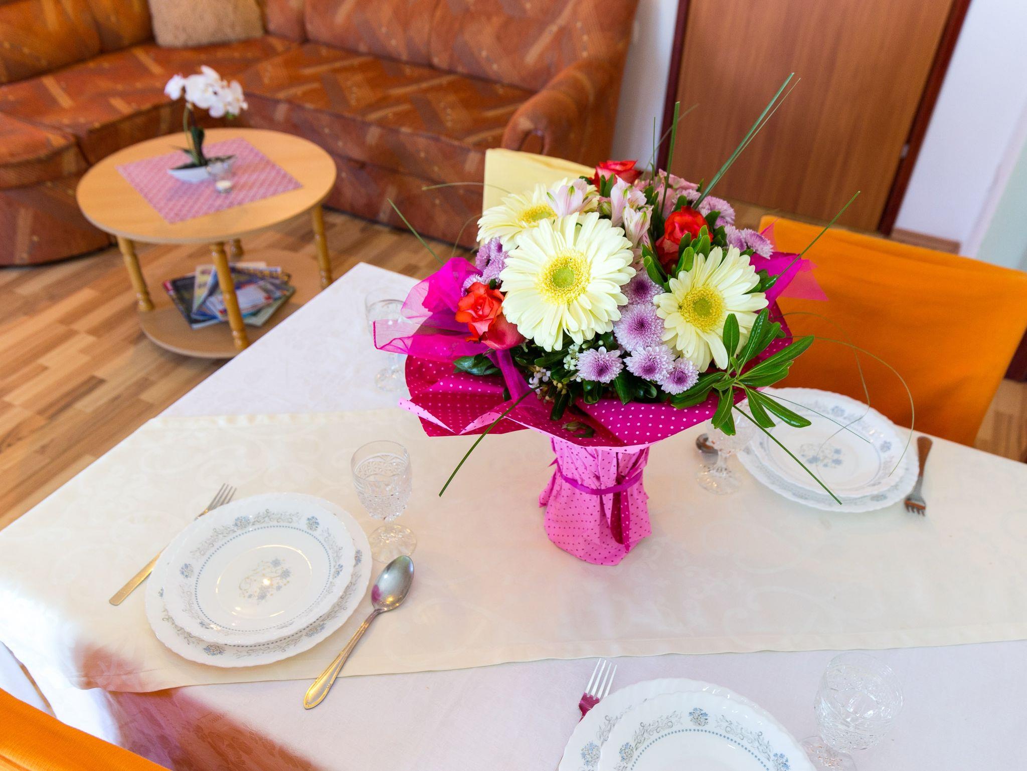 Umgebung des Objekts (Ordentlich), Hof (600m2, Kinderbereich, Sitzbereich), Parkplatz (Anzahl der Parkplätze: 7, Entfernung vom Objekt: im Hof), Pool: gemeinsam, Dimensionen: 6m x 3.5m x 1.5m, Wassertyp: Süßwasser, Grill: gemeinsam, WiFi Internet, Wäschewaschen, Föhn