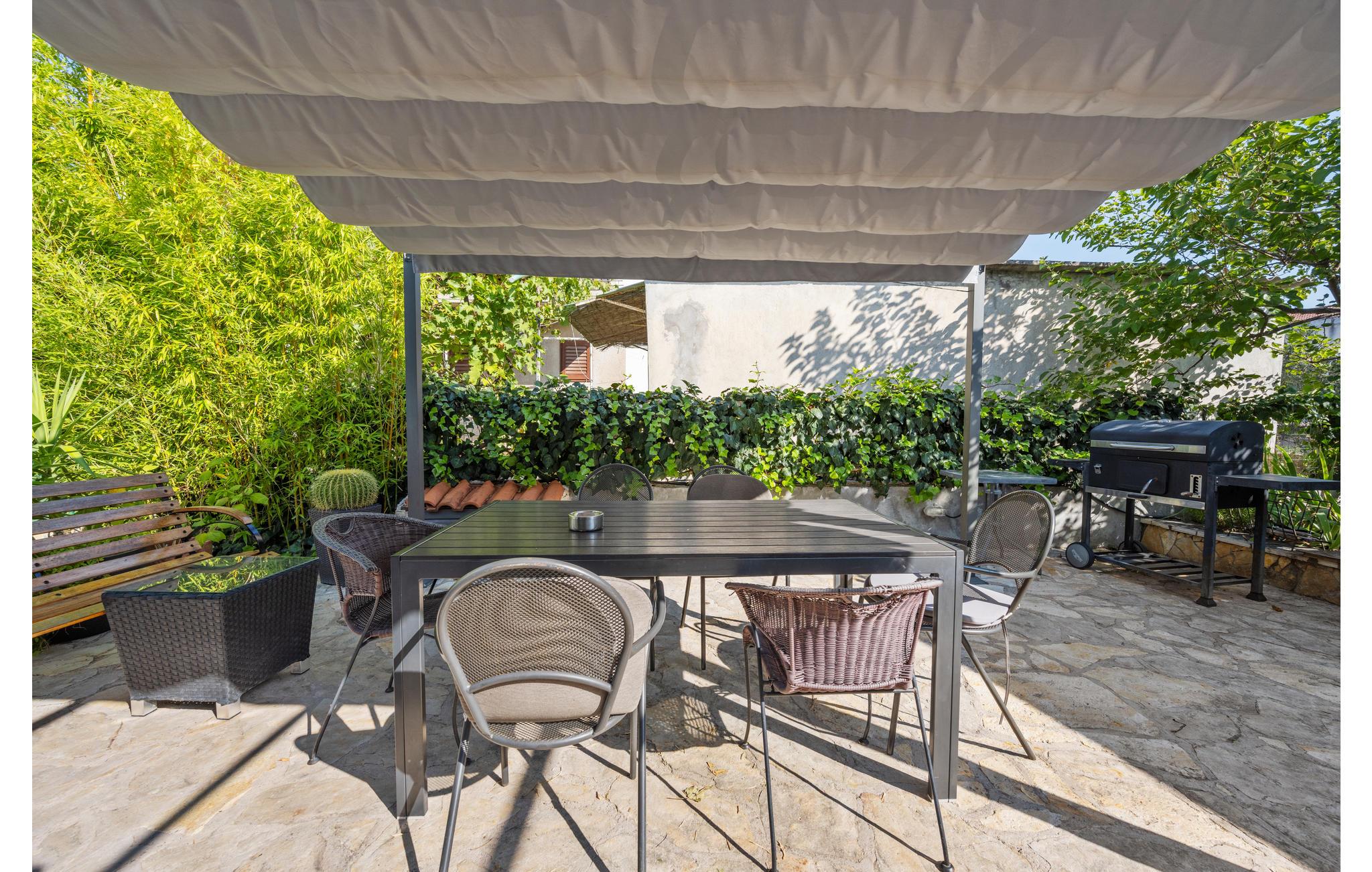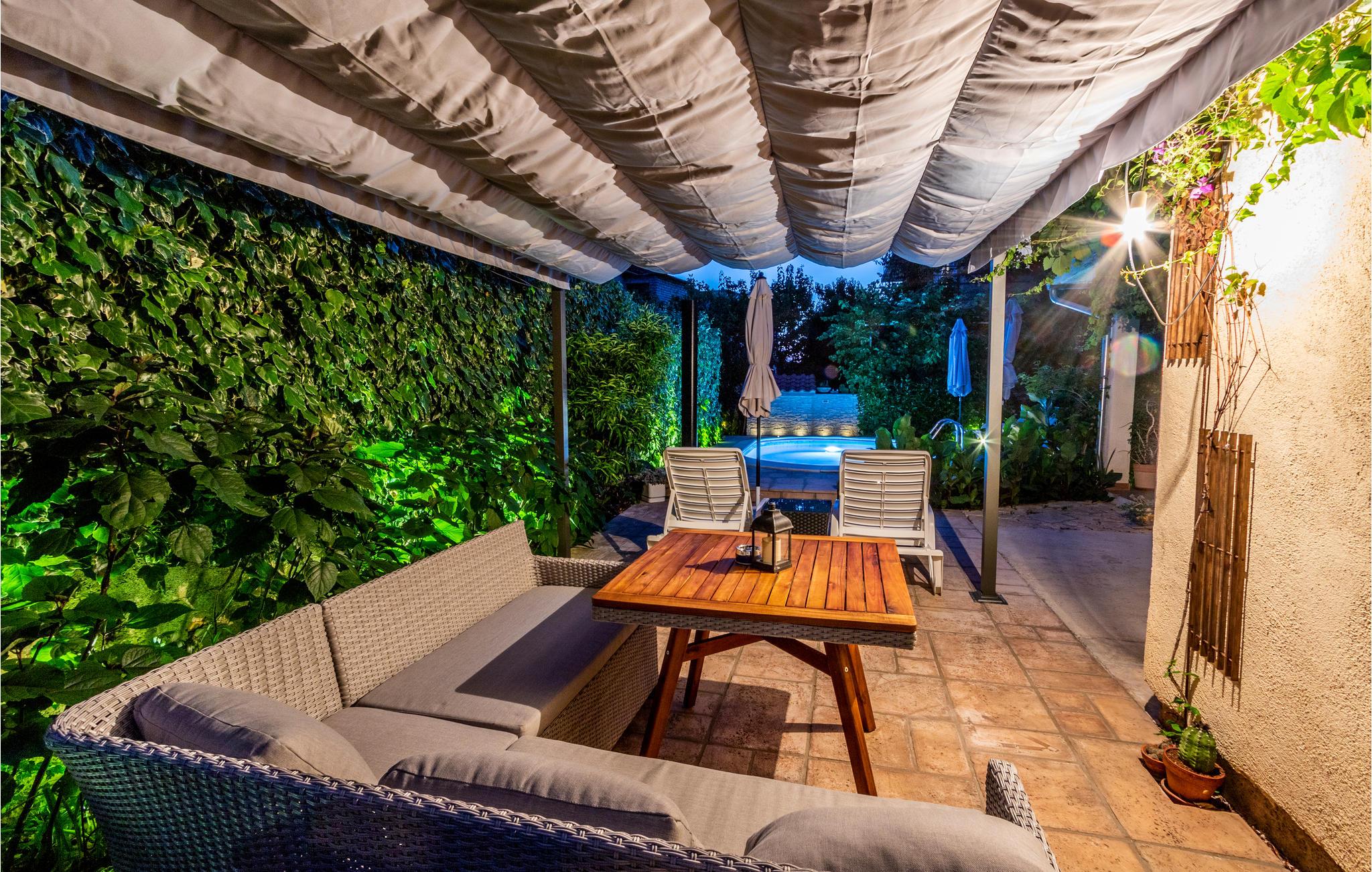 Uden for huset er der flere dejlige steder at slappe af i solen eller i skyggen. Snup en masse friske dukkerter i den fælles pool, nyd solbadning i en liggestol og milde sommeraftener på den overdækkede terrasse.