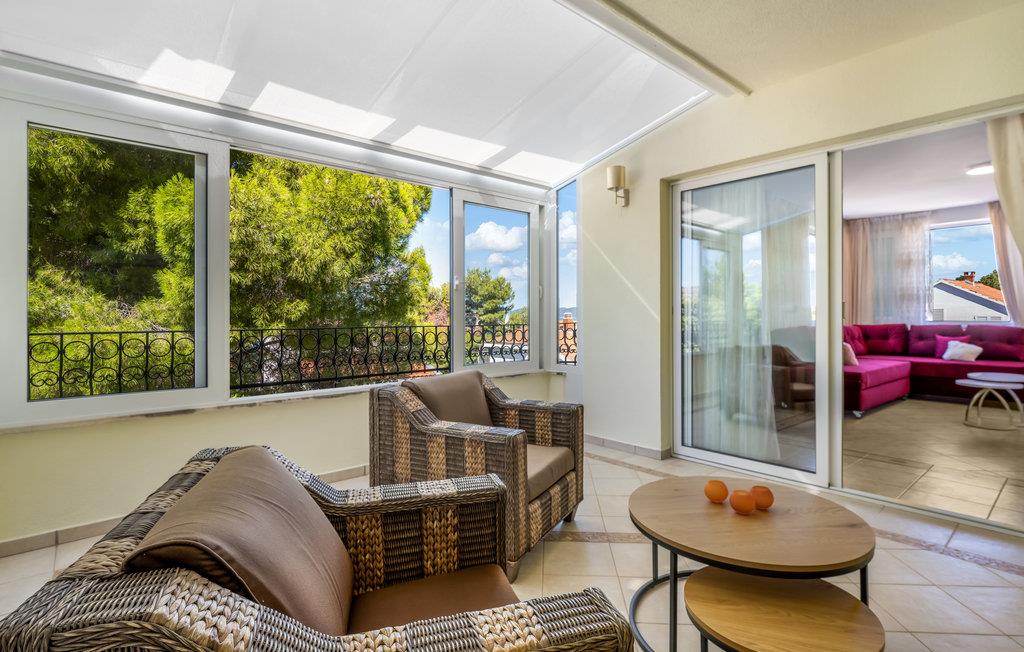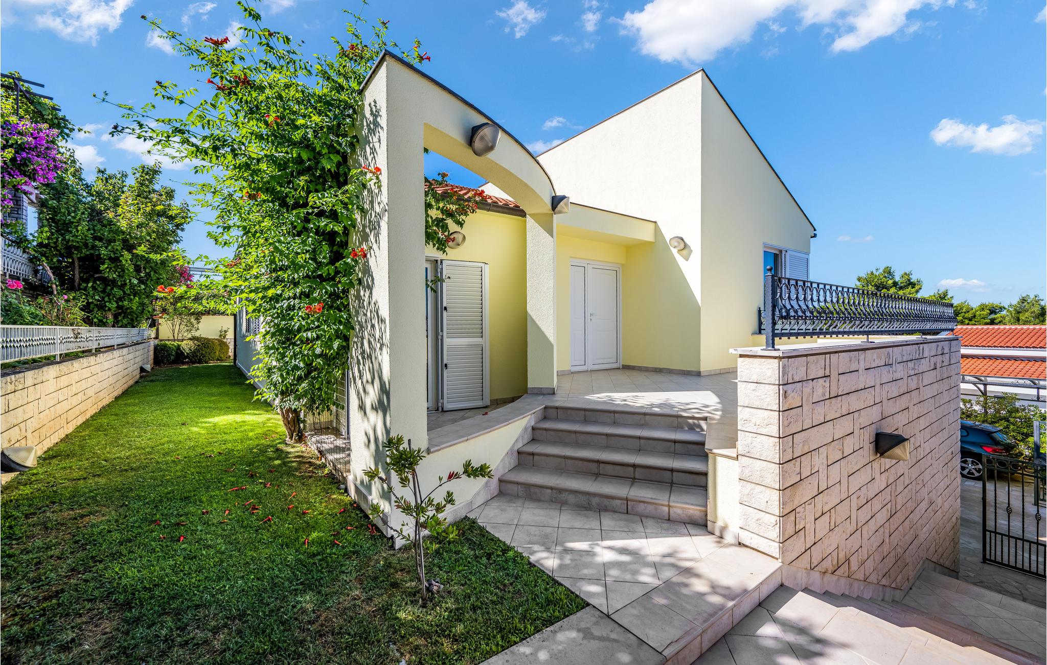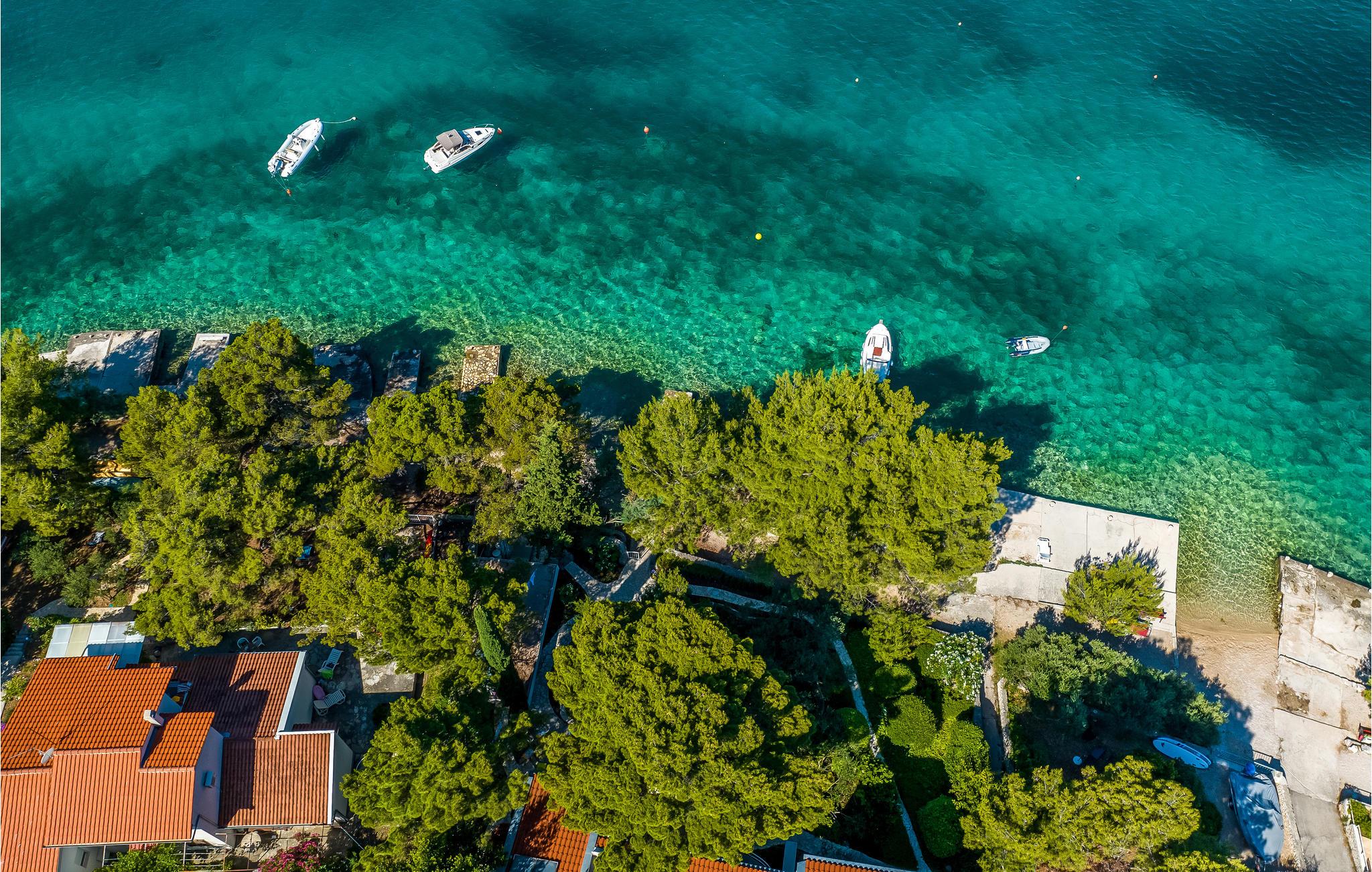 Glæd dig til dette farverige og rummelige feriehus på anden række fra vandet. Velkommen til dette smukke og hyggelige feriehus i Zaboric, fra hvis terrasse og første sal du kan se havet og måske endda dufte det salte vand. På to etager finder du veludstyrede værelser, hver i en ny farve, der giver dig en god feel-good atmosfære. Føl dig hjemme her og tryll dine måltider frem i det moderne køkken eller på den udendørs grill, som du kan nyde på den overdækkede terrasse. Smid dit badehåndklæde over skulderen og gå de få meter til de små stenstrande og dyk ned i det turkise hav. Det krystalklare vand er ideelt til snorkling, som man normalt kan se ned til bunden af havet. I umiddelbar nærhed er der også butikker og restauranter, hvor du kan smage Dalmatiens gastronomi. Vi anbefaler et besøg i den nærliggende by Šibenik, som ligger direkte ud til havet, midt i den smukkeste natur, der findes på den kroatiske adriaterhavskyst, og samtidig er en historisk by, der har mange værdifulde kulturelle og historiske monumenter. Lidt længere væk, men absolut værd at se, er nationalparkerne Krka og Kornati, som hver især er unikke på sin egen måde og har utallige naturlige skønheder!