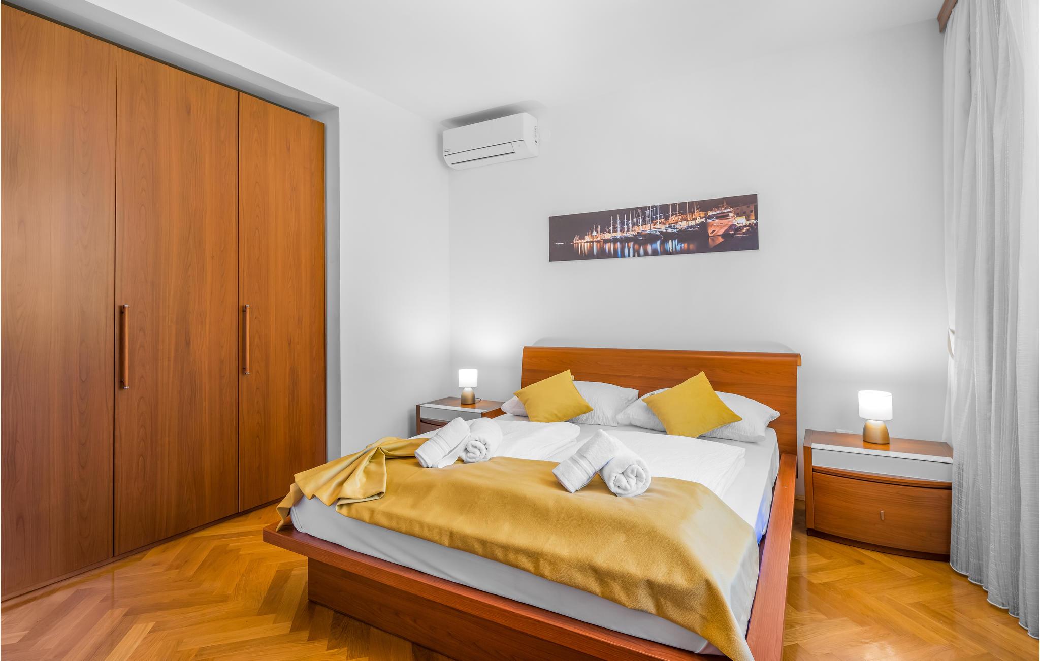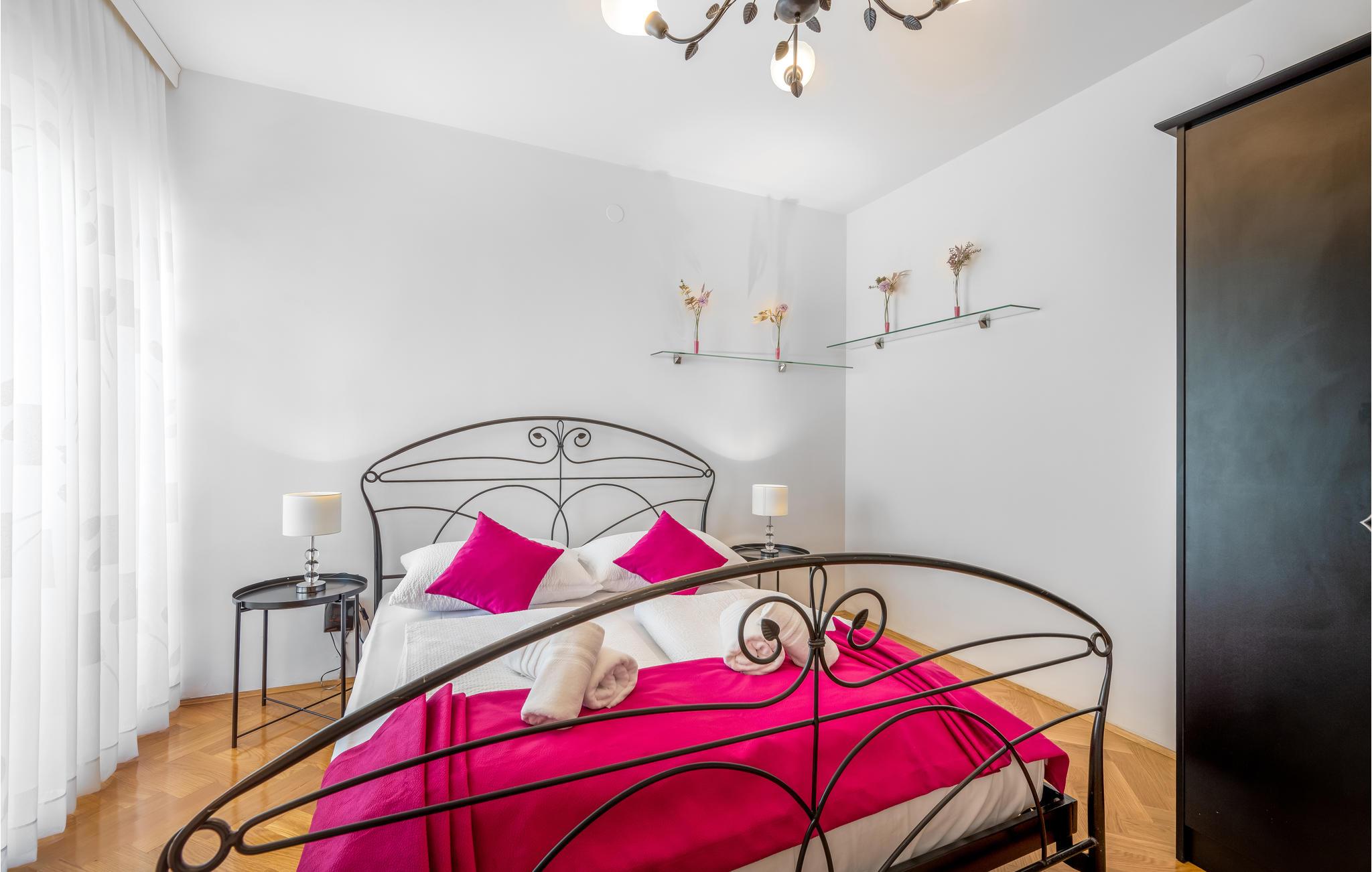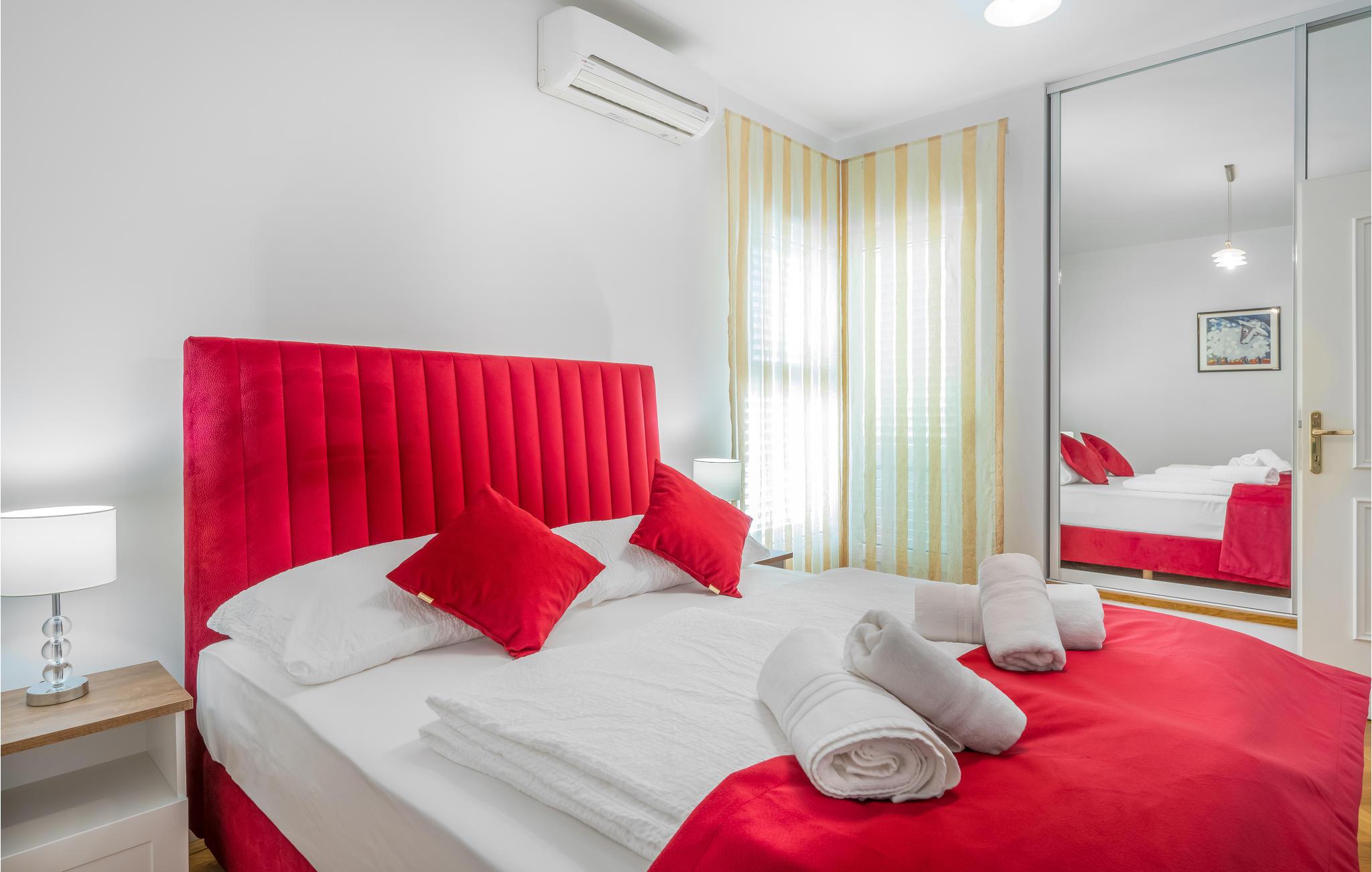 Glæd dig til dette farverige og rummelige feriehus på anden række fra vandet. Velkommen til dette smukke og hyggelige feriehus i Zaboric, fra hvis terrasse og første sal du kan se havet og måske endda dufte det salte vand. På to etager finder du veludstyrede værelser, hver i en ny farve, der giver dig en god feel-good atmosfære. Føl dig hjemme her og tryll dine måltider frem i det moderne køkken eller på den udendørs grill, som du kan nyde på den overdækkede terrasse. Smid dit badehåndklæde over skulderen og gå de få meter til de små stenstrande og dyk ned i det turkise hav. Det krystalklare vand er ideelt til snorkling, som man normalt kan se ned til bunden af havet. I umiddelbar nærhed er der også butikker og restauranter, hvor du kan smage Dalmatiens gastronomi. Vi anbefaler et besøg i den nærliggende by Šibenik, som ligger direkte ud til havet, midt i den smukkeste natur, der findes på den kroatiske adriaterhavskyst, og samtidig er en historisk by, der har mange værdifulde kulturelle og historiske monumenter. Lidt længere væk, men absolut værd at se, er nationalparkerne Krka og Kornati, som hver især er unikke på sin egen måde og har utallige naturlige skønheder!