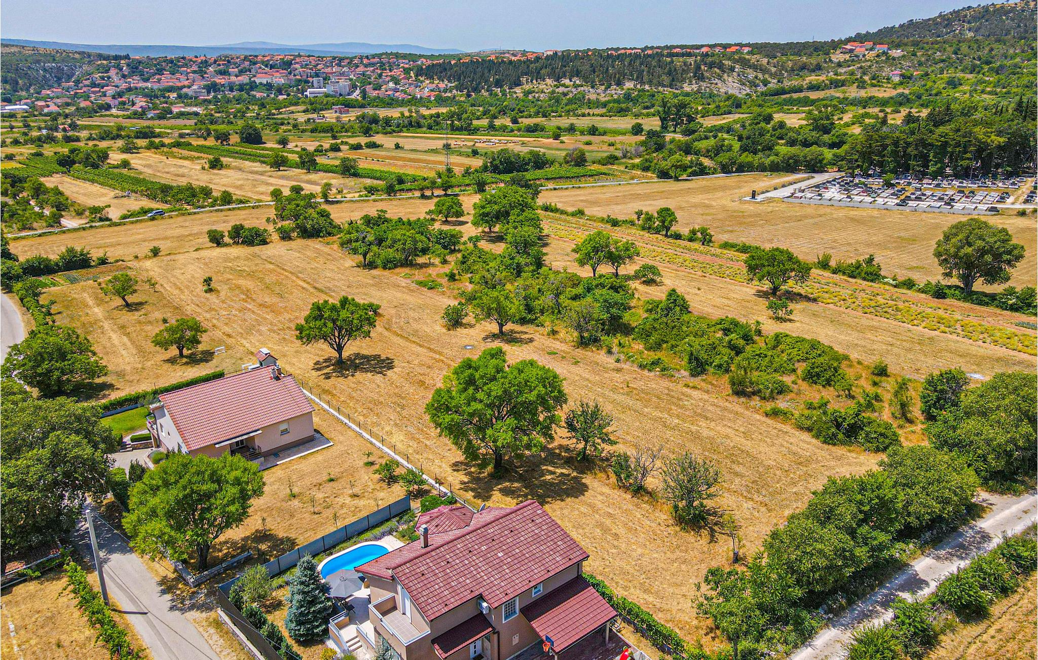 Dejligt og smagfuldt indrettet feriehus i den lille hyggelige landsby Badanj. Hele huset, undtagen et soveværelse, er i et plan og indrettet med alt til en afslappet ferie. På den store grund ligger husets helt private pool, hvor I kan svømme lige så meget og lige hvornår I har lyst. Lav mad på grillen og nyd den under åben himmel. Til afvekslende udflugter kan vi anbefale de nærliggende byer Drniš og Vrlika med mange historiske seværdigheder og naturligt skønne områder som Nationalparken Krka og de smukke vandfald Roski. I denne region er så meget at se og opleve at I får lyst til at komme igen og få det hele med.