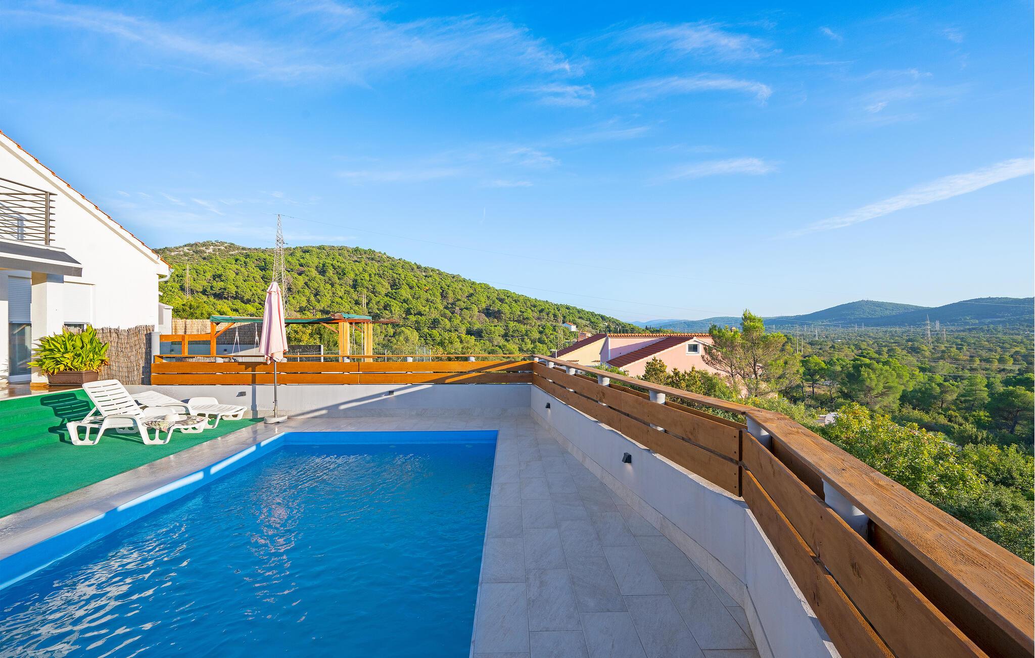 Dette smagfuldt indrettede feriehus, med sin egen pool, ligger i den lille landsby Bilice nær byen Šibenik.