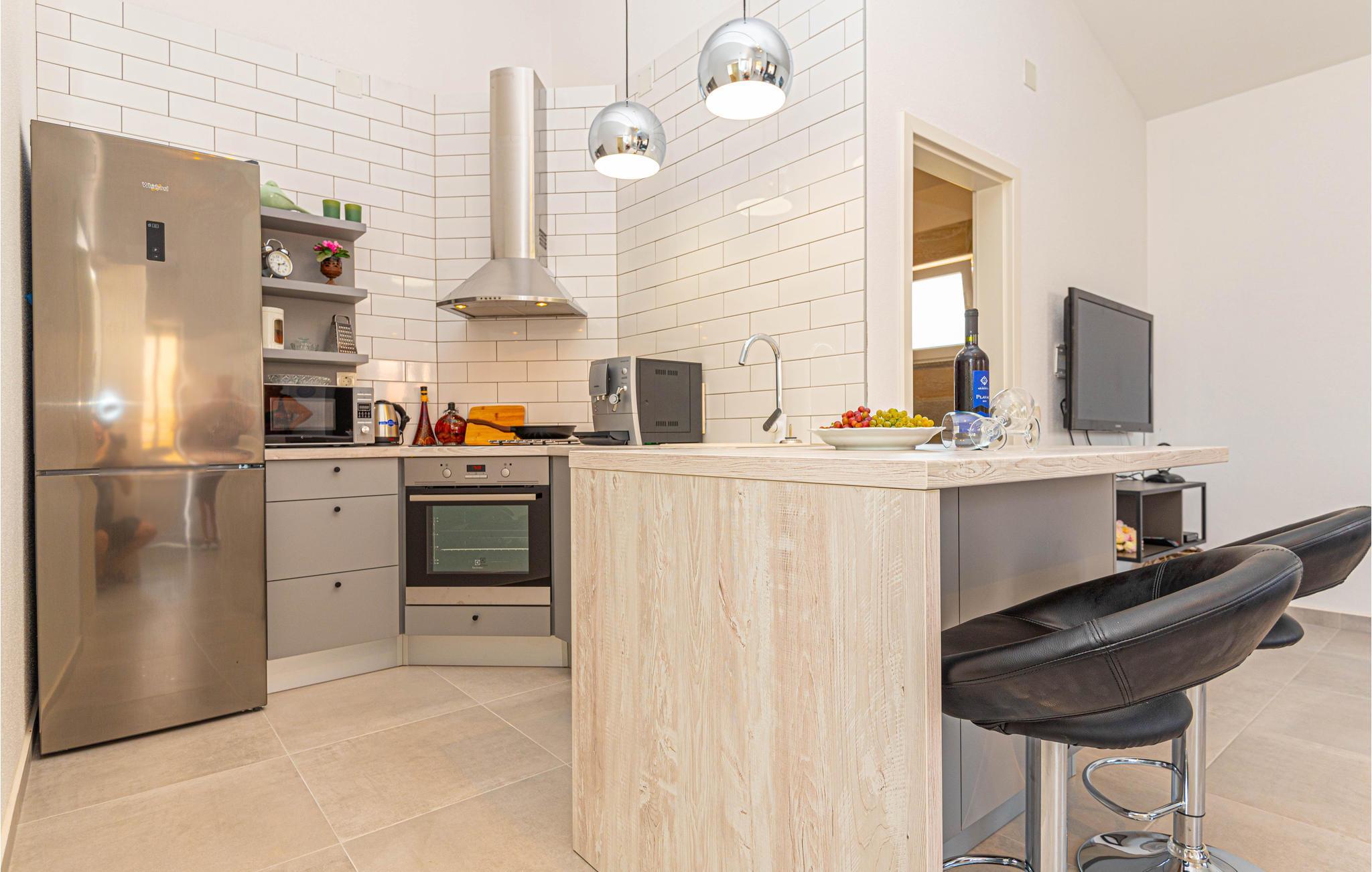 Denne flot møblerede ferielejlighed ligger i en lille by nær Bilice, ikke langt fra den maleriske by Sibenik. Lejligheden ligger på første sal i et familiehus og tilbyder masser af komfort til en familieferie. Boligarealet består af to soveværelser, et badeværelse og en køkken/spisestue med endnu et soveværelse.