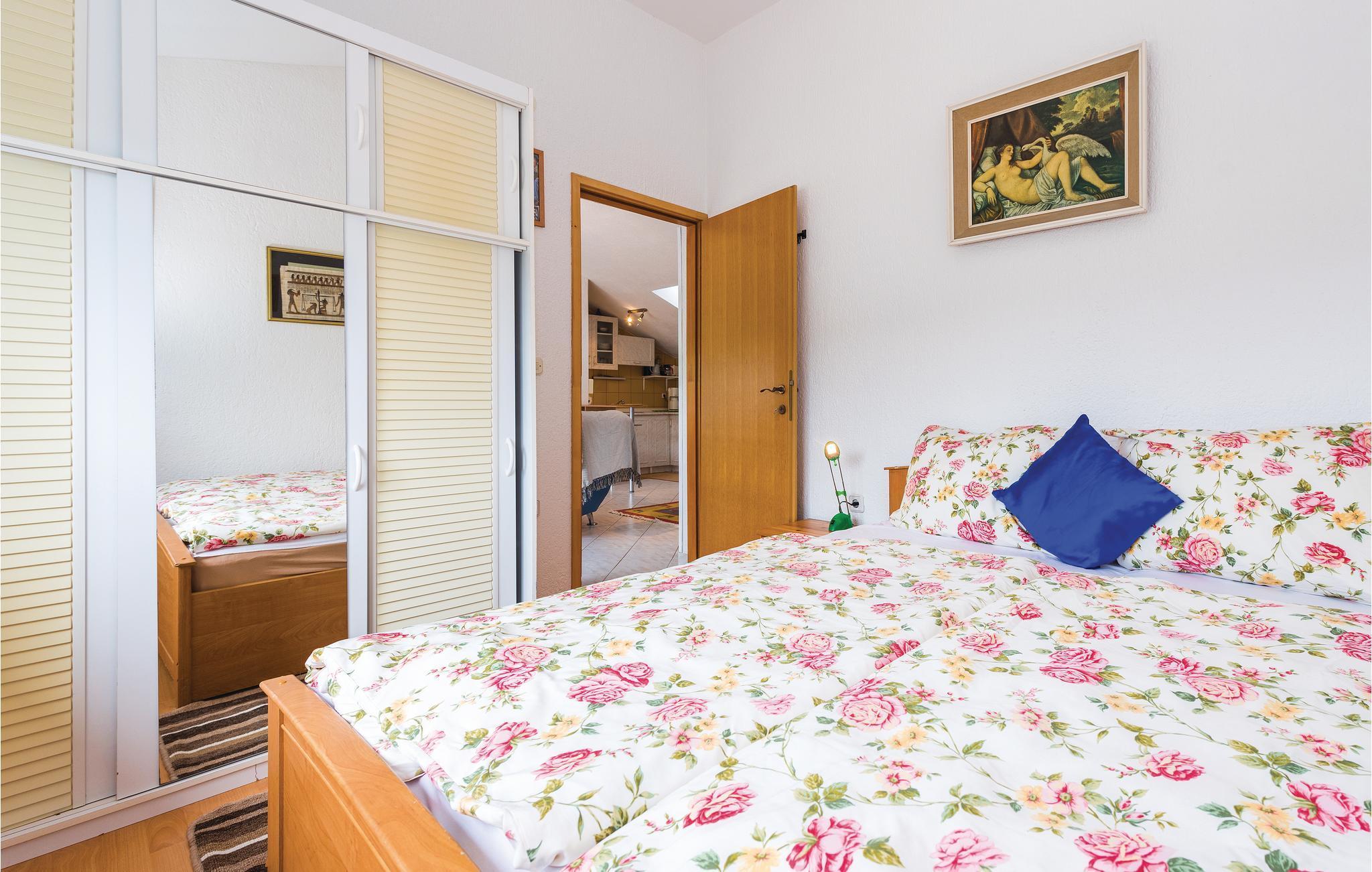 Denne enkle og lyst indrettede ferielejlighed i tagetagen ligger kun få meget fra havet i byen Stubalj. Fra jeres terrasse kan I nyde udsigten over havet, bugten og bådene. I husets stueplan ligger en café. Jeres lille by ligger mellem regionens hovedstad Sibenik og den mukke by Skradin. I Sibenik kan I opleve katedralen og fire fæstninger mens