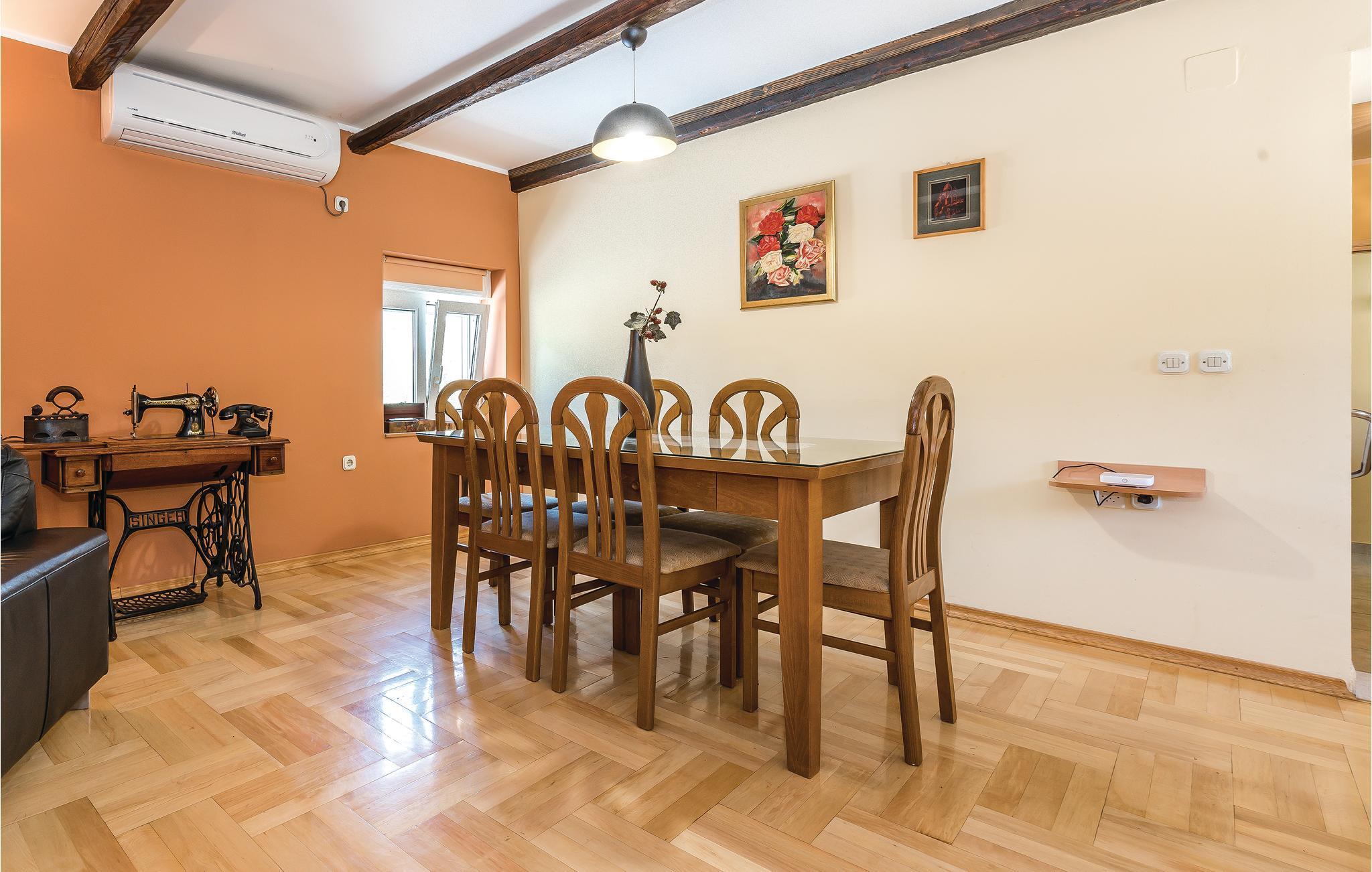 Dette venlige og praktisk indrettede feriehus ligger i den lille by Bilice, ikke langt fra byen Sibenik. Nyd stilheden i denne feriebolig på to etager, der er forbundet med indertrapper. Besøg de mange kulturelle og historiske seværdigheder i Sibenik, stranden Banj, promenaden og den bevarede bymur. Gourmeter kan glæde sig til de mangfoldige restauranter med traditionelt dalmatisk køkken. Tag på udflugter til nationalparkerne Krka og Kornati-øerne.