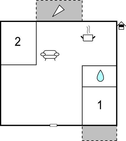 Opholdsstue/køkken - 1 Soveplads. (Sofa, madras eller lignende).