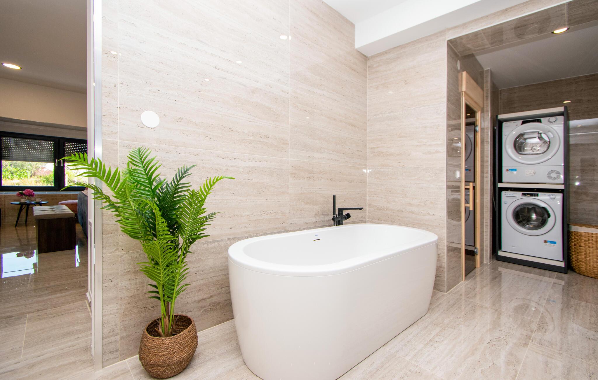 Jeres private sauna i badeværelset sørger for afslappende øjeblikke, mens fællespoolen og spabadet i haven sørger for ekstra forfriskning og afslapning. Den fælles udendørsterrasse med grillplads indbyder til hyggelige aftener i det fri.