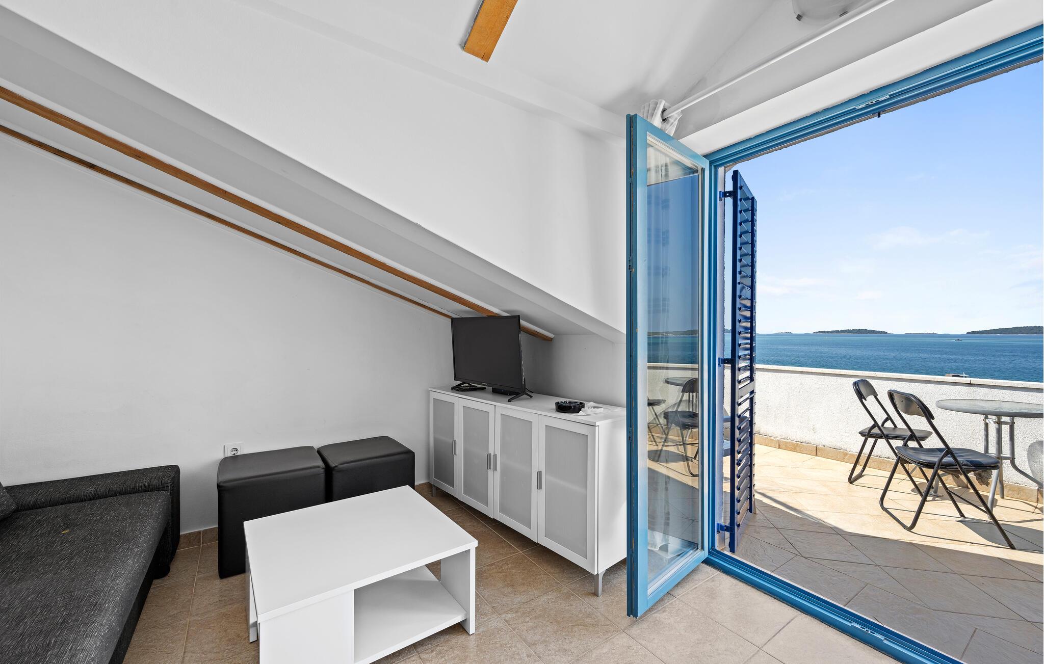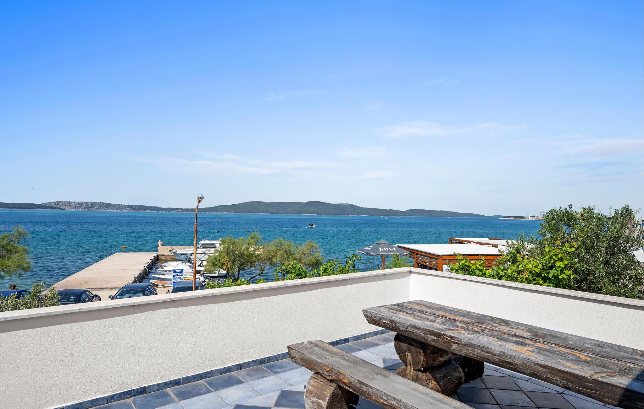 Denne lyse og praktiske ferielejlighed byder jer velkommen nogle få skridt fra stranden. begynd dagene med morgenmad, forbered en strandpicnic, og planlæg jeres aktiviteter i ro og mag ved spisebordet. Efter en lang dag under den kroatiske sol kan I slappe af på sofaen, streame en film eller fordybe jer i ferienlæsning.