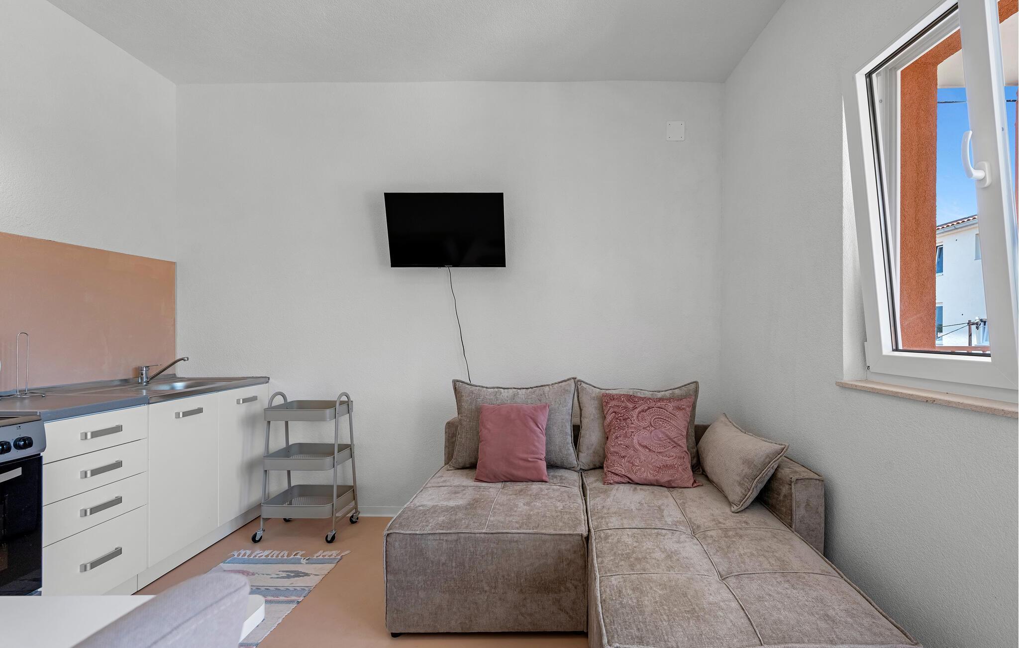 Denne lyse og smagfulde ferielejlighed ligger så tæt på stranden, at I næsten vil tænke på det turkise havvand uden for jeres hoveddør som jeres badekar. Fremtryll middelhavsretter i det åbne køkken, planlæg jeres aktiviteter i den indbydende opholdsstue, og stream en god serie på den komfortable sofa efter en solskinsdag.