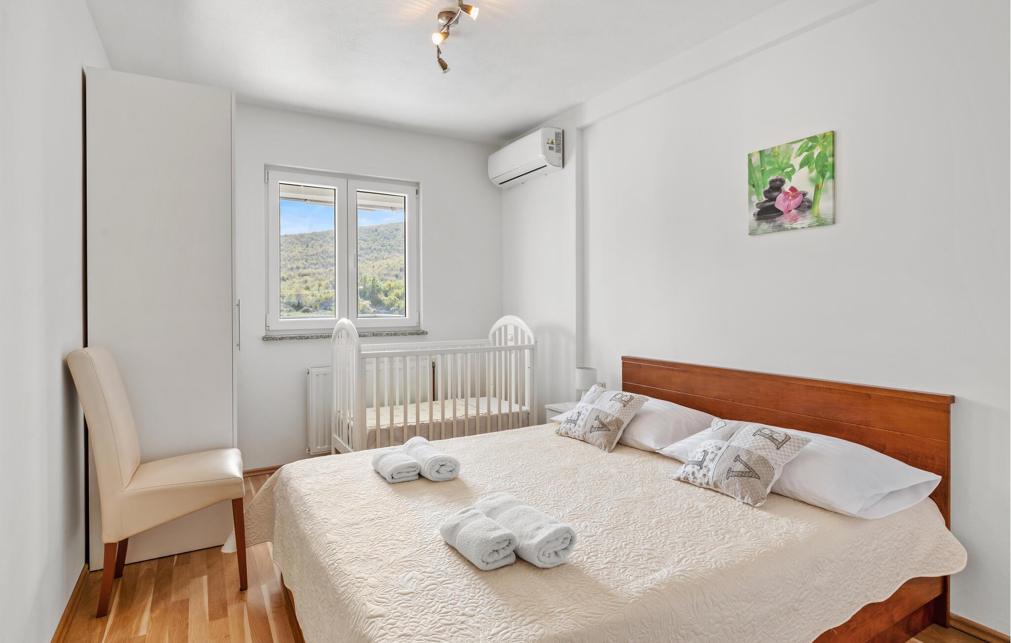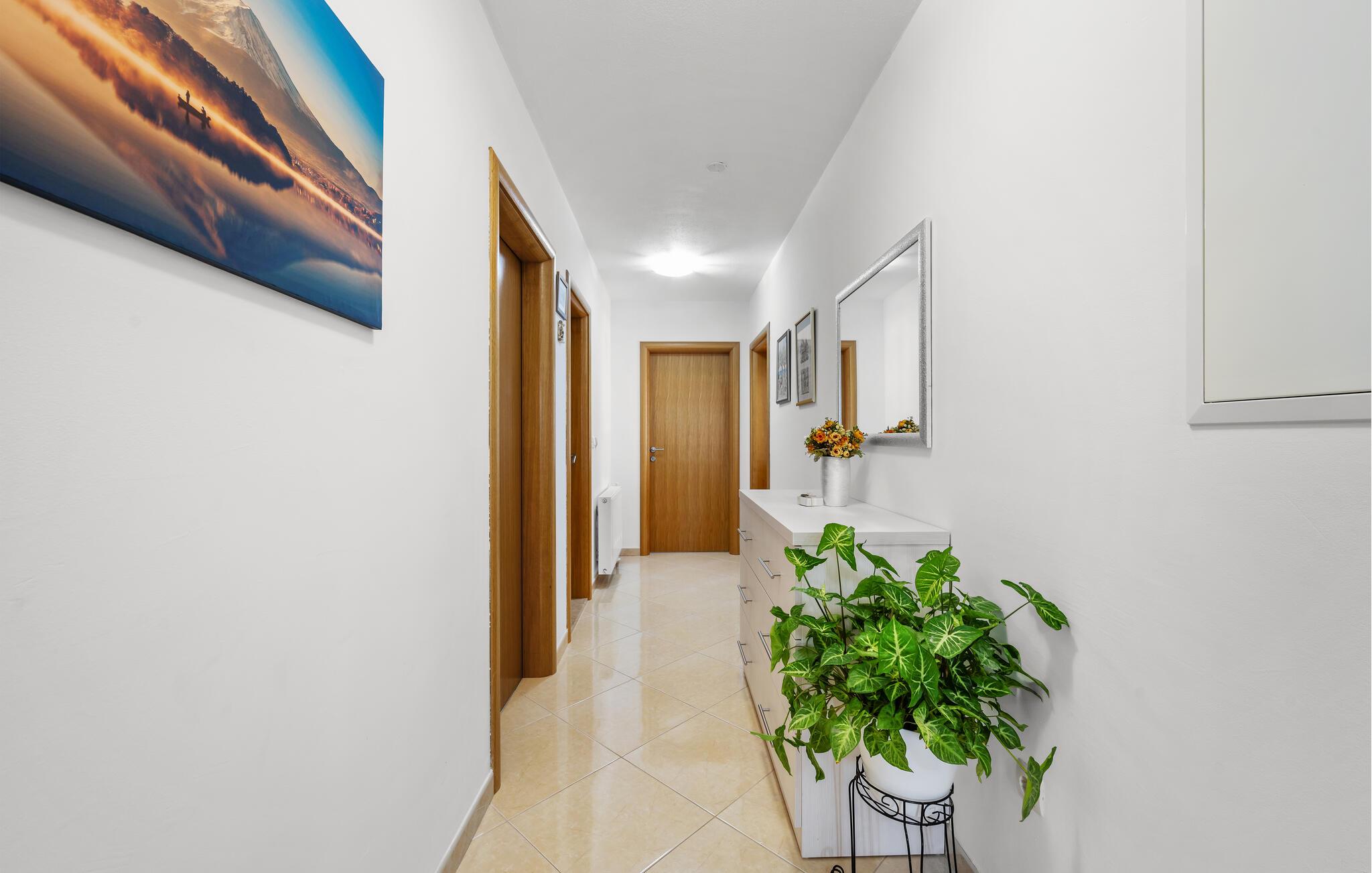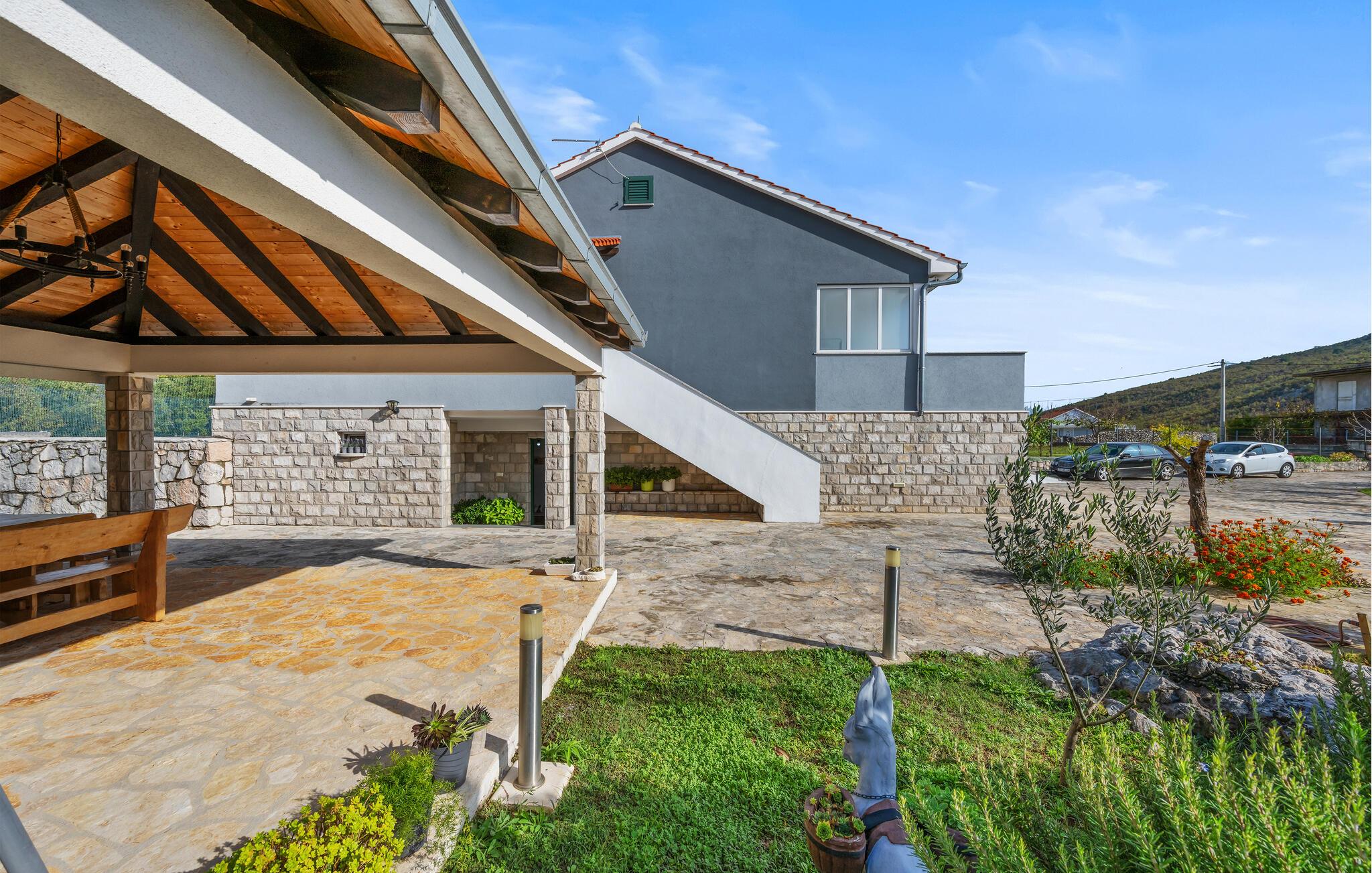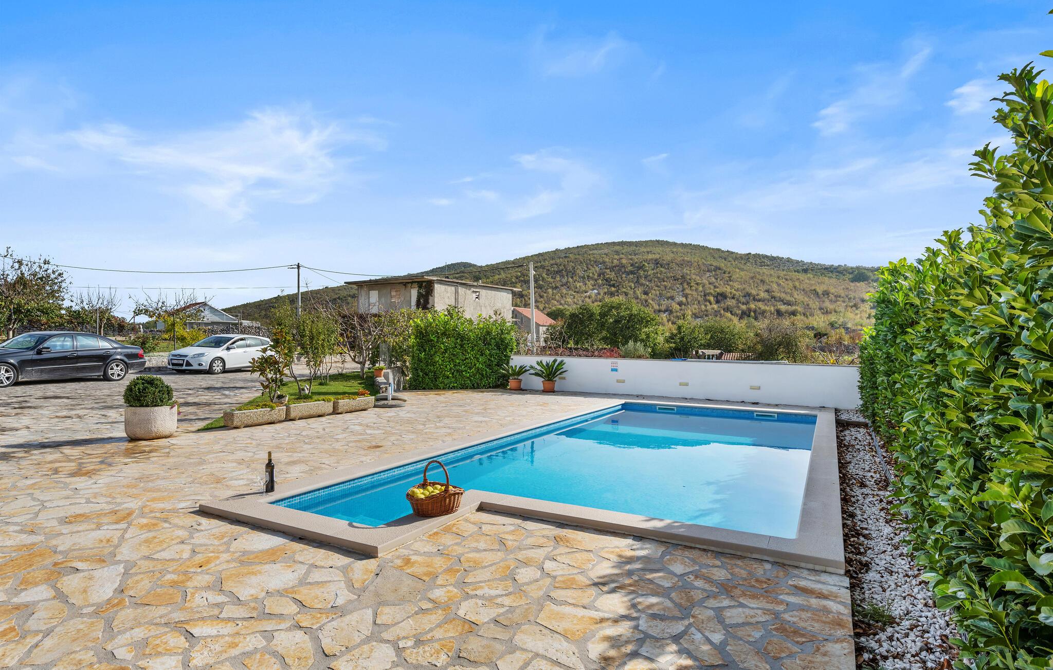 Den rolige, landlige beliggenhed er ideel til afslappende gåture og ren afslapning. Krka Nationalpark ligger i nærheden og byder på spektakulære vandfald og naturskønne vandrestier. En udflugt til den historiske by Sibenik, med dens UNESCO-beskyttede katedral og charmerende gamle bydel, er et must. Adriaterhavets kyst med smukke strande og bugter ligger kun en kort køretur væk og giver ferien et ekstra strejf af variation og eventyr.