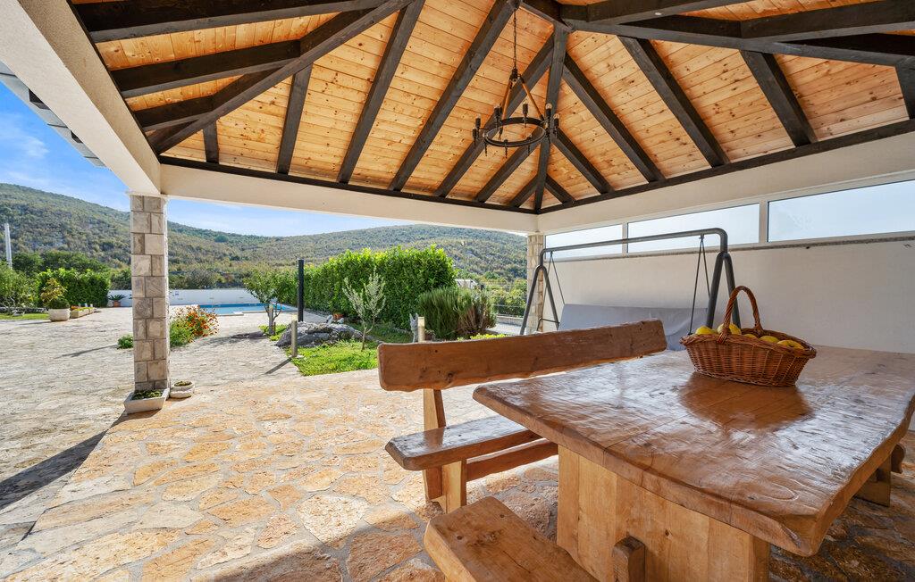 Dette indbydende feriehus i Cvrljevo har alt, hvad I og jeres familie behøver for en uforglemmelig ferie. Den åbne opholdsstue med køkken, spiseplads og hyggeligt sofaområde skaber rammerne for fælles stunder. I aktivitetsrummet kan I udfordre hinanden i billard eller bare nyde kvalitetstid sammen. Udendørs finder I flere terrasser, en privat swimmingpool og et væld af fritidsmuligheder som fodbold-, tennis- og basketballbaner samt en legeplads til de mindste.