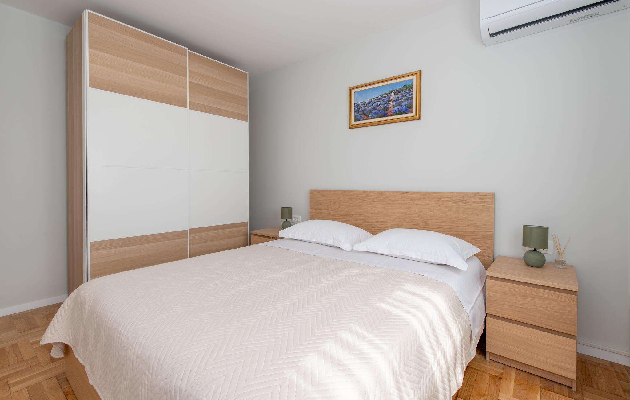 Oplev en uforglemmelig ferie i dette maleriske feriehus med pool. Føl jer helt hjemme i dette stilfuldt møblerede hus. Gulv-til-loft-vinduer lukker masser af varmt naturligt lys ind og tilbyder udsigt over poolen og det smukke landskab. Træbjælkerne i loftet, en stor sofagruppe og det moderne køkken skaber yderligere en afslappende atmosfære. Slap af her, slap af med en god film, eller fordyb jer i jeres ferielæsning. Start dagen med en forfriskende dukkert i poolen og afslappende svømmeture. Nyd en kølig drink, mens I solbader – altid med udsigt over det frodige, bakkede landskab. Om aftenen kan I grille med familie eller venner og skåle for jeres vidunderlige ferieoplevelser. Udforsk det omkringliggende bakkede landskab på vandreture eller cykelture gennem olivenlunde og vinmarker. Oplev den nærliggende Adriaterhavskyst med dens idylliske bugter og klare, turkisblå vand. Nyd roen i landlige Cvrljevo og/eller besøg den charmerende by Trogir med dens snoede gader, historiske bygninger og livlige markeder.