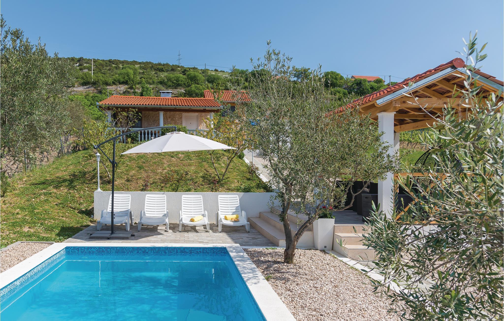 Dette charmerende og komfortable hus med indhegnet grøn have og forfriskende pool ligger i den lille landsby Danilo i nærheden af den henrivende by Šibenik. På de varme sommerdage kommer pool og have til at være det naturlige midtpunkt for ferien. Ud over at bade kan I tilberede jeres måltider over grillen på verandaen. Det skønne hus er også ideelt til en familie som ankommer med husdyr og alle dem der bare er ude på at holde en afslappet ferie. For dem der holder af naturoplevelser og aktiviteter findes nationalparken Krka lige i nærheden. Her kan I gå på opdagelse i et unikt landskab krydret med middelalderlige borge og ikke minds vandfald. Gå ikke glip af et besøg i Šibenik med de mange historiske og kulturelle seværdigheder.