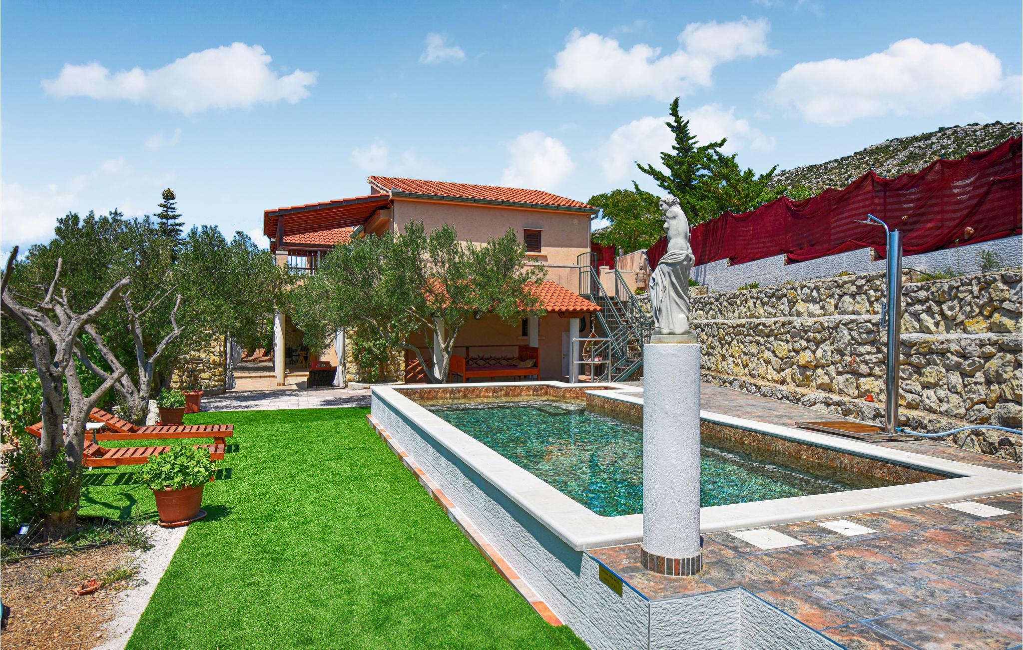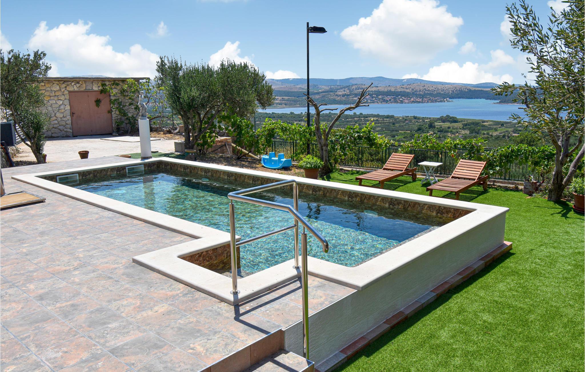 Huset blev renoveret i 2021 og fra alle terrasser har I en vidunderlig panoramaudsigt ud over havet og de imponerende omgivelser. Feriehuset består af tre boliger, som er forbundet af en indendørs trappe, og stedet er derfor helt perfekt egnet til et ophold for to familier eller en gruppe venner, der gerne vil holde ferie sammen. I huset finder I et lækkert fitnessrum til den aktive feriegæst, og derudover har I også både dart og et bordtennisbord til rådighed. Slap desuden af ved det skønne spabad, og nyd samtidig den herlige udsigt. Ikke langt fra huset ligger der en cykelrute på 8 km. Kulturbyen Sibenik ligger også kun få kilometer fra huset og lokker med sit spændende udvalg af arrangementer og underholdning. Besøg også nationalparkerne Krka og Kornati!