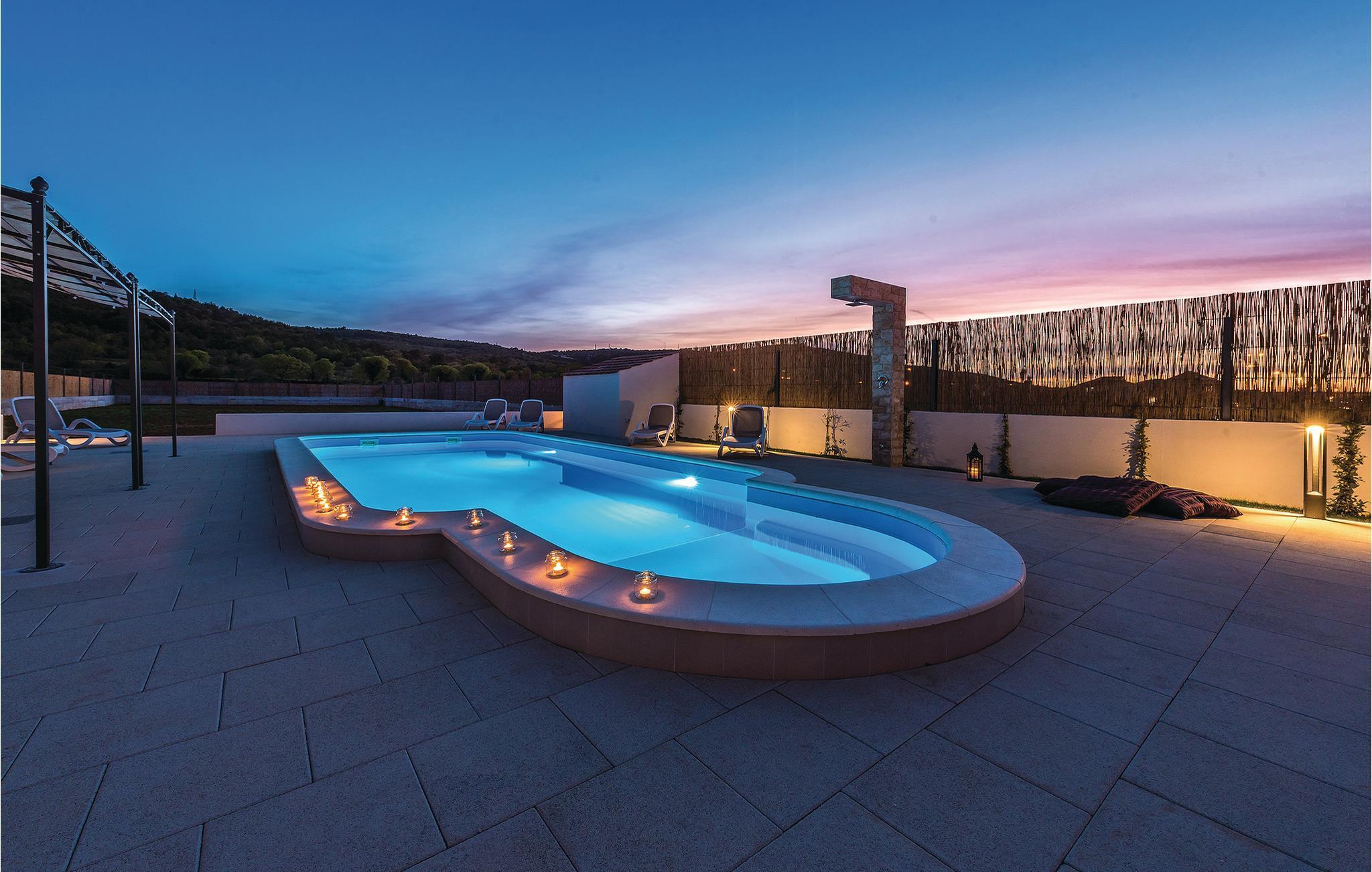 Dette luksuriøse feriehus med pool ligger i Dubrava, i nærheden af Šibenik. Omringet af natur og placeret på en stor grund, er dette hus perfekt til en afslappet ferie med familie og venner. Huset har to etager med indendørstrapper. På terrassen med poolen står der også en grill. Har I lyst til underholdning, er der et stort tilbud af forskellige arrangementer i byen Šibenik. Her kan I også besøge katedralen Sv. Jakov (UNESCO verdenskulturarv), såvel som den renoverede fæstning med spektakulær udsigt. Ca. 4 km fra huset ligger Solaris Beach-Resort. Her kan I slappe af ved fantastiske strande eller nyd et stort tilbud af sport- og fritidsaktiviteter på et stort areal. Gå ikke glip af heldagsudflugter til nationalparken Krka og Kornati.