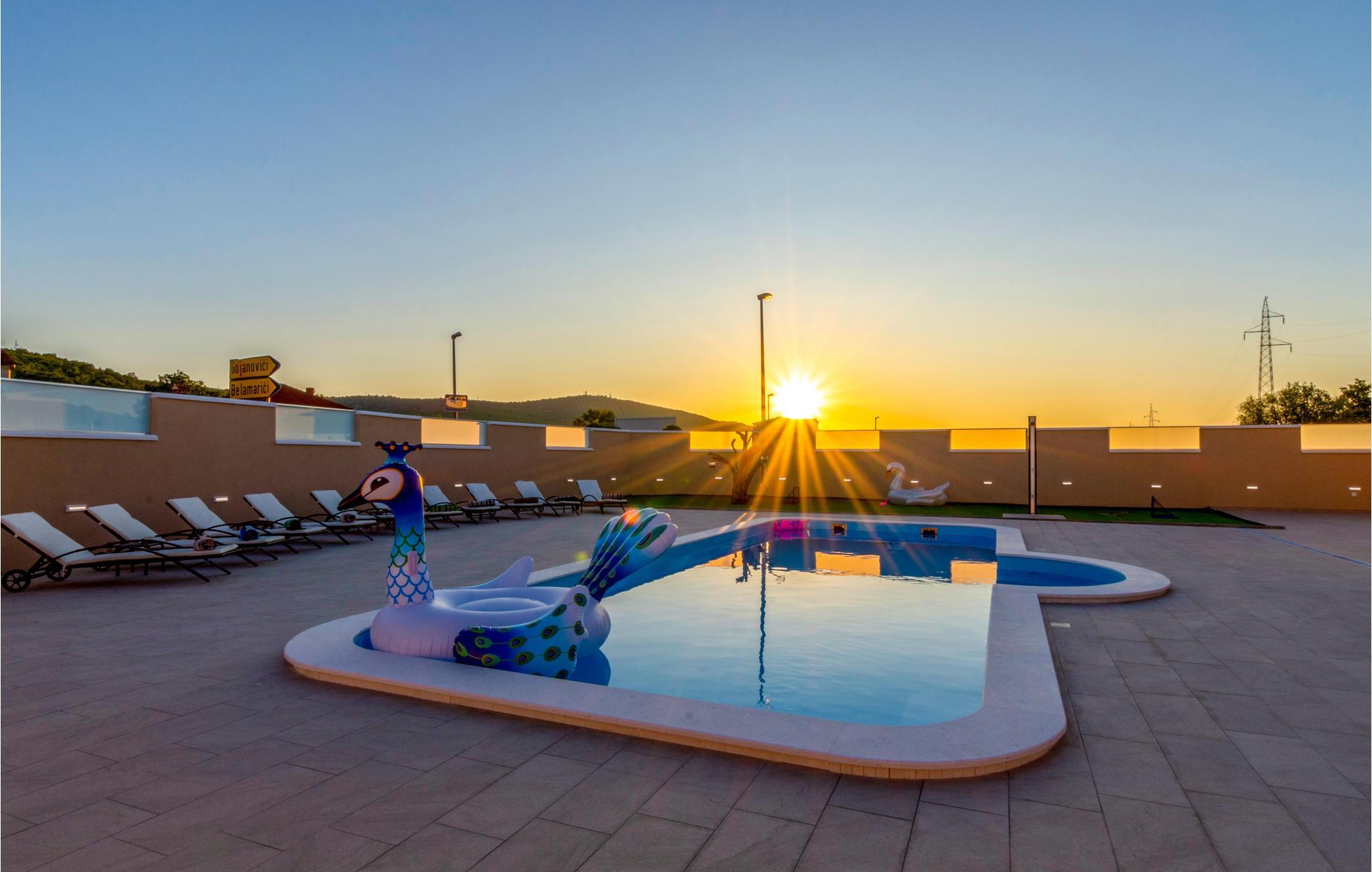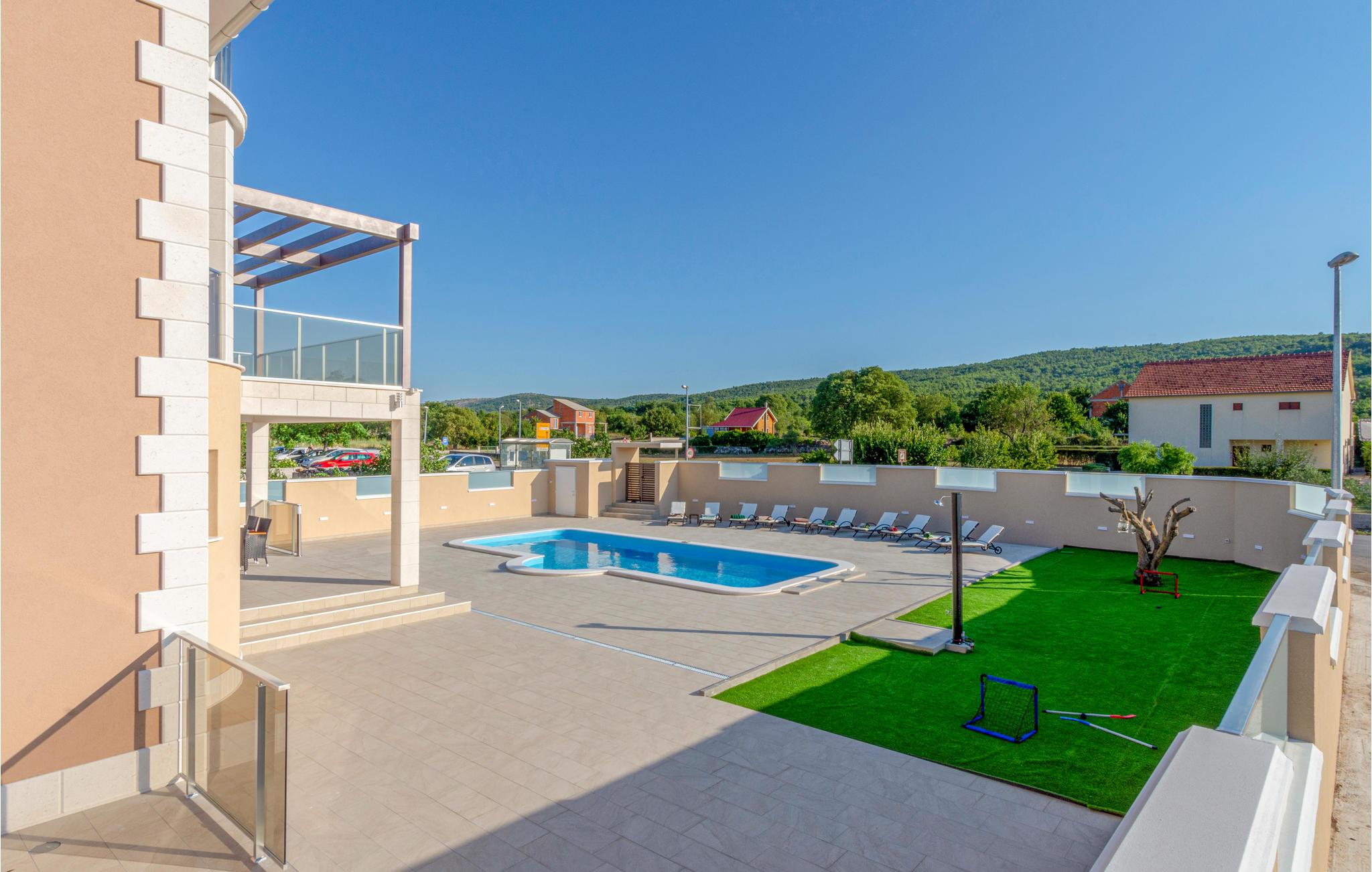 Det ligger i Dubrava, et sted i baglandet Šibenik, og vil give jer en masse komfort og fornøjelse. Huset strækker sig over 4 etager med i alt 5 soverværelser og 6 badeværelser. Der er masser af underholdning for alle aldre, både indendørs og udendørs, og I kan forfriske jer i den private pool på varme sommerdage og nyde behagelige grillaftener på denne smukke og rummelige ejendom.