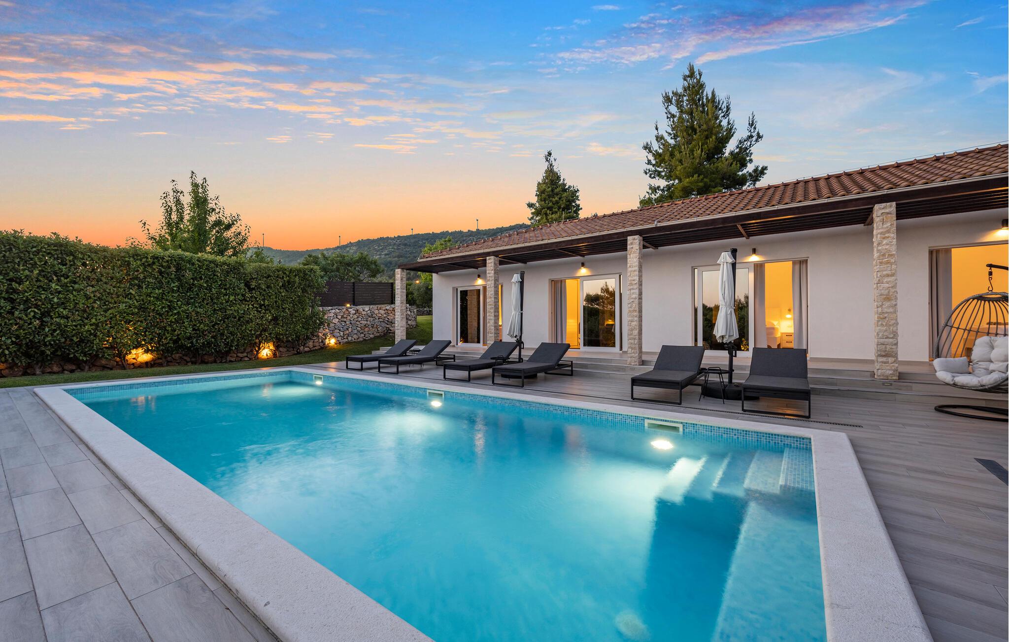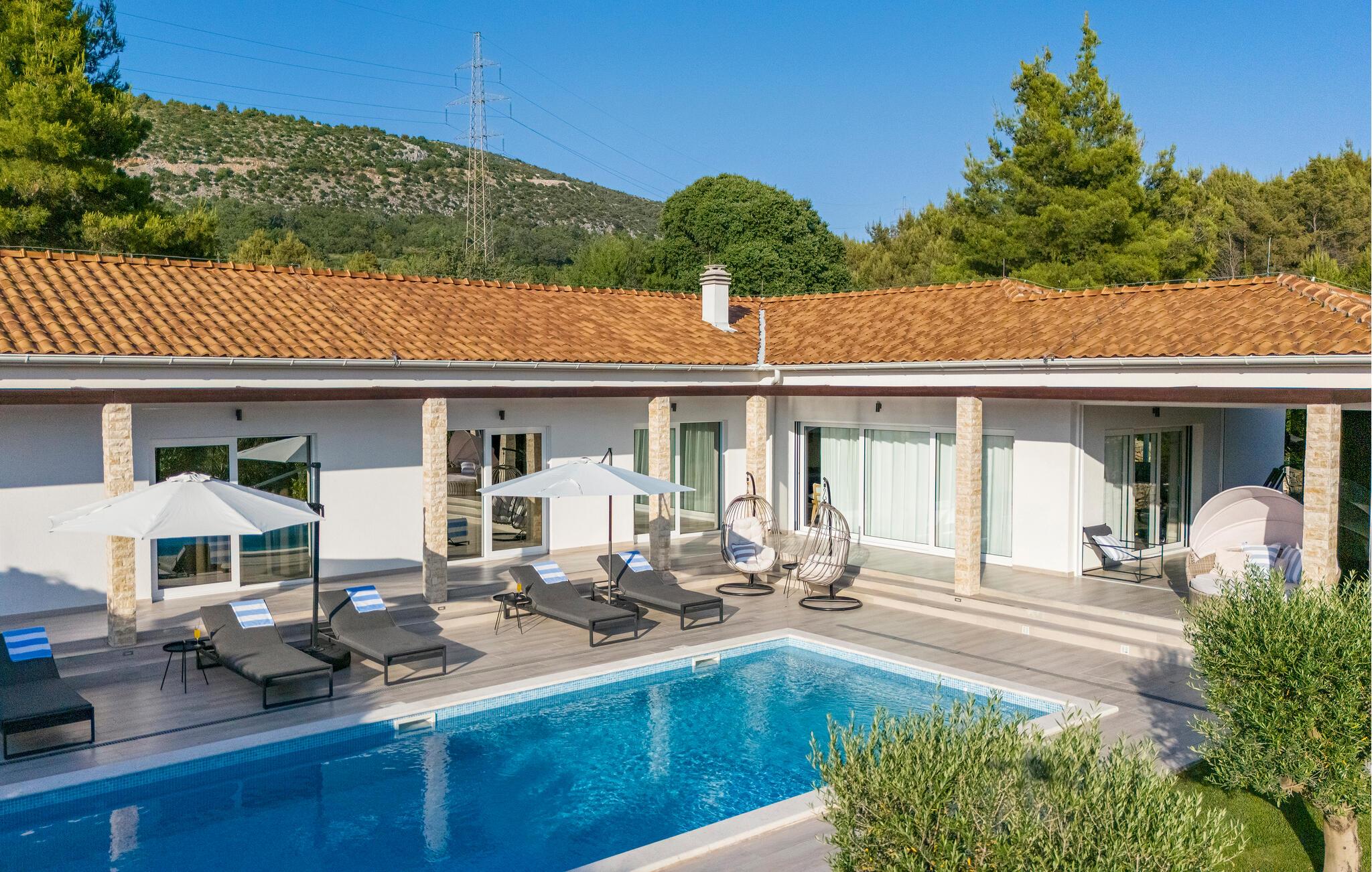 Dette luksuriøse feriehus med pool ligger i Dubrava, ikke langt fra Sibenik. Huset ligger placeret på en stor grund i naturskønne omgivelser og er det perfekte valg til en familieferie med venner.