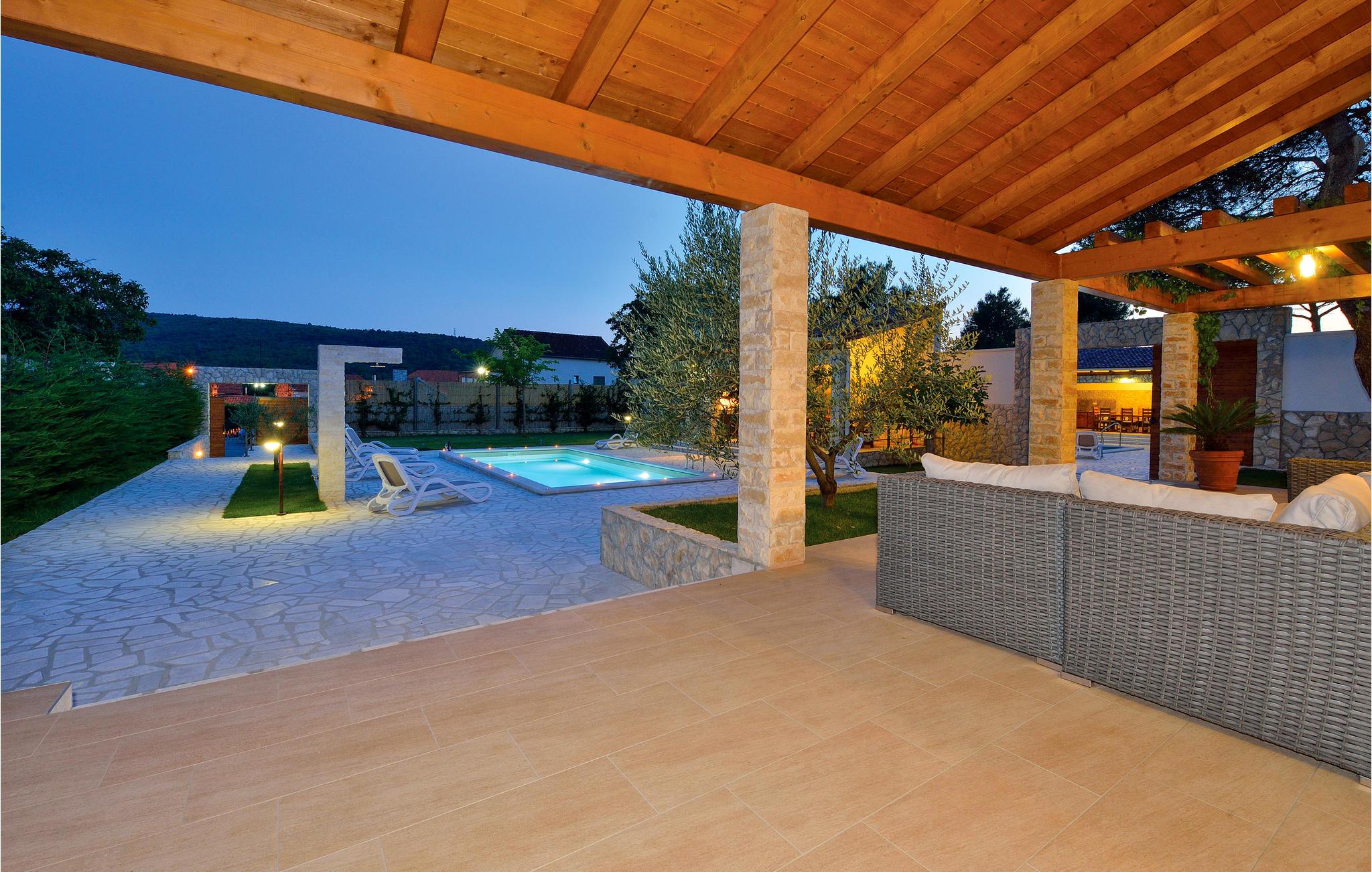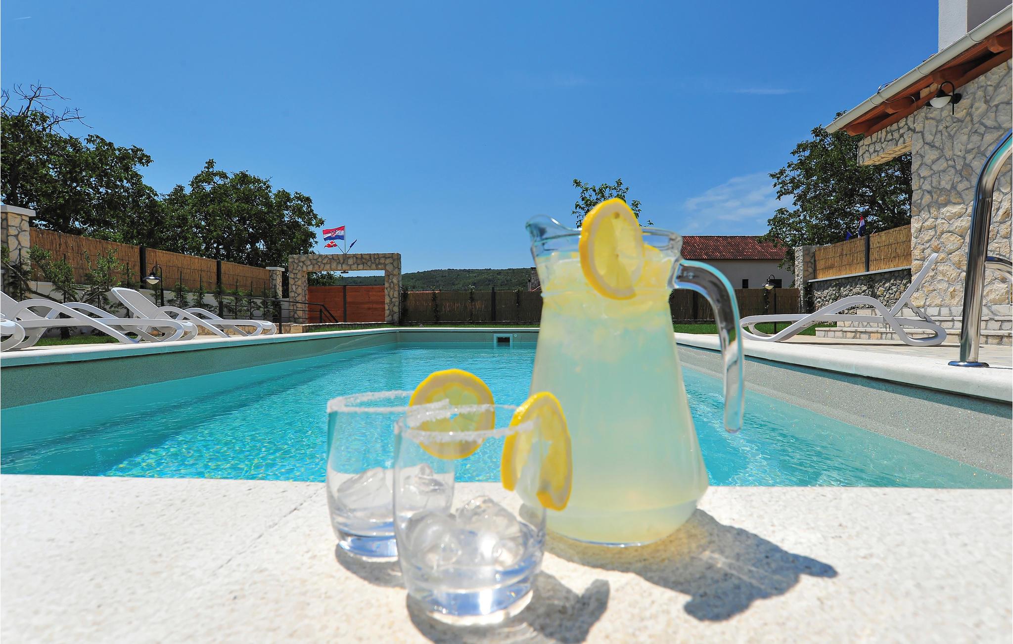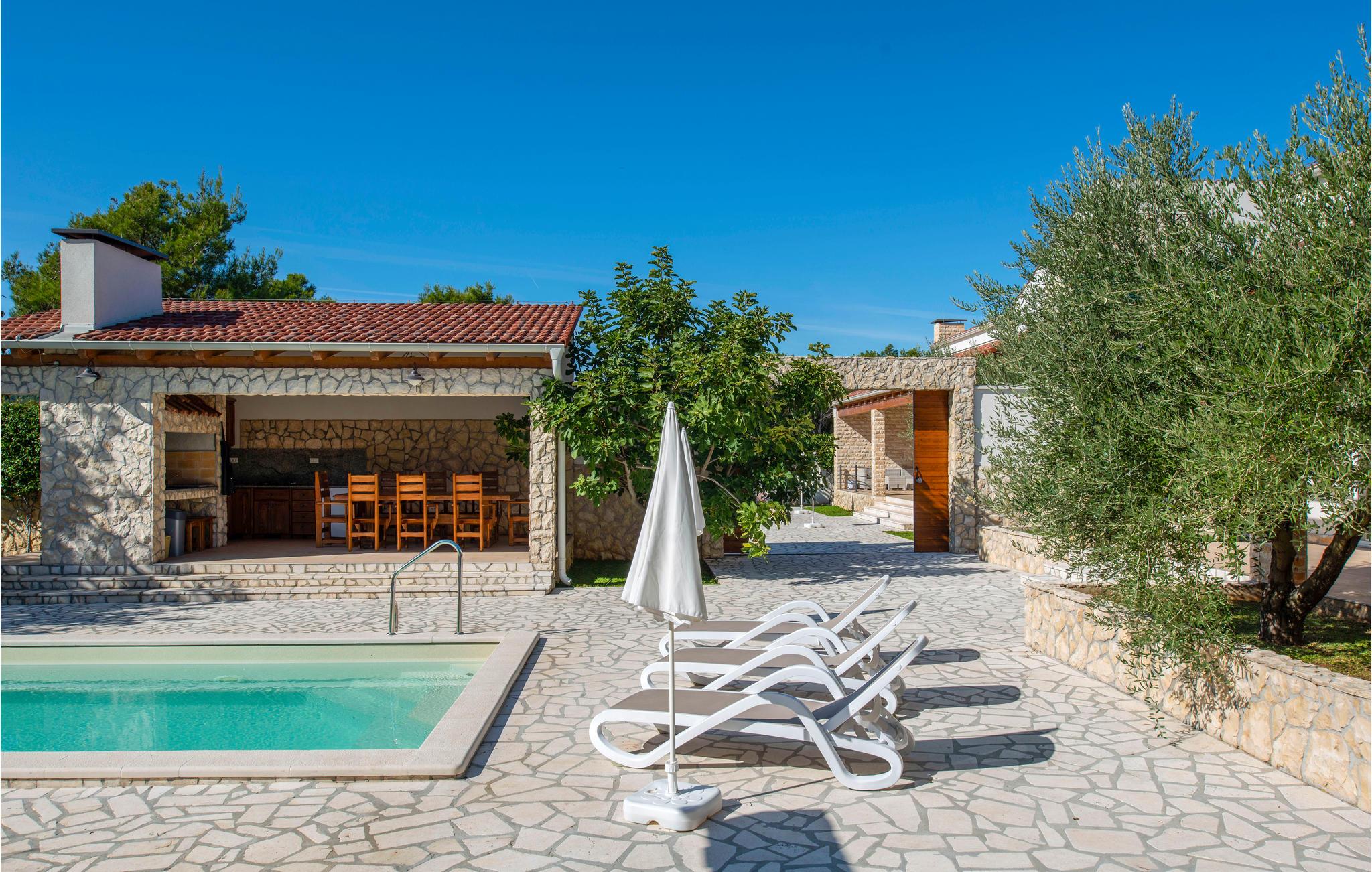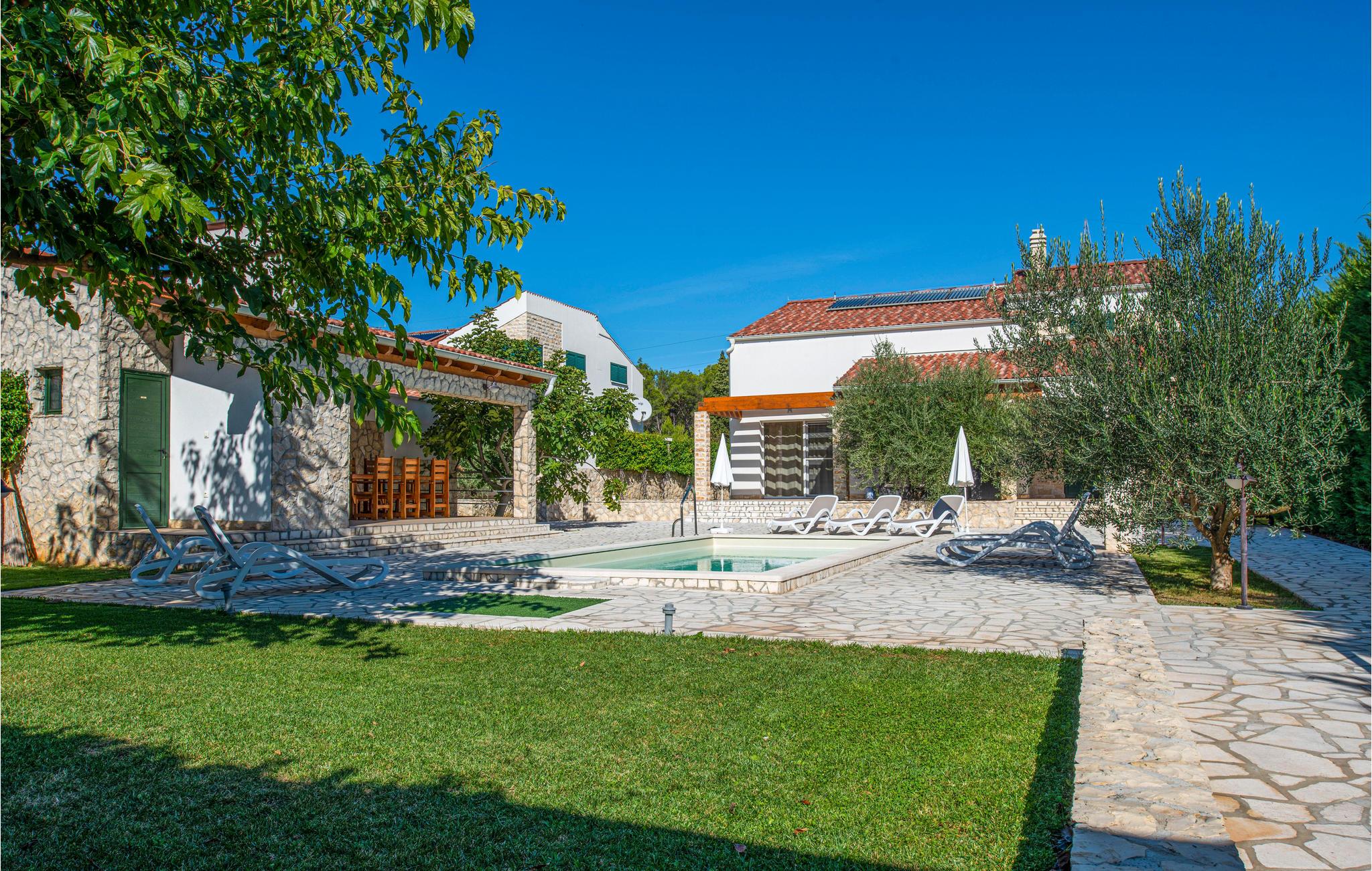 Dejligt feriehus i nærheden af Sibenik og nationalparken Krka. I stueetagen er der et soveværelse med bad, køkken med dagligstue og et wc. På første sal ligger to soveværelser til med badeværelser. Slap af på det store udeområde med pool og ved det lille overdækkede hus, hvor der er en grill og et ekstra wc. En lille plet på jorden, der er som skabt til at slappe af på. Ca. 10 minutter i bil skiller jer fra talrige strande. Oplev det omfangsrige underholdningsprogram, som feriebyen Vodice giver jer i sommermånederne. Kør også til byen Sibenik, og tag på bådture til de omkringliggende øer. Lige ved siden af huset ligger ferieboligen CDV680, som I deler en lille legeplads med. Overdækket parkering til rådighed.