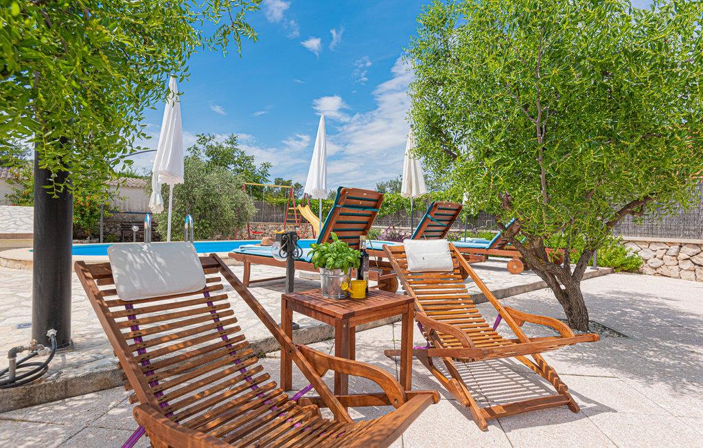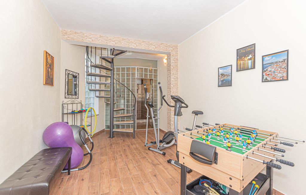 Den hyggelige bolig i Dubrava, nær Šibenik, byder med sin varme atmosfære og praktiske indretning på de perfekte rammer for en afslappende familieferie. Opholdsområdet med et åbent køkken inviterer til hyggelige stunder sammen, mens soveværelserne på øverste etage sørger for ro og komfort. Et lille fitnessrum giver mulighed for aktiv afveksling, og den forfriskende udendørspool er perfekt til varme sommerdage. I havepavillonen kan I tilberede regionale specialiteter på grillen og nyde aftenen i afslappet stemning.