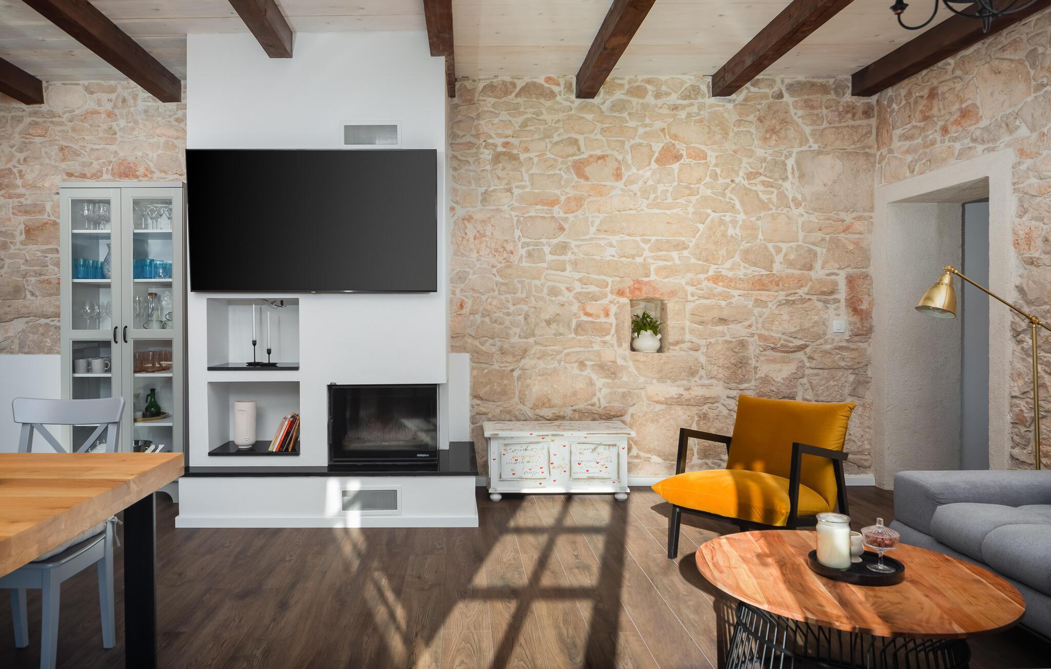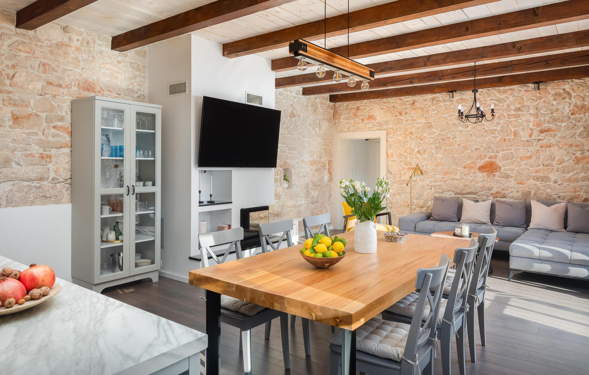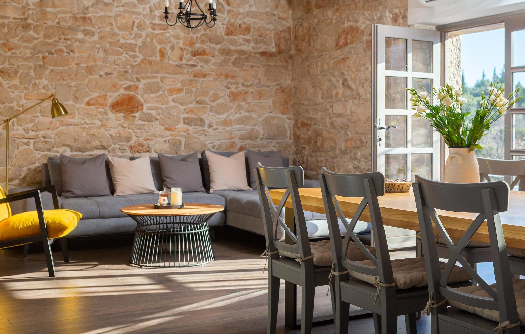 Glæd jer til jeres ferie i dette store og nænsomt designede hus. Klassiske stenvægge og moderne indretning og udstyr skaber en skøn symbiose, der hurtigt gør feriehuset til jeres andet hjem. Det indbydende design inkluderer barrierefri funktioner og kørestolsadgang for at gøre jeres ophold så behageligt som muligt. Nyd en række spil som billard, bordtennis og dart i en hyggelig, familievenlig atmosfære.