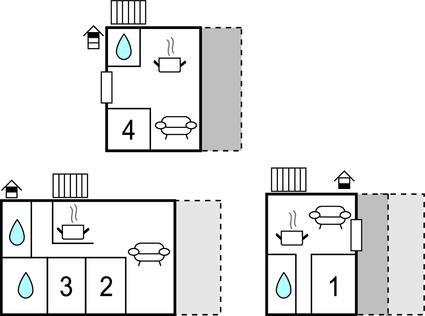 Badeværelse 3m2 (nr. 3) - WC. Varmt og koldt vand. Bruser