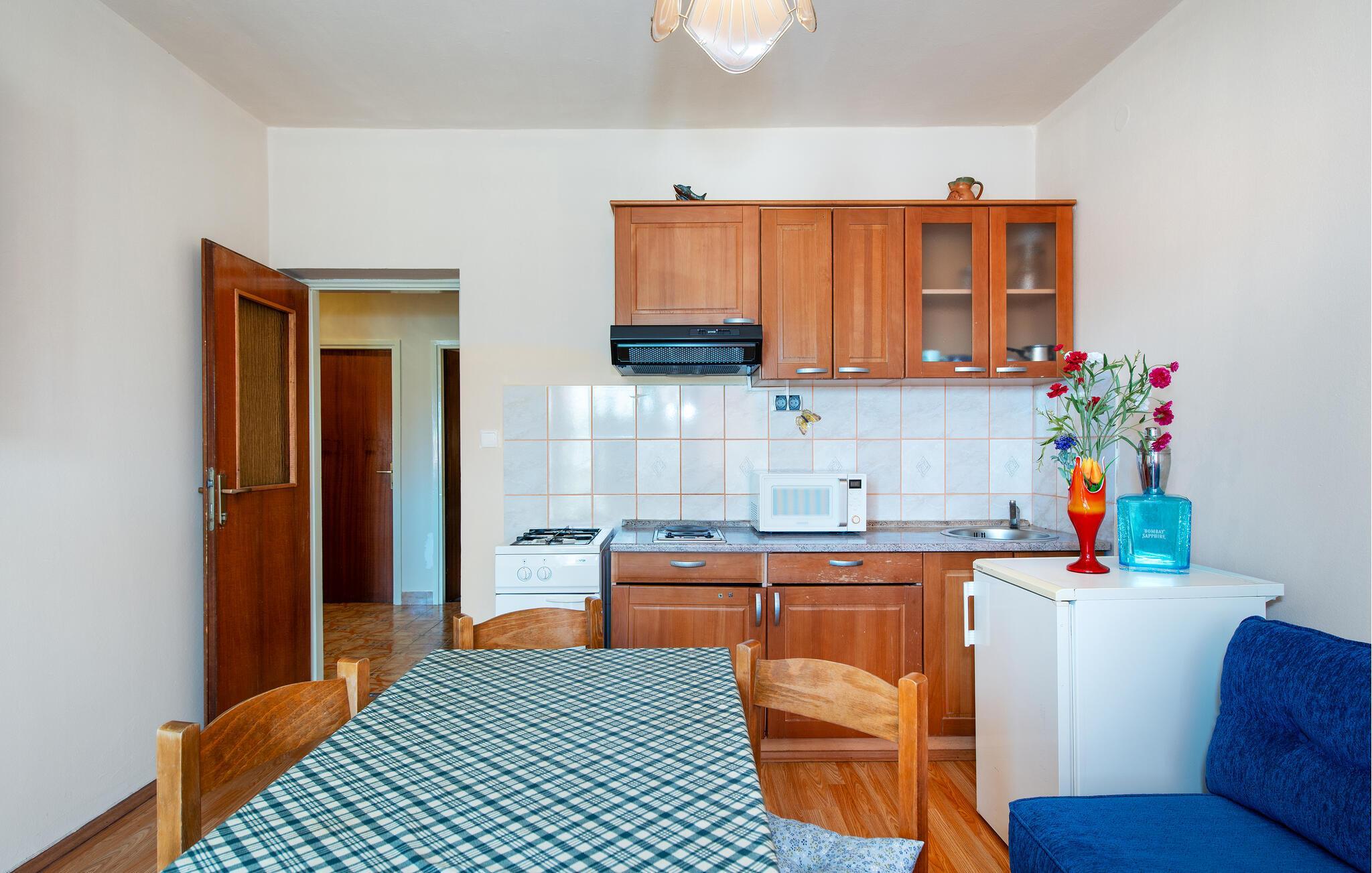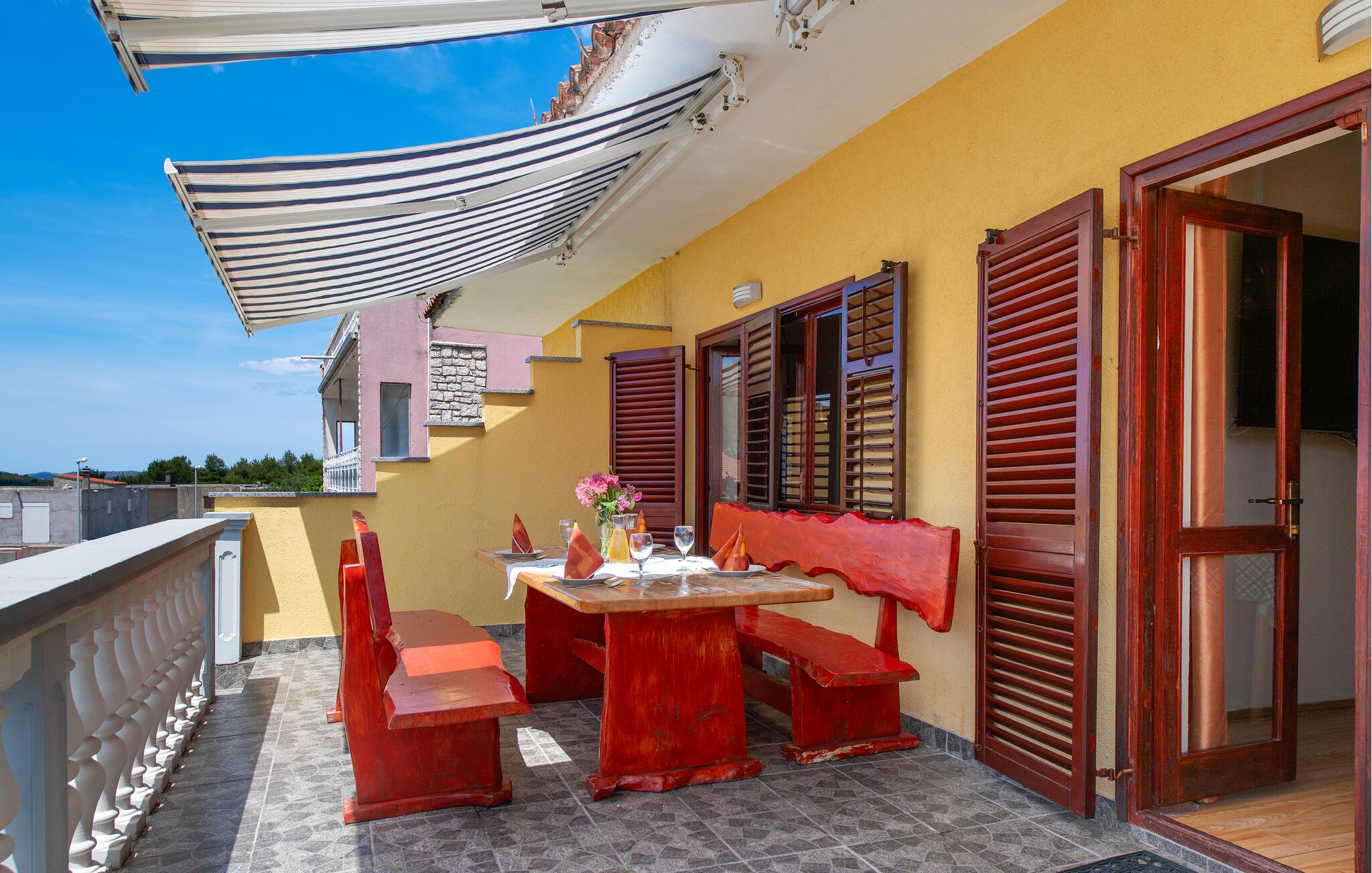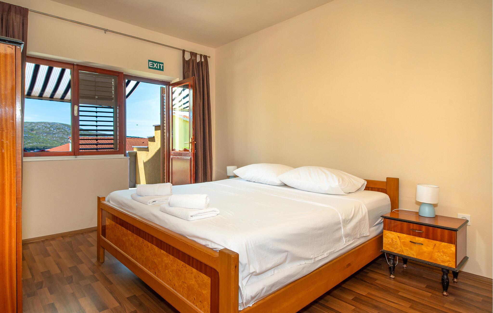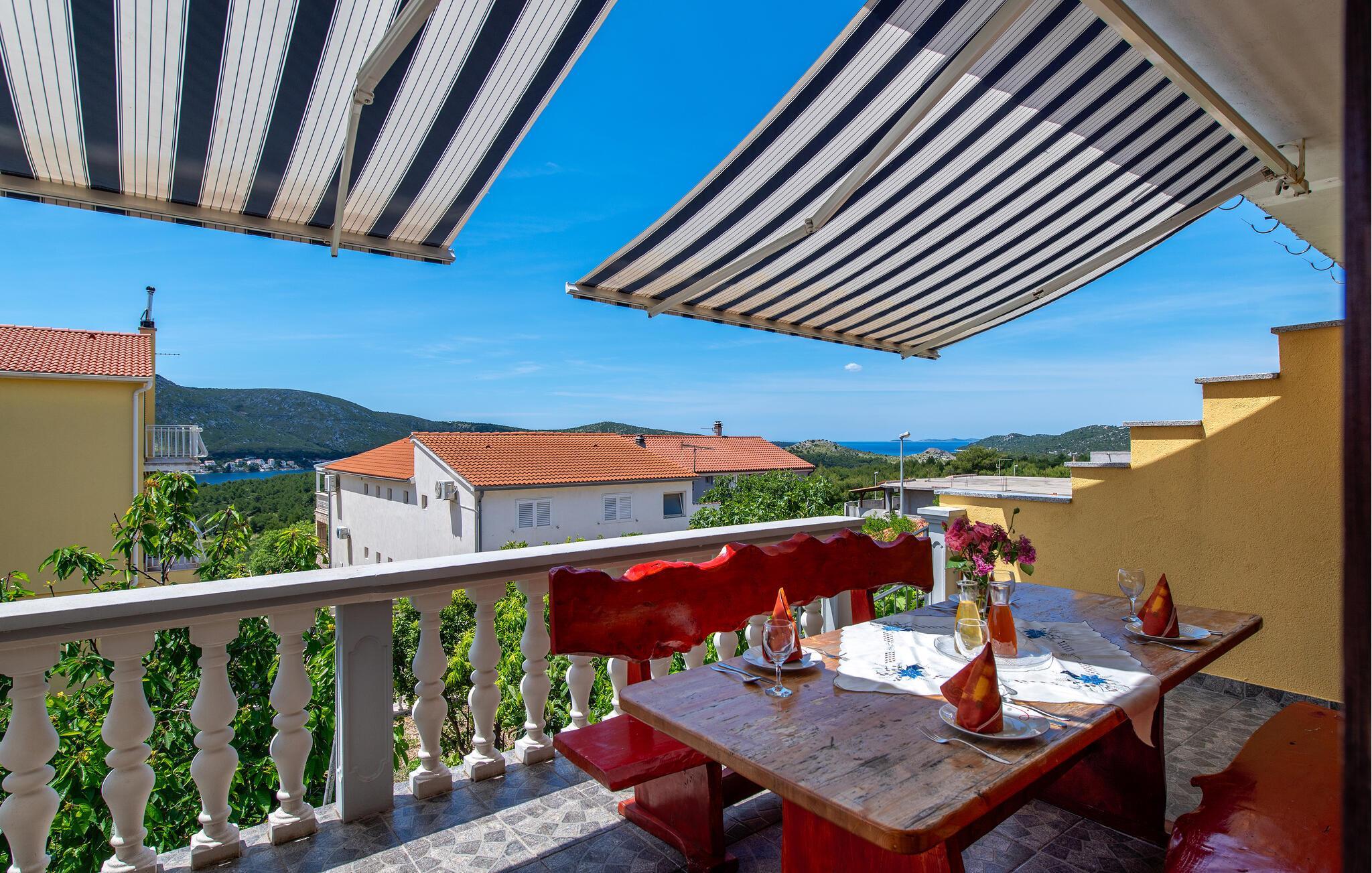 Denne enkelt og praktisk indrettede ferielejlighed ligger i byen Grebaštica, som er en dejlig turisby med en beskyttet bugt, der ligger lige mellem Šibenik og Primošten. Det er den eneste ferielejlighed i denne private ejendom. Fra den komfortable terrasse er der en skøn udsigt over havet, ligesom I der vil dyrke sport og oplev naturen, kan glæde sig de mange cykel- og vandrestier der snor sig gennem landskaberne. Den lille ferieby er det helt rigtige til jer der vil holde en ferie i rolige omgivelser, ikke langt fra interessante feriemål som de nærliggende nationalparker Krka og Kornati.