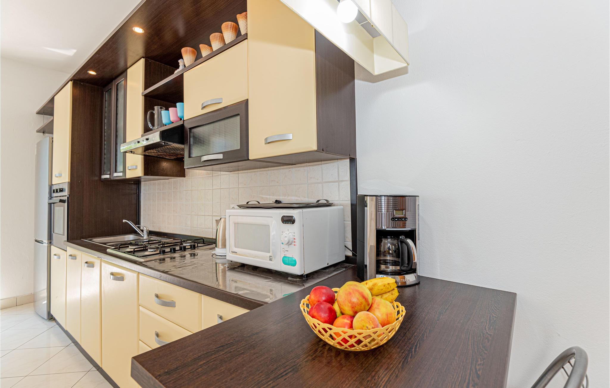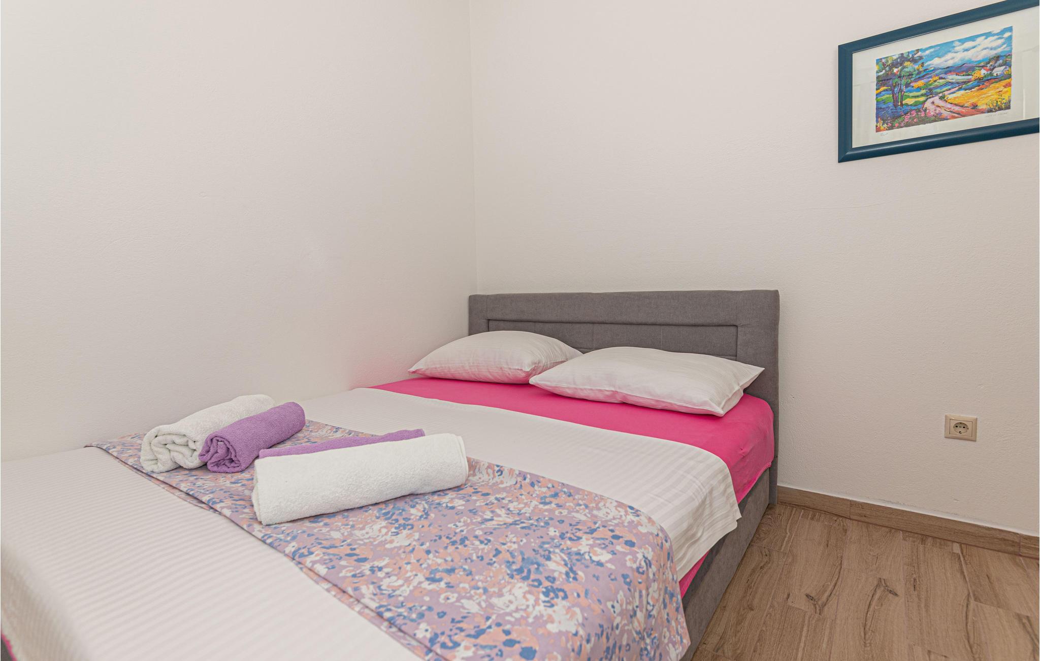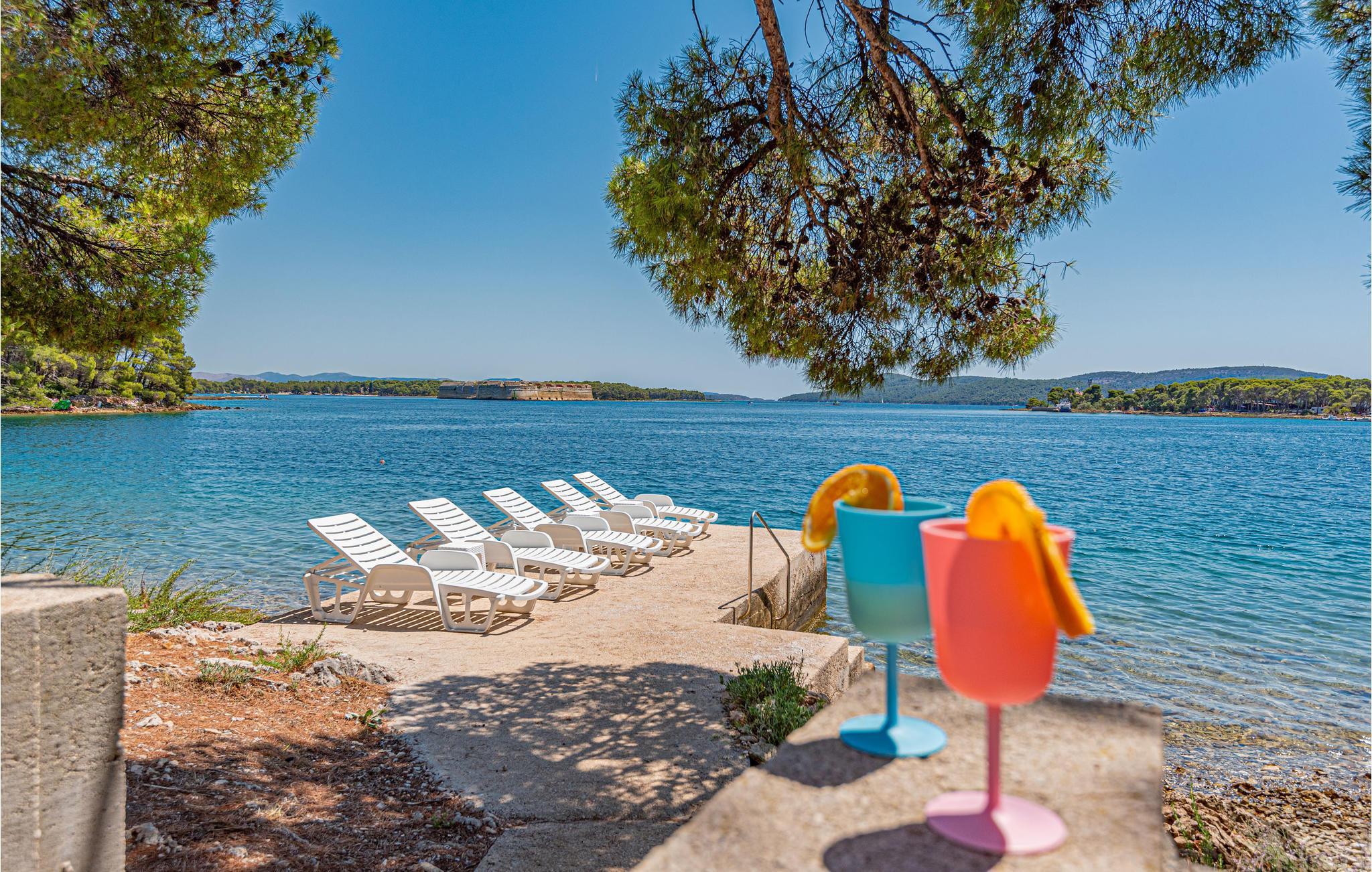 Dette skønne og praktisk indrettede feriehus rummer tre lejligheder. Den større lejlighed ligger i stueplan og to mindre lejligheder ligger på første sal med udgang til den åbne terrasse. Der er indre trappe i huset. Nærheden til havet og den rolige uberørte natur er oplagt til en afslappet ferie. Der er hegn mod de to nærliggende huse, i det ene bor husets ejer. Nyd den skønne udsigt over det skønne klare hav fra begge terrasser. Kan I løsrive jer fra jeres ferieparadis kan vi anbefale en tur til den skønne by Šibenik.