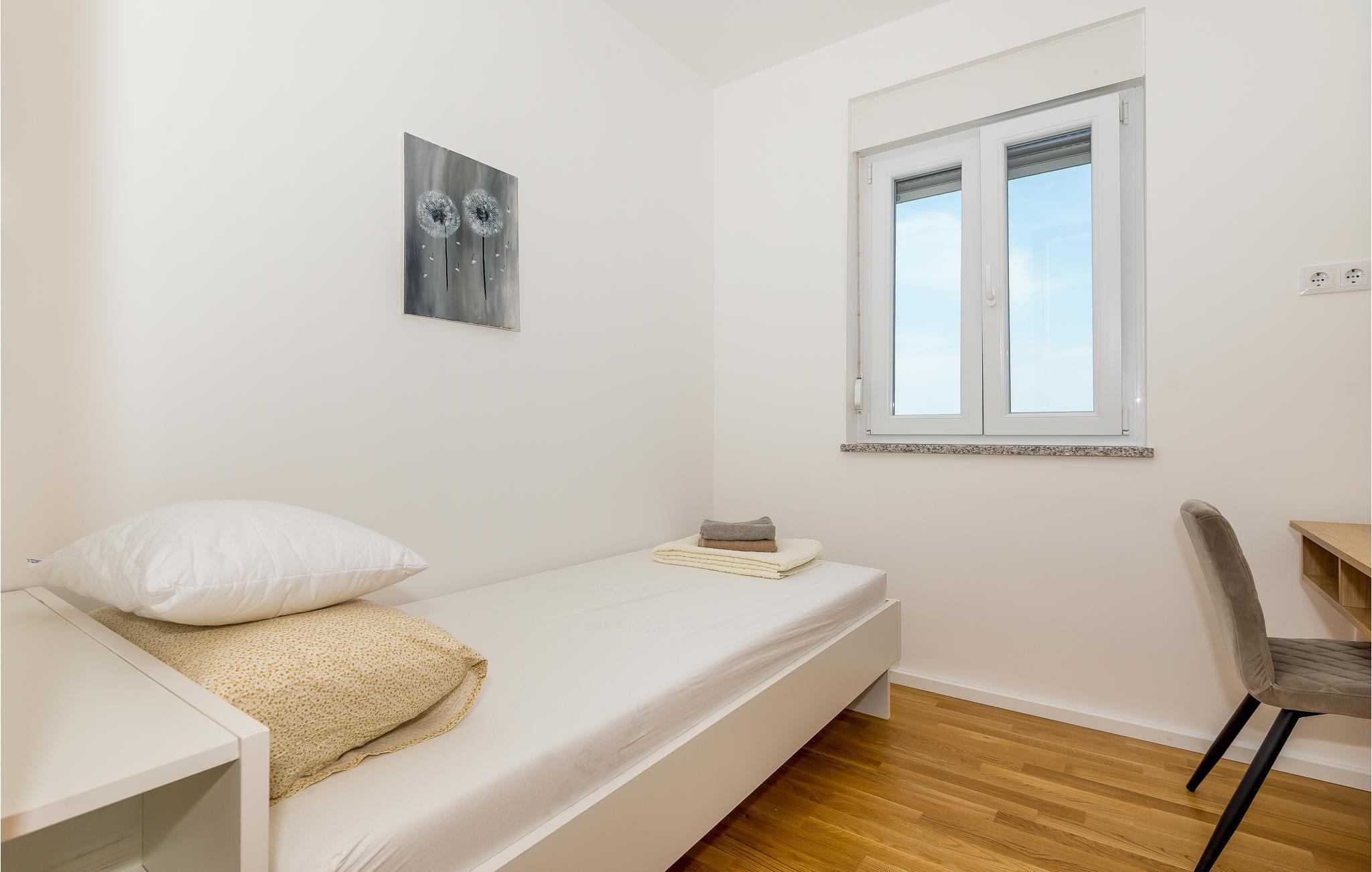 Dette feriehus i Jadrija, ikke langt fra byen Sibenik, strækker sig over to etager og har alt hvad I behøver for en uforglemmelig ferie. I stueetagen er der et køkken med stue, soveværelse og badeværelse. En trappe fører til første sal, hvor der er yderligere tre soveværelser og et badeværelse.