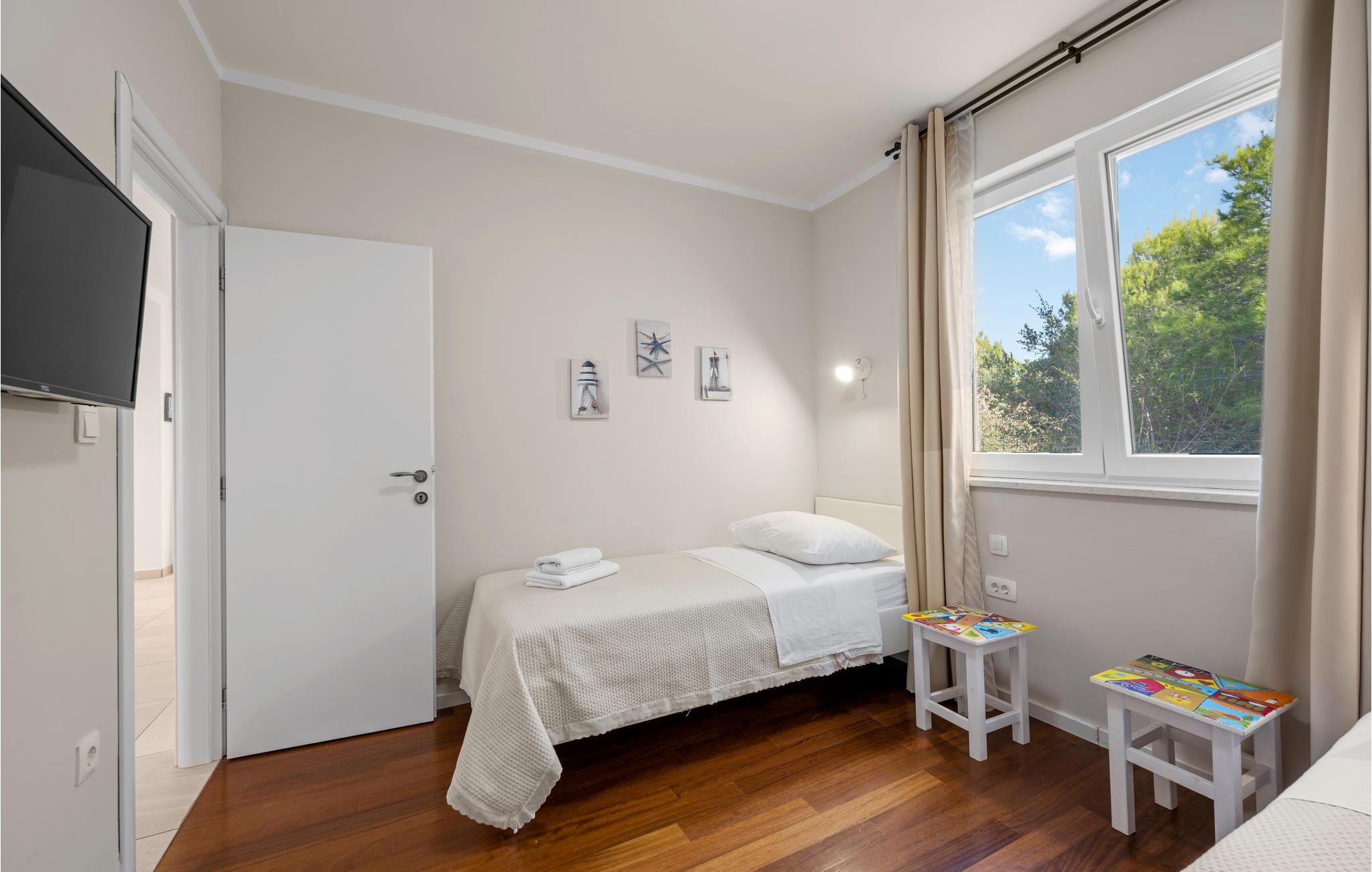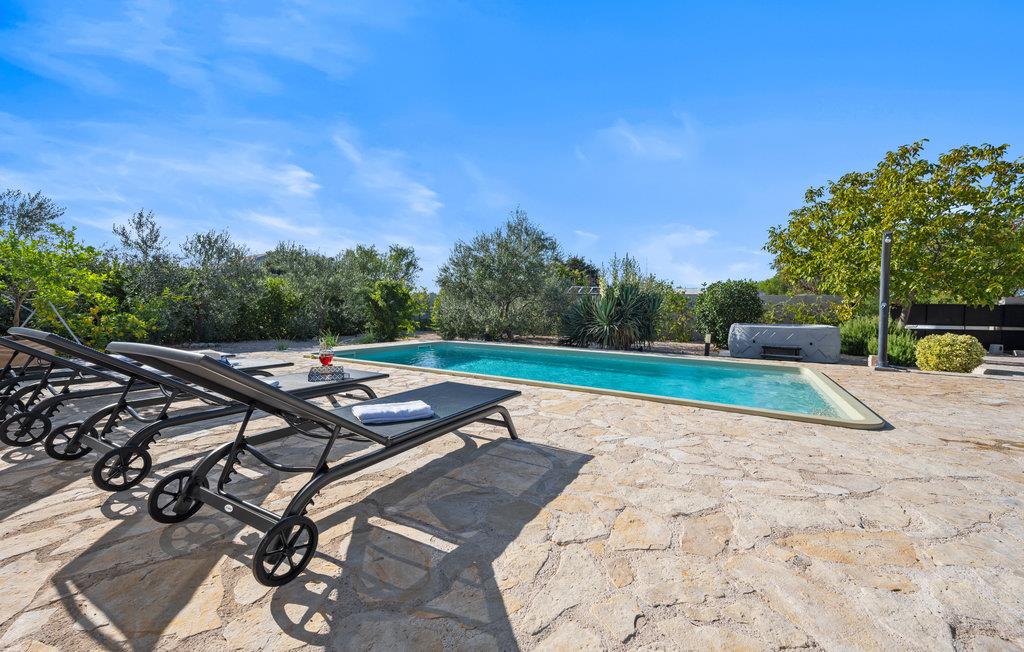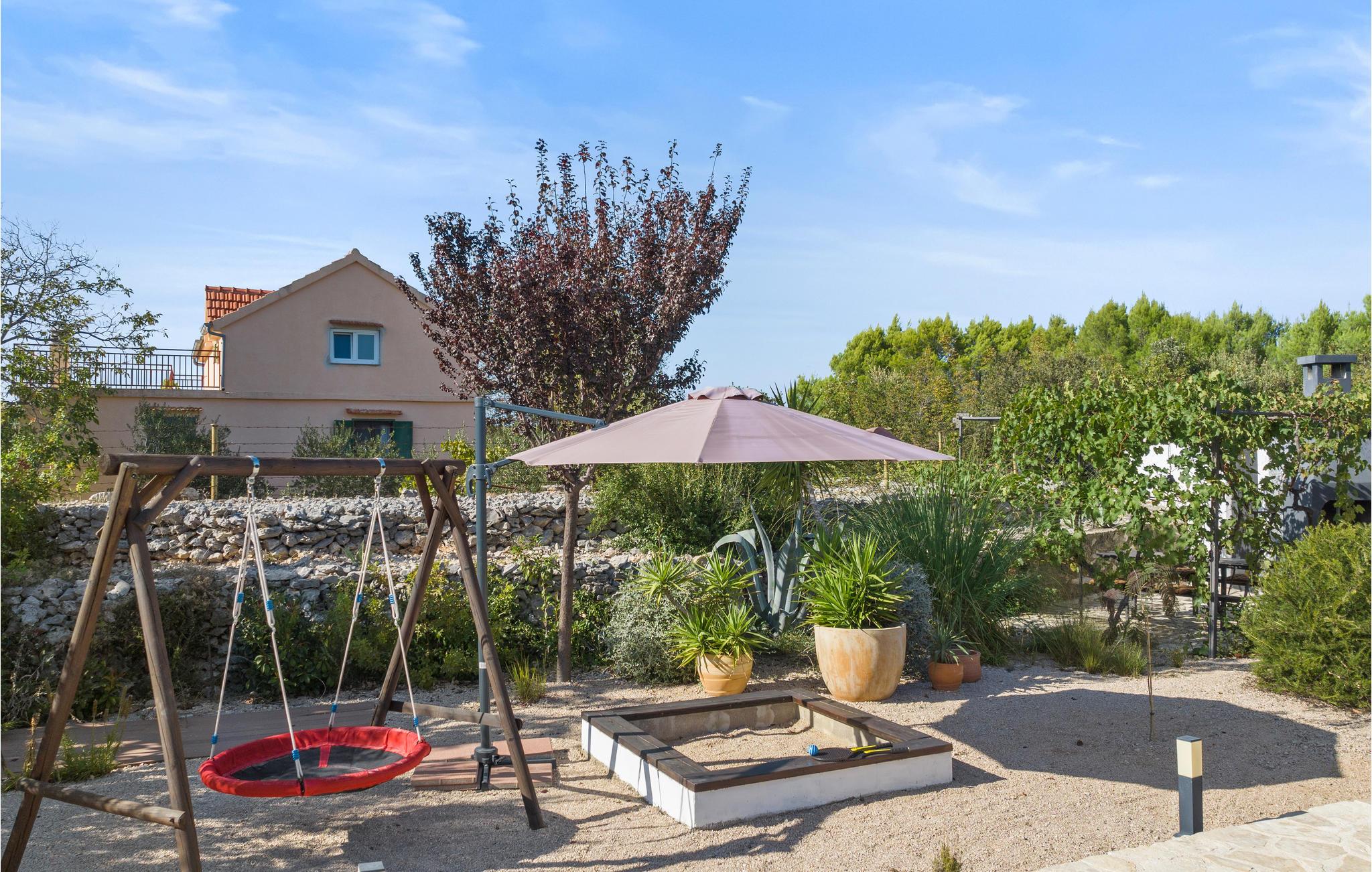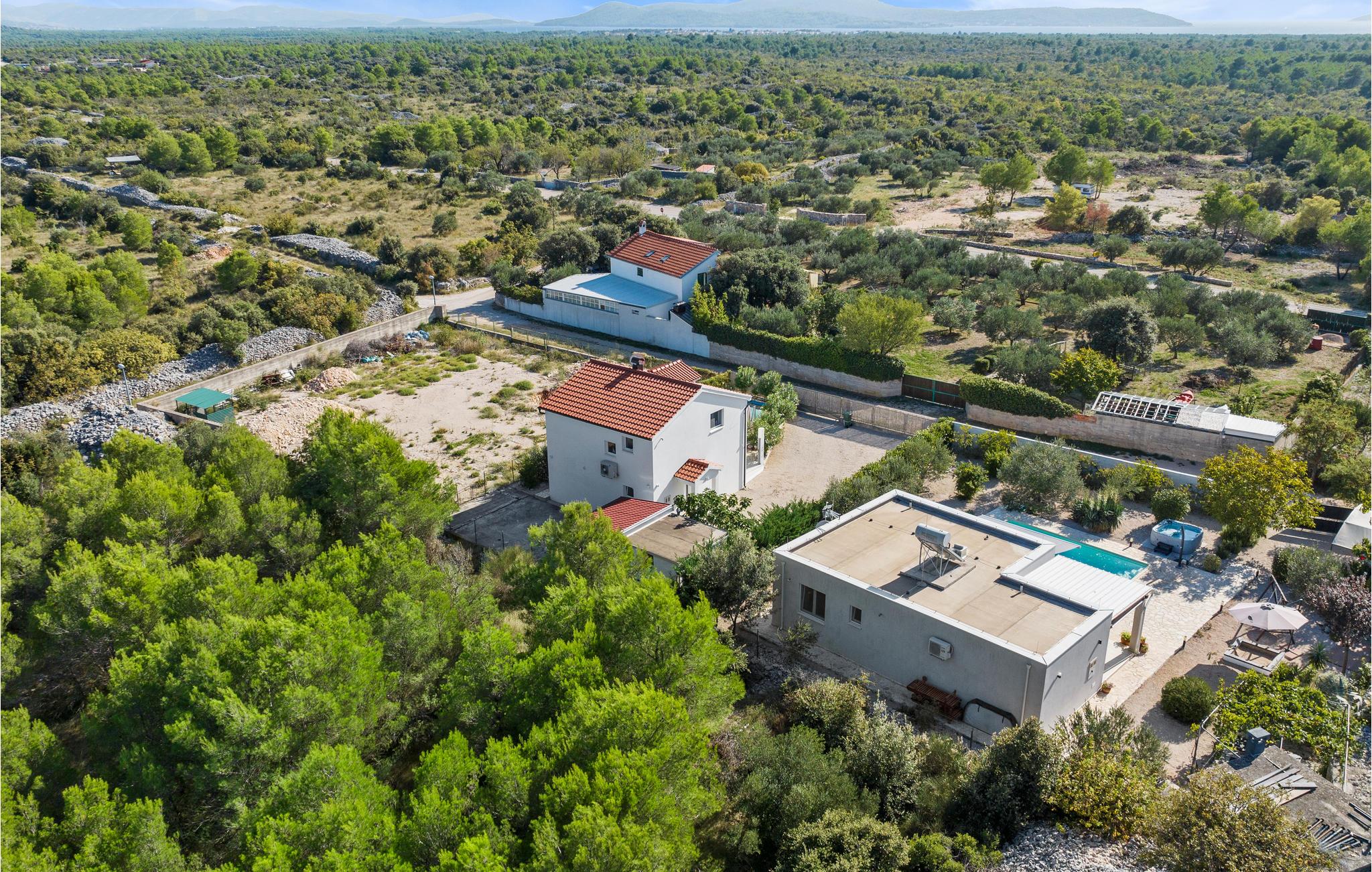Opfyld de største ønsker til ferie og vælg dette feriehus, der ligger i en lille by, ikke langt fra Šibenik. På den store indhegnede grund er der både pool, whirlpool og legeplads til de små – her kan I tilbringe mange timer. I bor i idylliske omgivelser, langt fra den travle by, omgivet af natur. Denne dalmatiske lille by ligger godt placeret trafikmæssigt, da det kun tager et kvarter at køre il den historiske by Šibenik og den populære ferieby Vodice. I kan tilbringe uforglemmeligt dejlige badedage ved Jadrija og Srima der bare ligger 3 km fra huset.