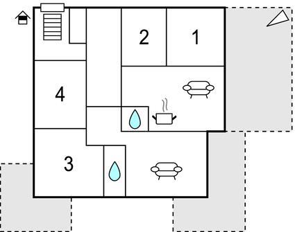 Huset er omgivet af en indhegnet have med fælles grill behagelige havemøbler. Den venlige ejer bor i stueetagen og står gerne til rådighed, hvis I har brug for hjælp eller information.