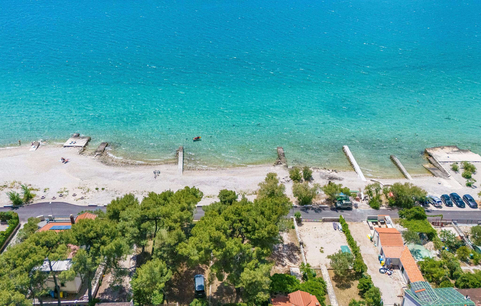 Denne lyse og rummelige lejlighed ligger kun en kort gåtur fra det turkisblå hav og tilbyder en komfortabel base, samtidig med at den kombinerer en strandferie med dejlige udflugter i naturen. Tilbered lækre retter sammen og slå jer ned ved det indbydende spisebord. Slap af om aftenen med et brætspil eller sæt jer til rette til en filmaften på sofaen.