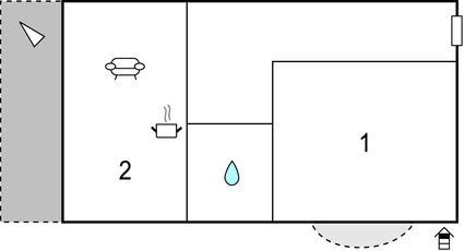 Opholdsstue/køkken - 1 Soveplads. (Enkeltseng(e)). 1 Soveplads. (Sofa, madras eller lignende).