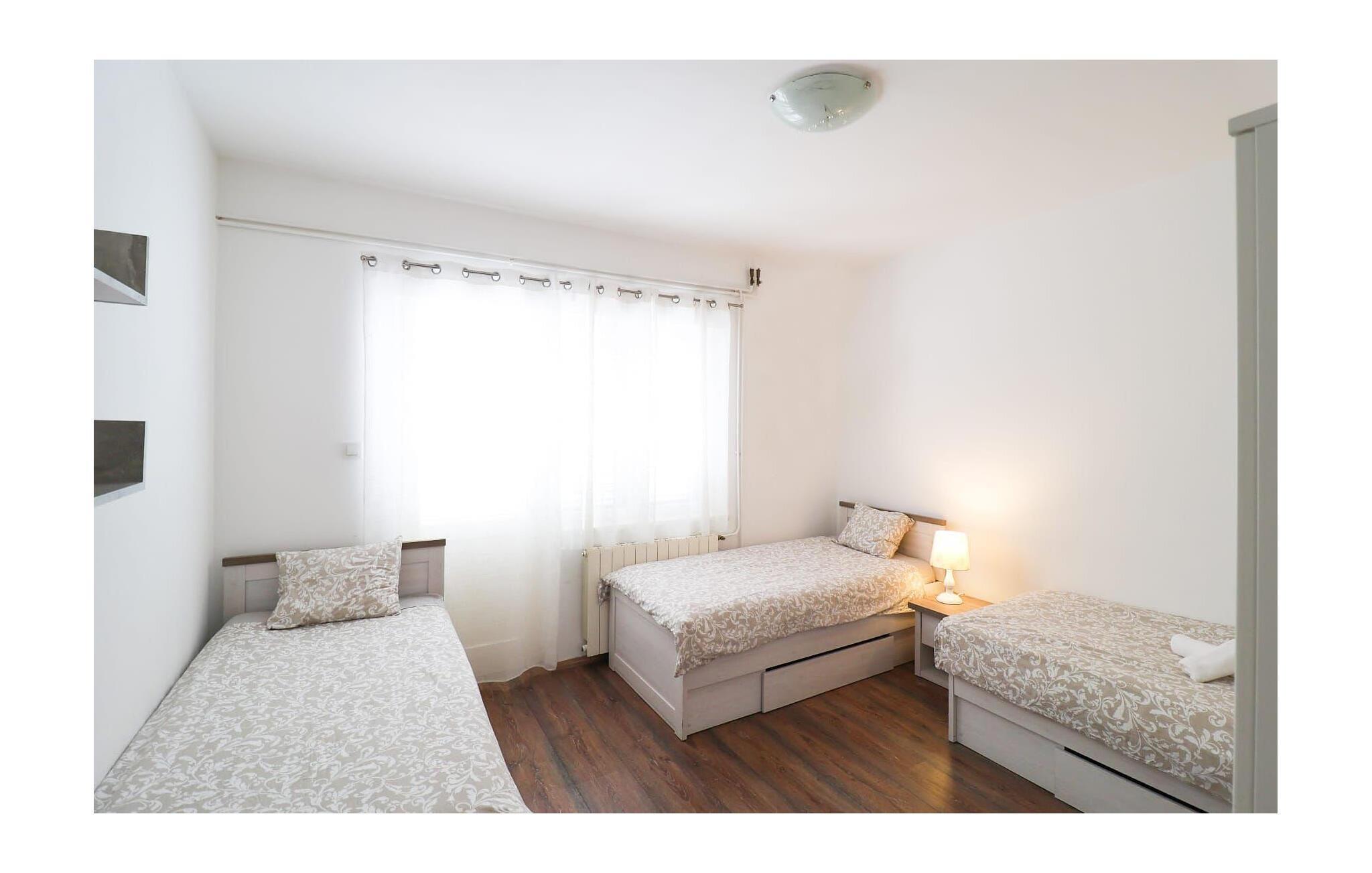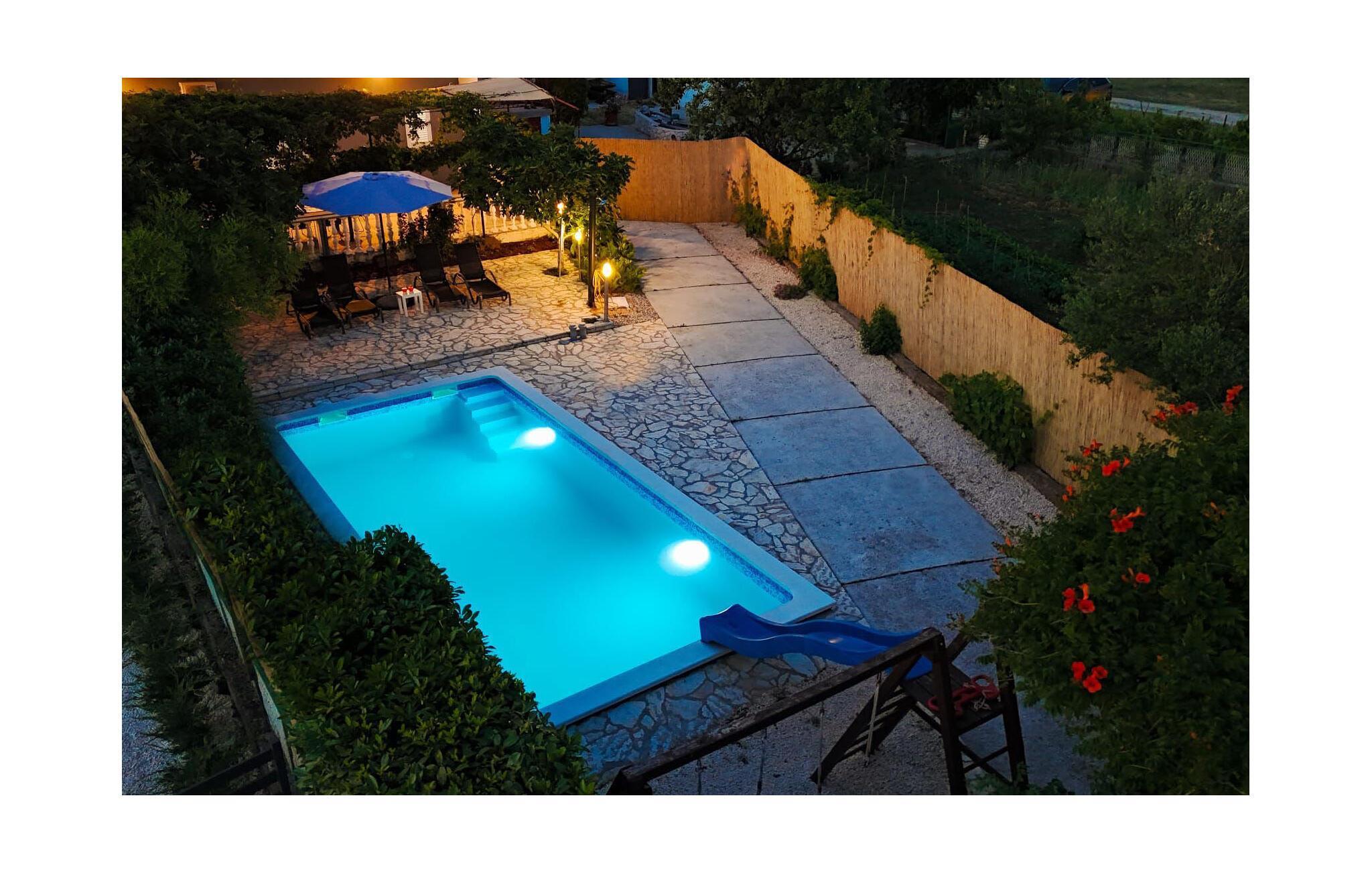 Denne dejligt og praktisk indrettede ferielejlighed ligger i et dobbelthus i den lille fredelige by Konjevrate. Hop en tur i lejlighedens pool, lige når I har lyst. I kan lave nem og lækker mad på grillen, mens børnene morer sig med at rutsje og gynge i haven. Vi kan varmt anbefale jer at besøge Sibenik, med mange historiske og kulturelle seværdigheder 17 km væk. Byen er med på UNESCOs kulturarvsliste, bl.a. pga den skønne katedral Sv. Jakov.