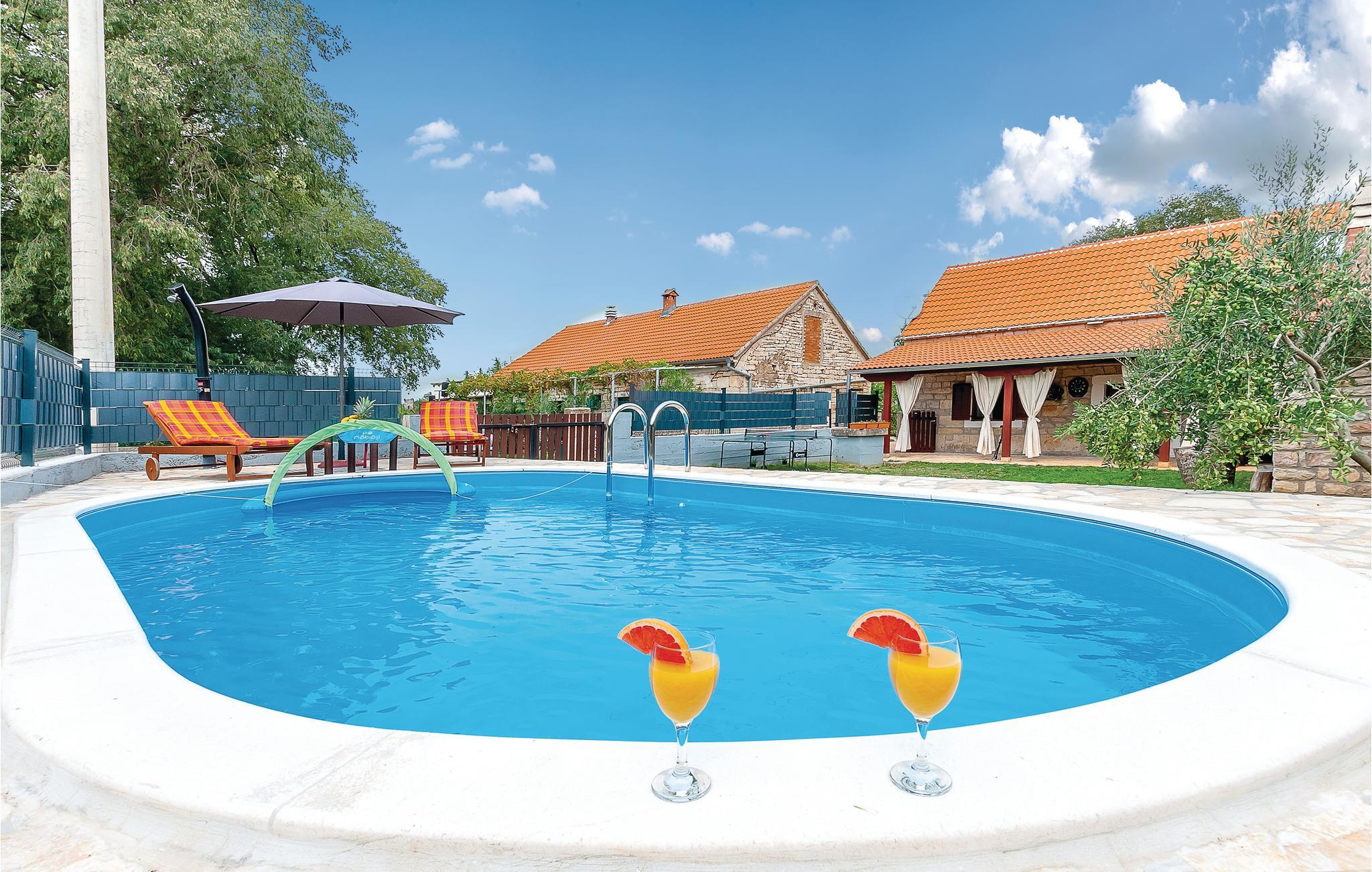 I den hyggelige lille by Necven, der næsten ligger i centrum af nationalparken Krka, ligger dette smukt renoverede 100 år gamle feriehus. Fra stueplan fører en stejl trappe op til tagetagen. De skrå tage på øverste etage er ca. 120 cm i siden. Ved poolen er der område til solbad og der er forskellige former for spil bl.a. bordfodbold, som sørger for sjov og underholdning. Mod betaling kan I leje elektrisk løbehjul. Nyd de rolige landlige omgivelser på afslappede vandreture og se ruinerne efter den historiske by Trosenj og tag en afkølende svømmetur i floden Krka. Det er helt obligatorisk at se Krkas vandfald og besøge den skønne by Šibenik.