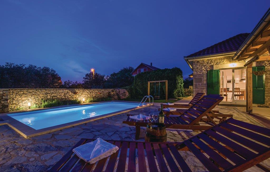 Dette dejlige hus er bygget i sten, har sin egen pool, ligger lige i hjertet af Krkas nationalpark og er oplagt til ferie for en lille familie.