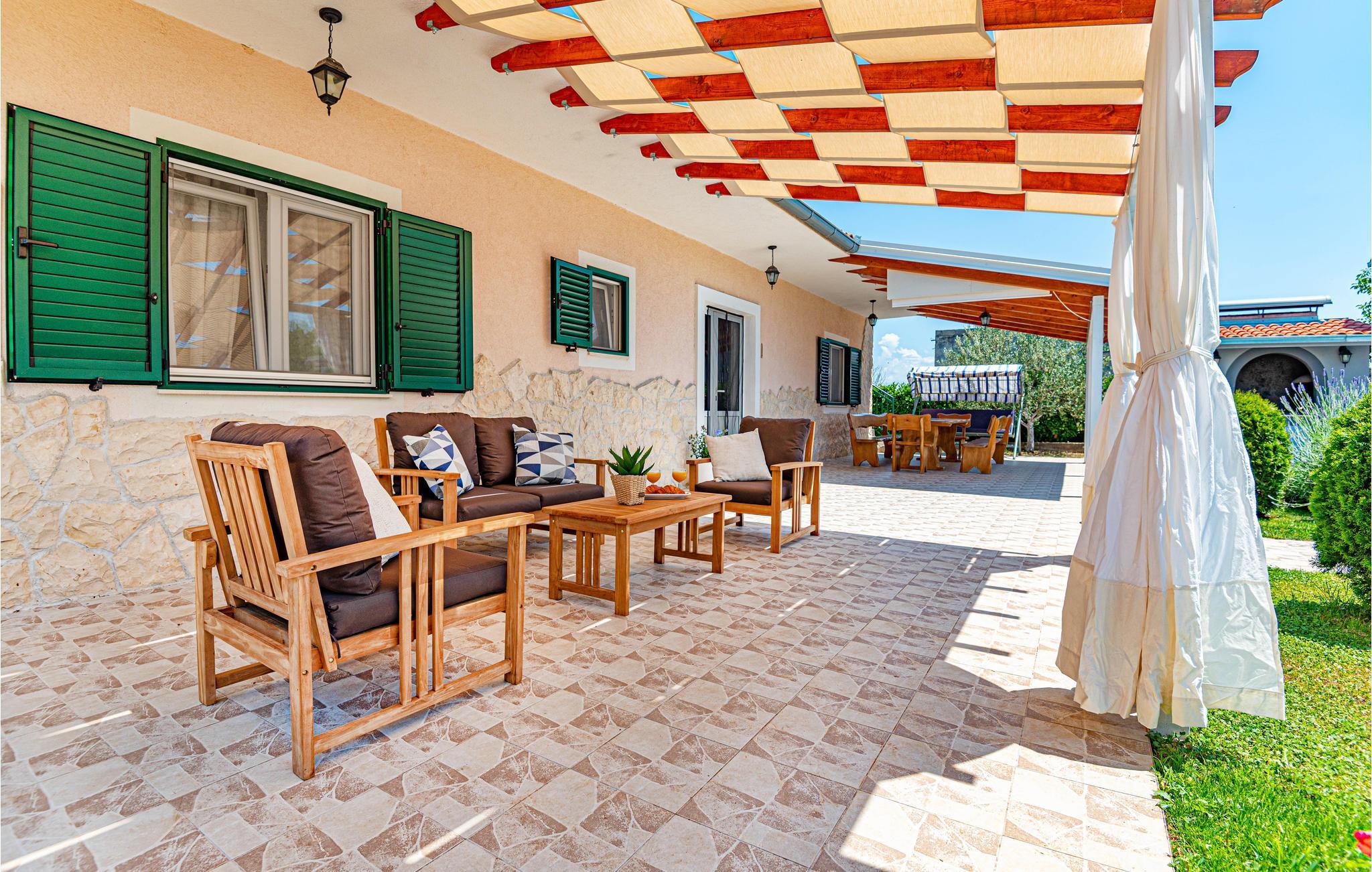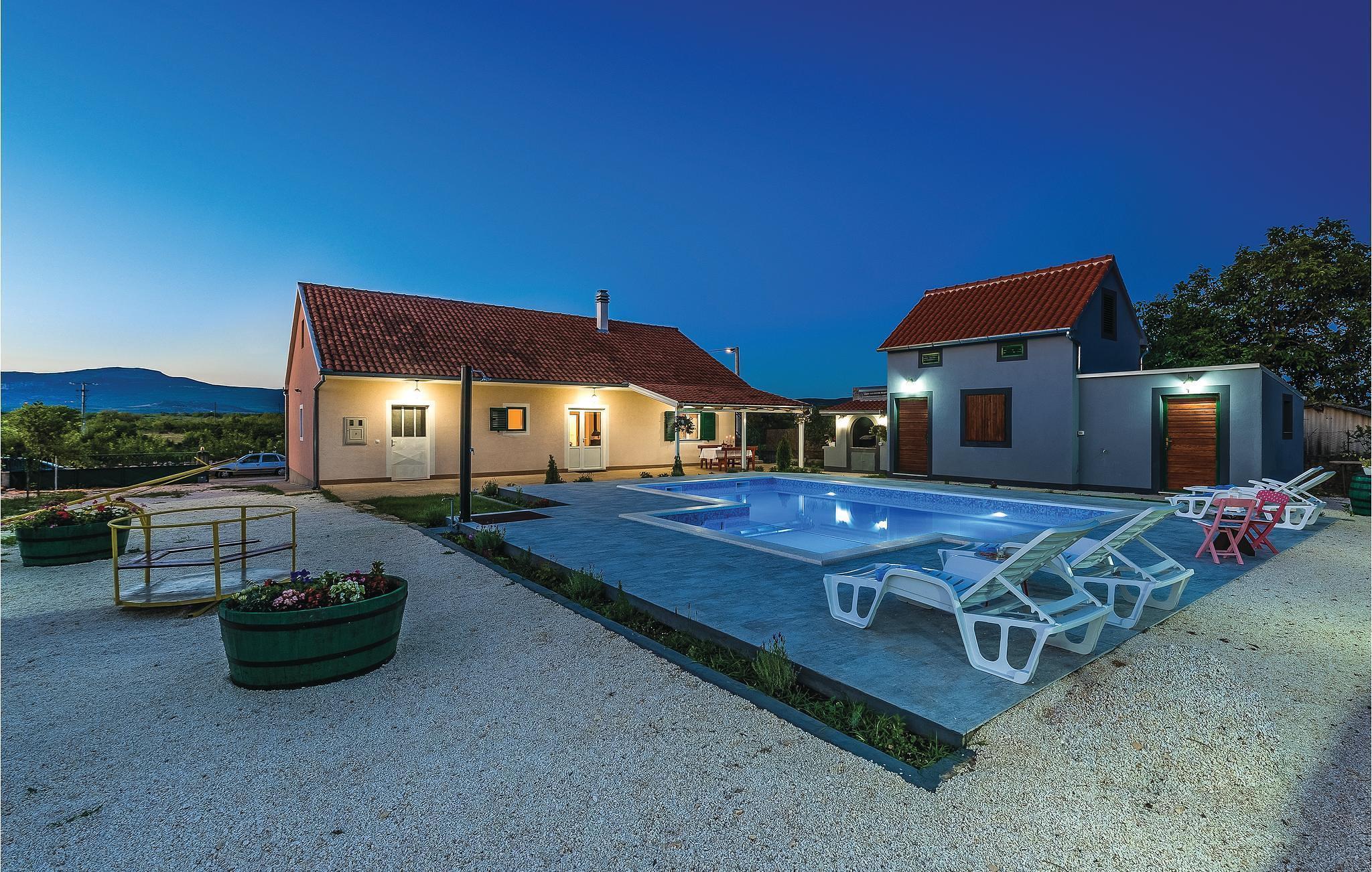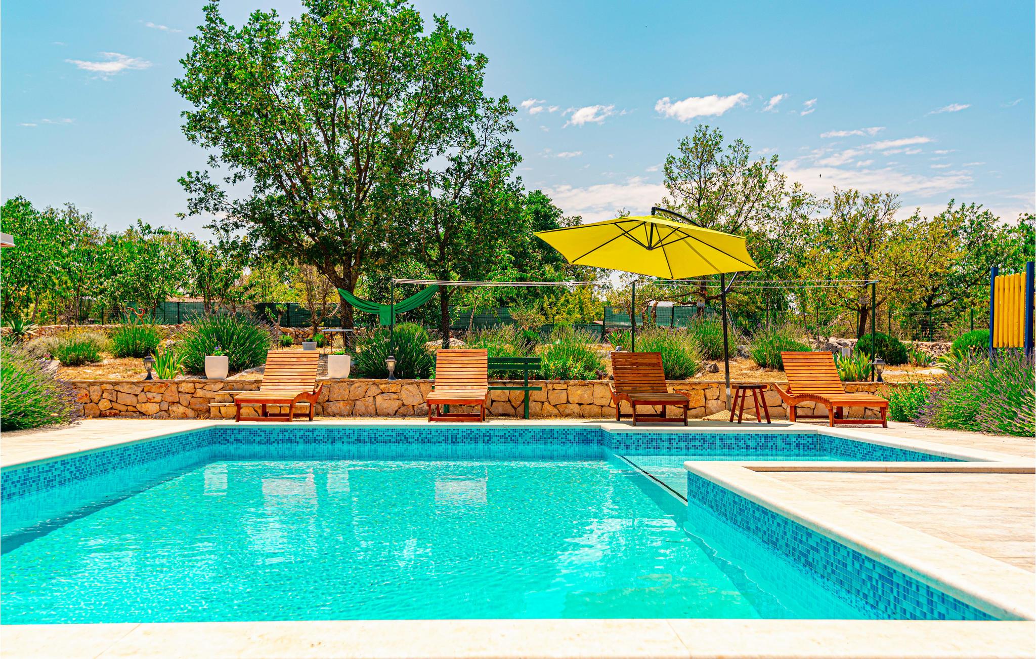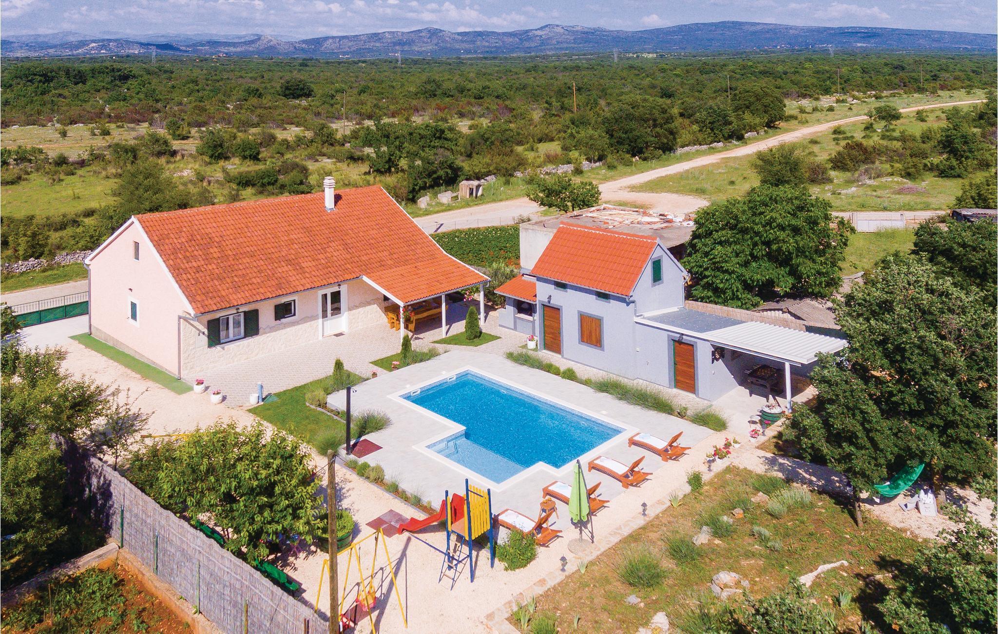 Dette komfortable og venligt indrettede feriehus ligger i den lille landsby Pakovo Selo, ikke langt fra Sibenik. Hvis I vil undgå byens travlhed og nyde jeres ferie i fred og ro, så er I her på rette sted med familien. Slap af ved poolen, mens børnene nyder ubesværet leg. I gården er der også en grill, som I kan tilberede lækre retter på. Gå ikke glip af lejligheden til at besøge Sibenik med mange historiske og kulturelle seværdigheder. Dertil anbefaler vi en udflugt til den flotte nationalpark Krka.