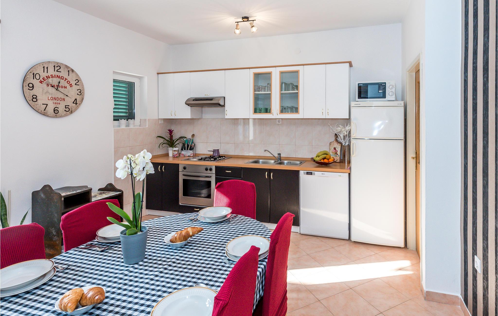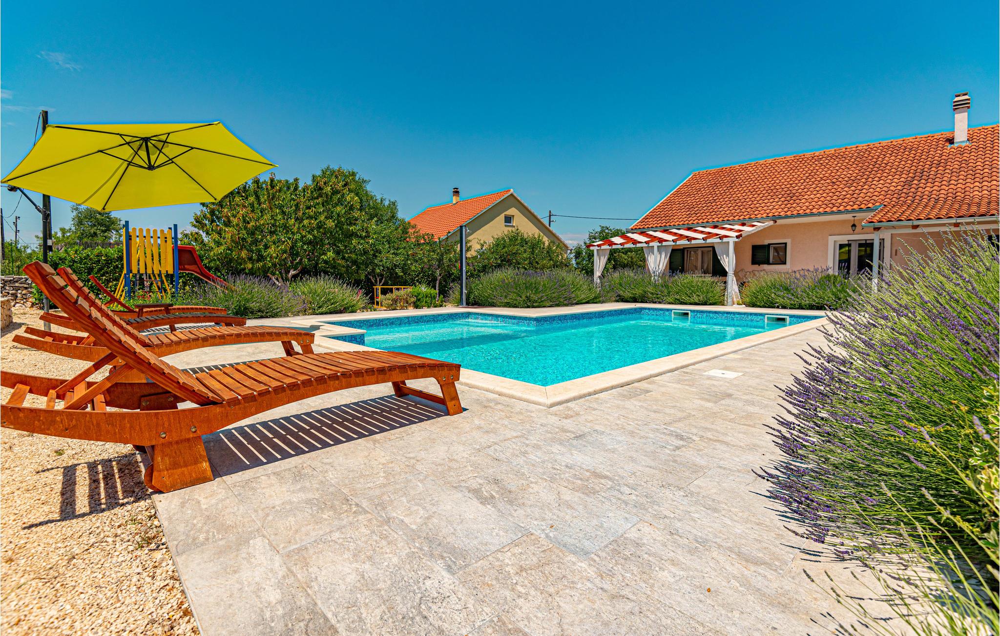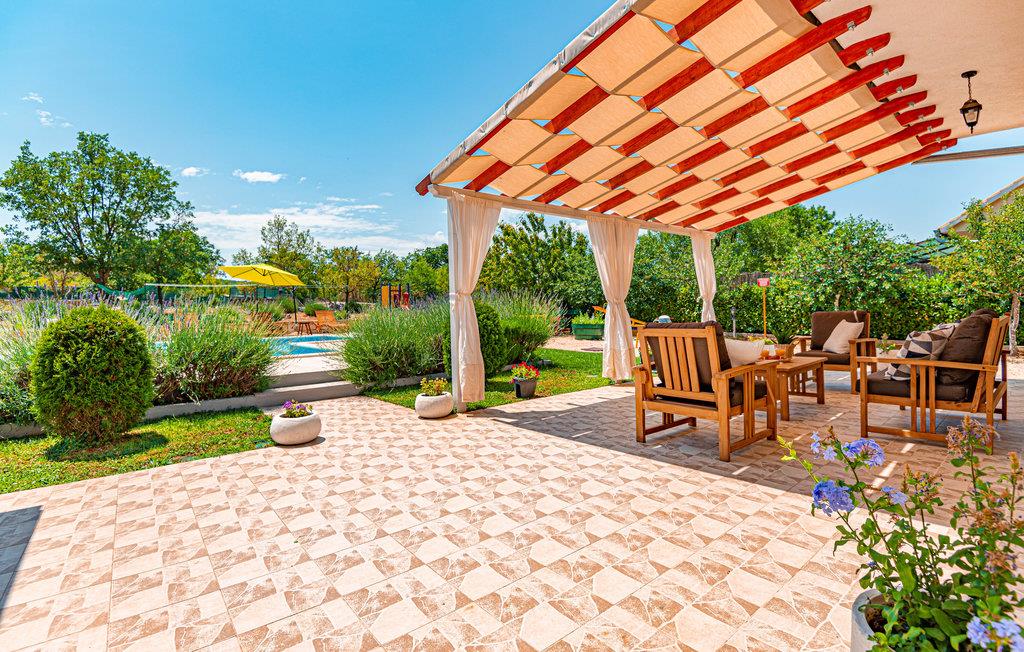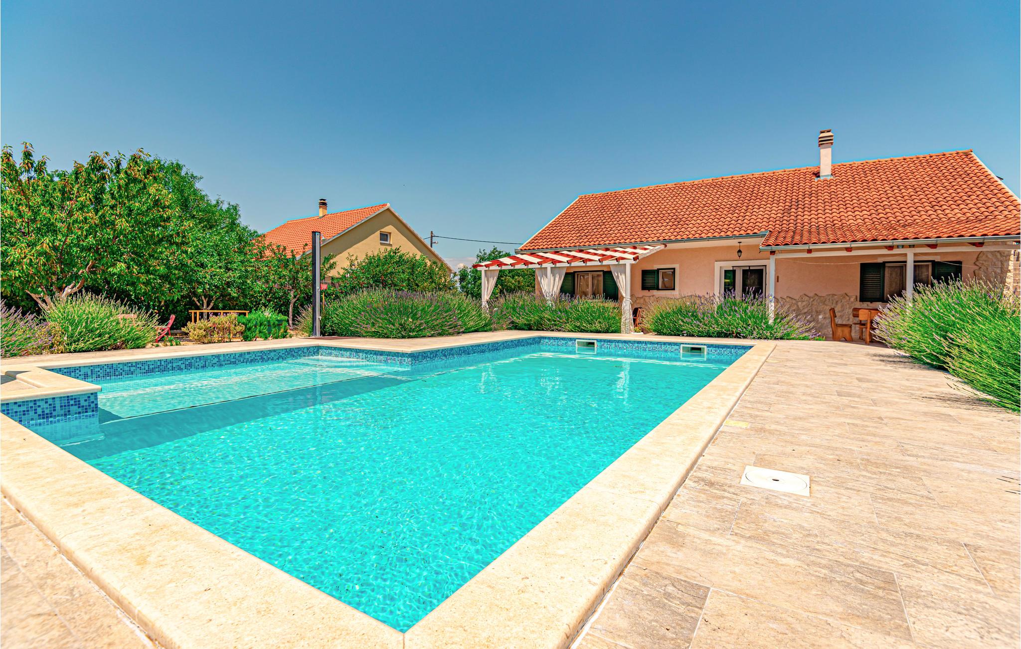 Dette komfortable og venligt indrettede feriehus ligger i den lille landsby Pakovo Selo, ikke langt fra Sibenik. Hvis I vil undgå byens travlhed og nyde jeres ferie i fred og ro, så er I her på rette sted med familien. Slap af ved poolen, mens børnene nyder ubesværet leg. I gården er der også en grill, som I kan tilberede lækre retter på. Gå ikke glip af lejligheden til at besøge Sibenik med mange historiske og kulturelle seværdigheder. Dertil anbefaler vi en udflugt til den flotte nationalpark Krka.