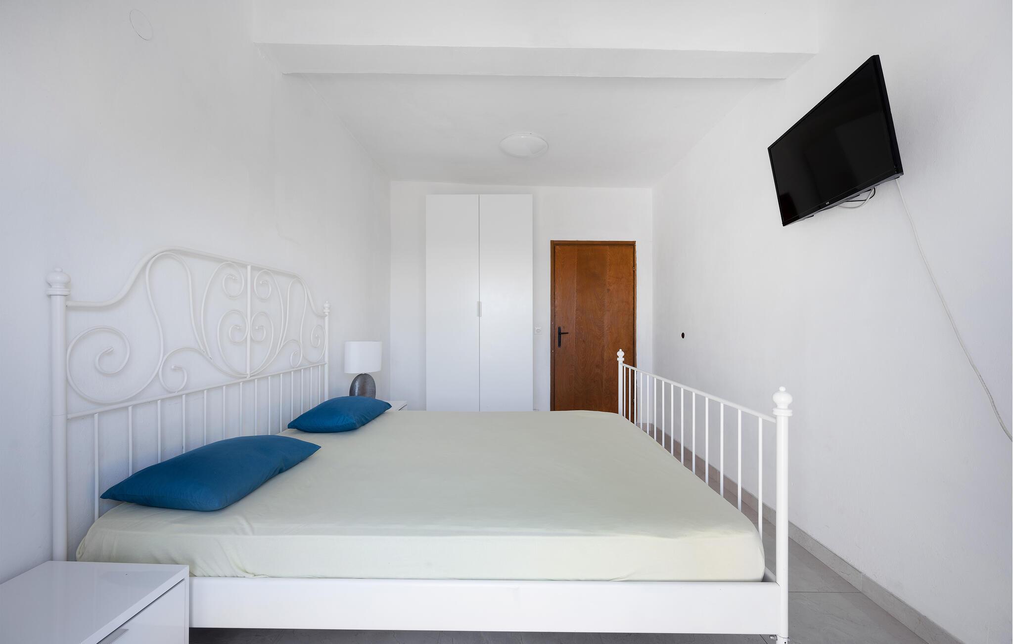 Denne strandnære ferielejlighed byder på et lyst og venligt interiør, der indbyder til afslapning og hygge. Det lyse køkken er fuldt udstyret og tilbyder alt, hvad I skal bruge for at tilberede lækre måltider – fra den elegante ovn til det rummelige køleskab. I den tilstødende, minimalistisk indrettede spisestue er der rigeligt med plads til at nyde hyggelige aftener med familie eller venner.