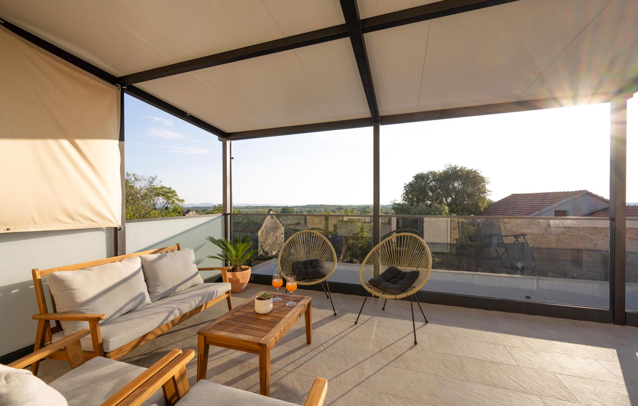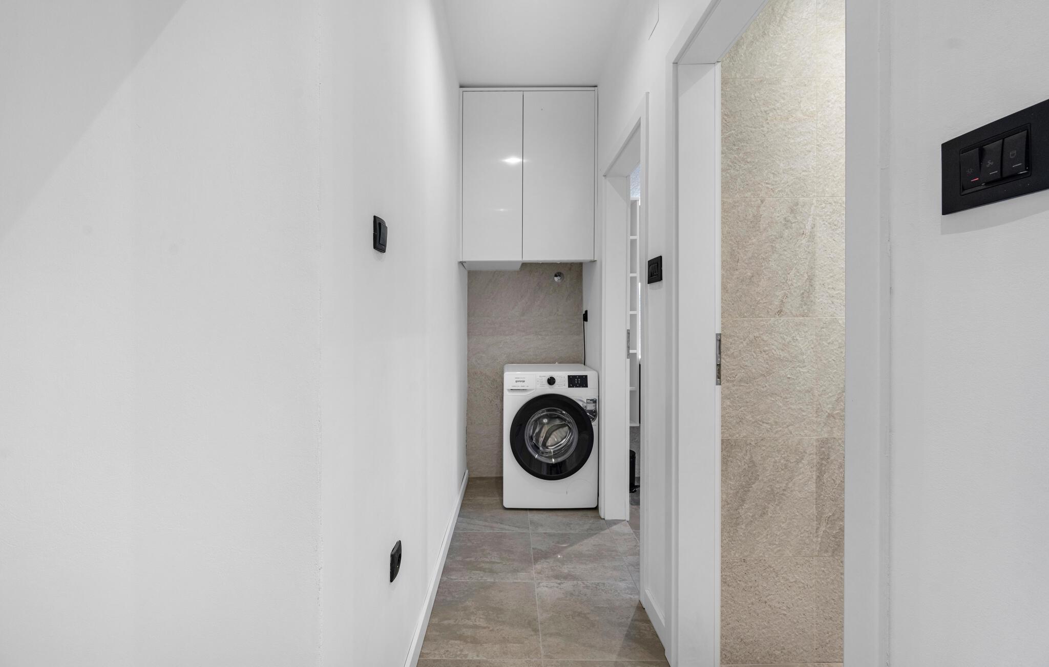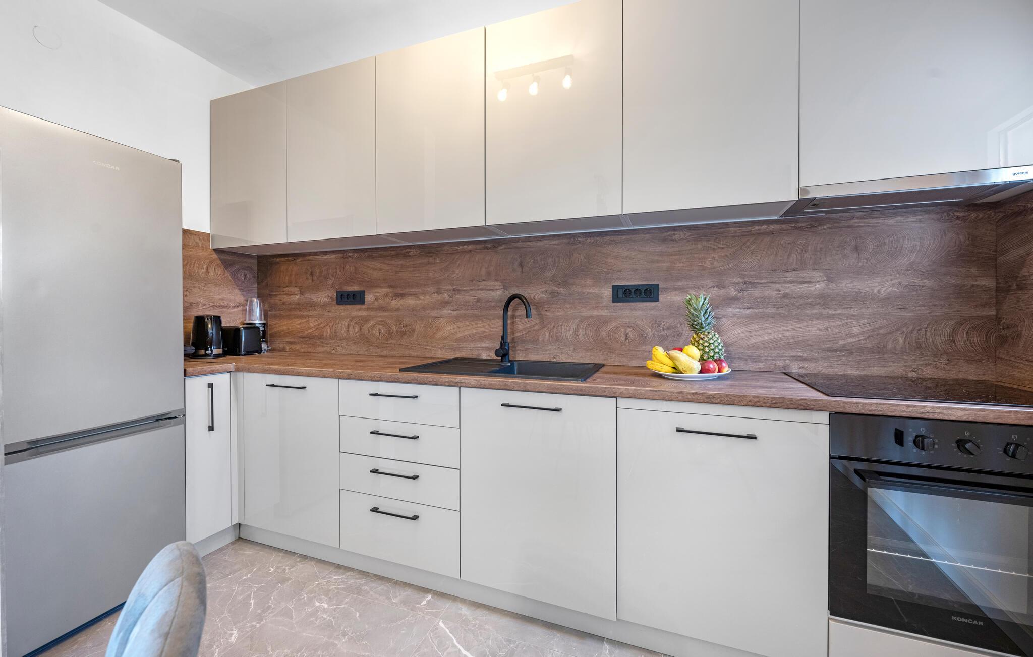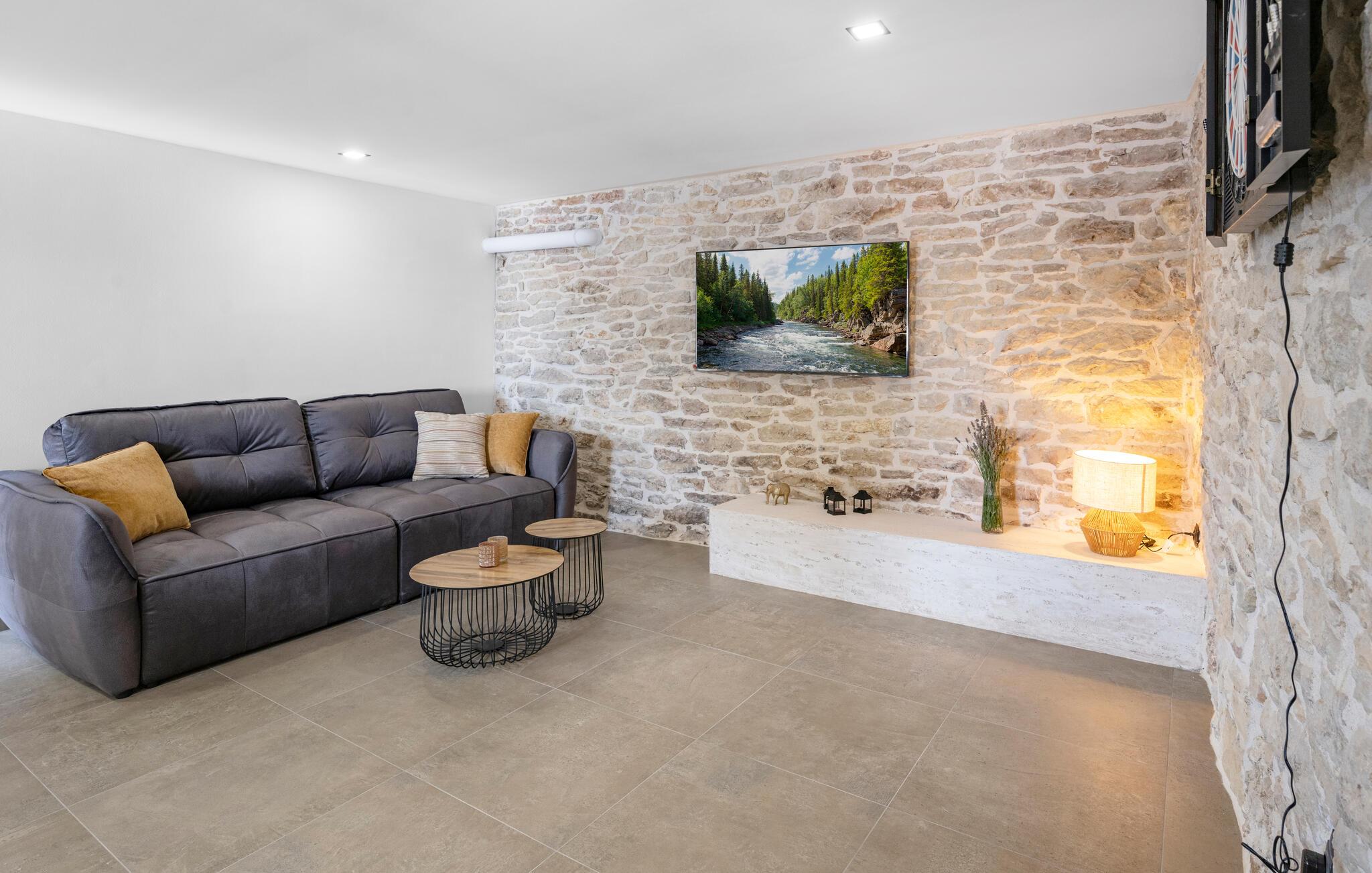 Nyd en afslappende ferie i dette moderne feriehus i Plastovo, en charmerende landsby ikke langt fra Krka Nationalpark. Dette elegante hjem har et strejf af luksus. Slap af på den store terrasse, som er udstyret med en rummelig pool og komfortable liggestole. Begynd jeres dage med et frisk hop i det kølige vand og nyd de fredelige omgivelser. Husets stilfulde interiør lægger op til at nyde livet og have det rart. Find jer godt til rette i den komfortable sofa i stuen og nyd den moderne indretning. I det veludstyrede køkken kan I tilberede jeres ferieretter og nyde dem ved spisebordet med familie eller venner.