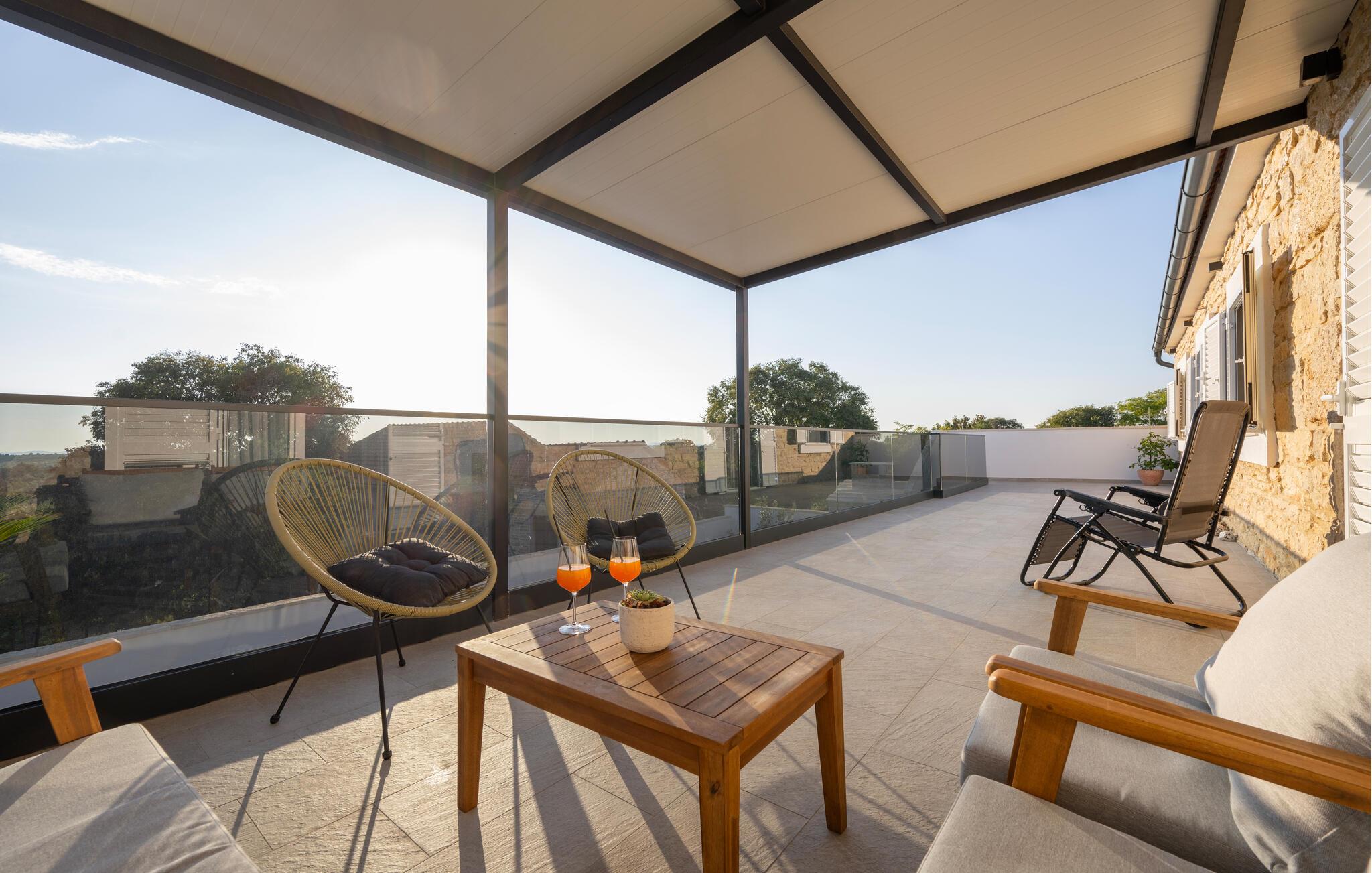 - Delvis overdækket terrasse
