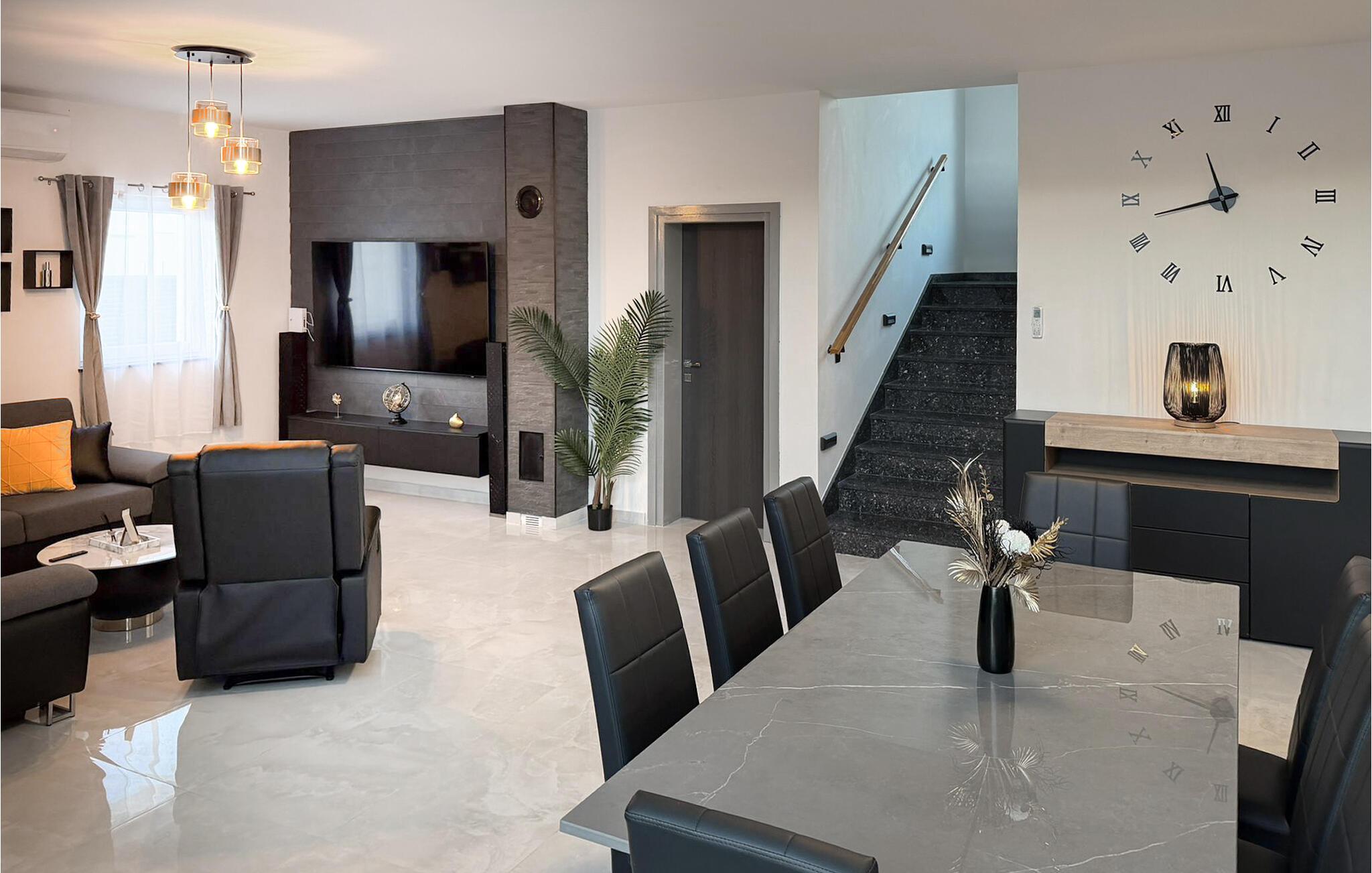 Velkommen til dette moderne og rummelige feriehus, hvor I kan kombinere hyggelige dage i stilfulde og komfortable omgivelser med en solrig strandferie. Skab kulinariske lækkerier under sjove madlavningsaftener, slap af i den hyggelige opholdsstue og nyd hyggelige måltider med venner eller familie. Snak om aftenen på den rummelige sofa eller find sammmen til en hyggelig spilleaften.