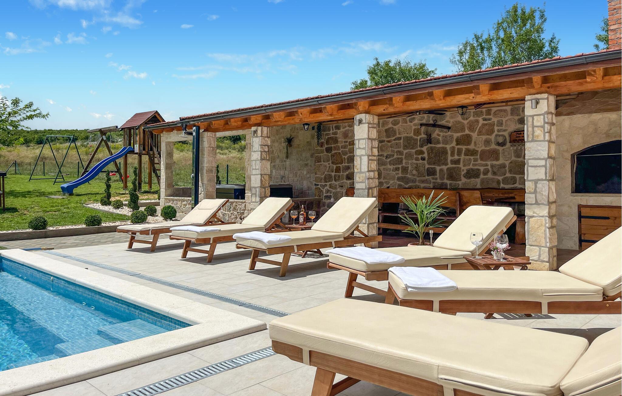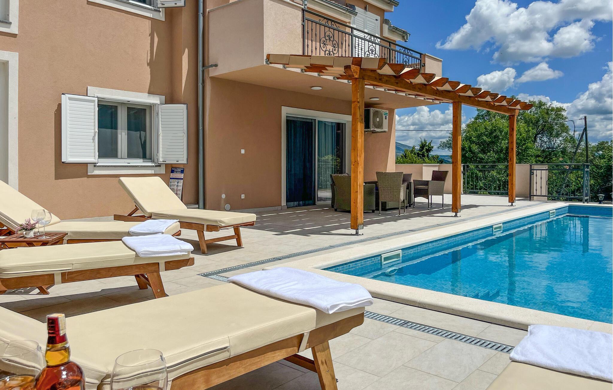 Huset giver jer en skøn ramme, hvor I kan slappe af og få en pause fra hverdagen sammen med hele familien og jeres hund. Nyd den vide udsigt til det smukke landskab fra en af ??de to altaner. I løbet af dagen kan I tage en frisk dukkert i poolen lige foran huset og nyde den kroatiske sol.