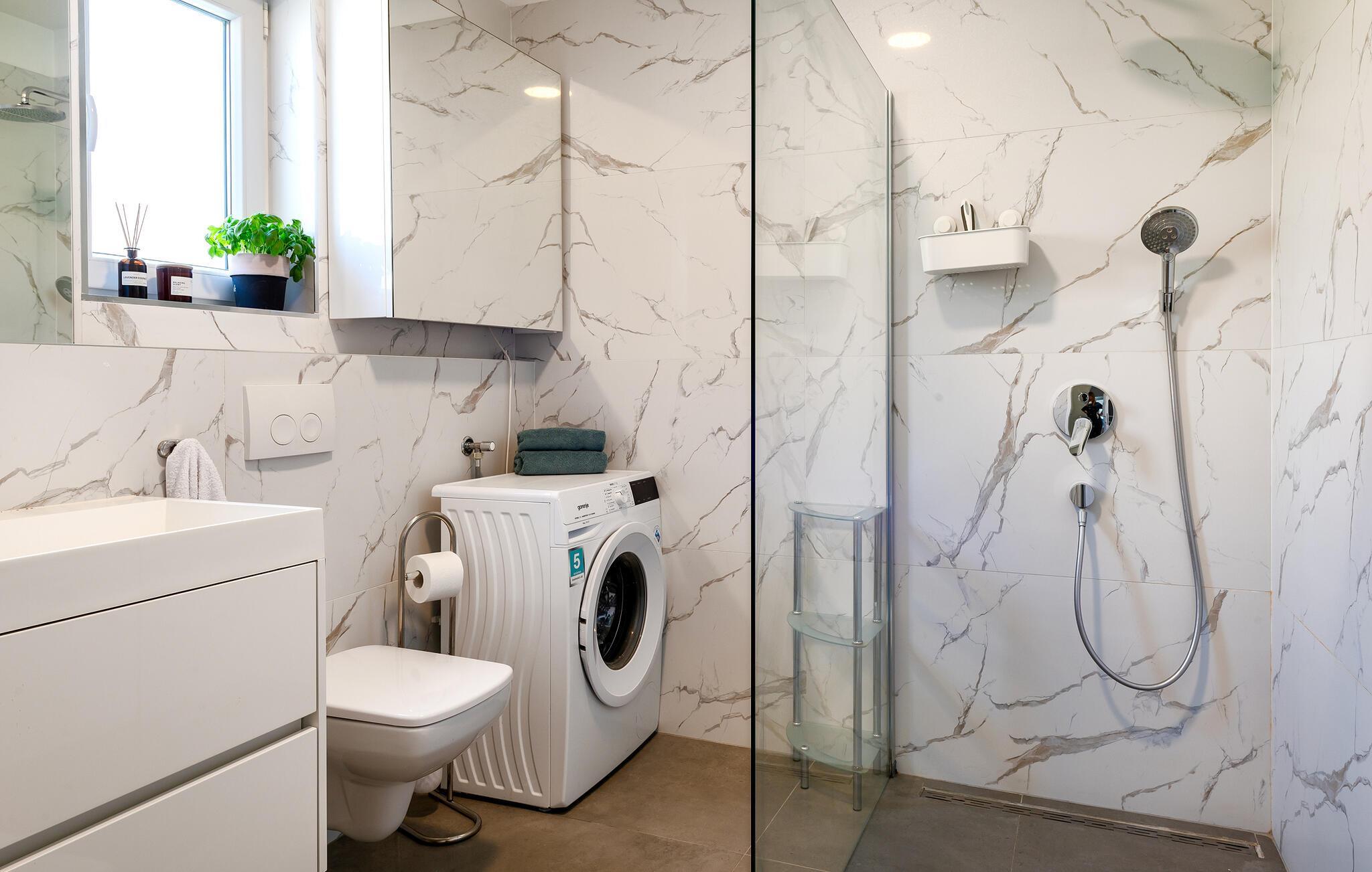 Badeværelse (nr. 1) - WC. Varmt og koldt vand. Bruser