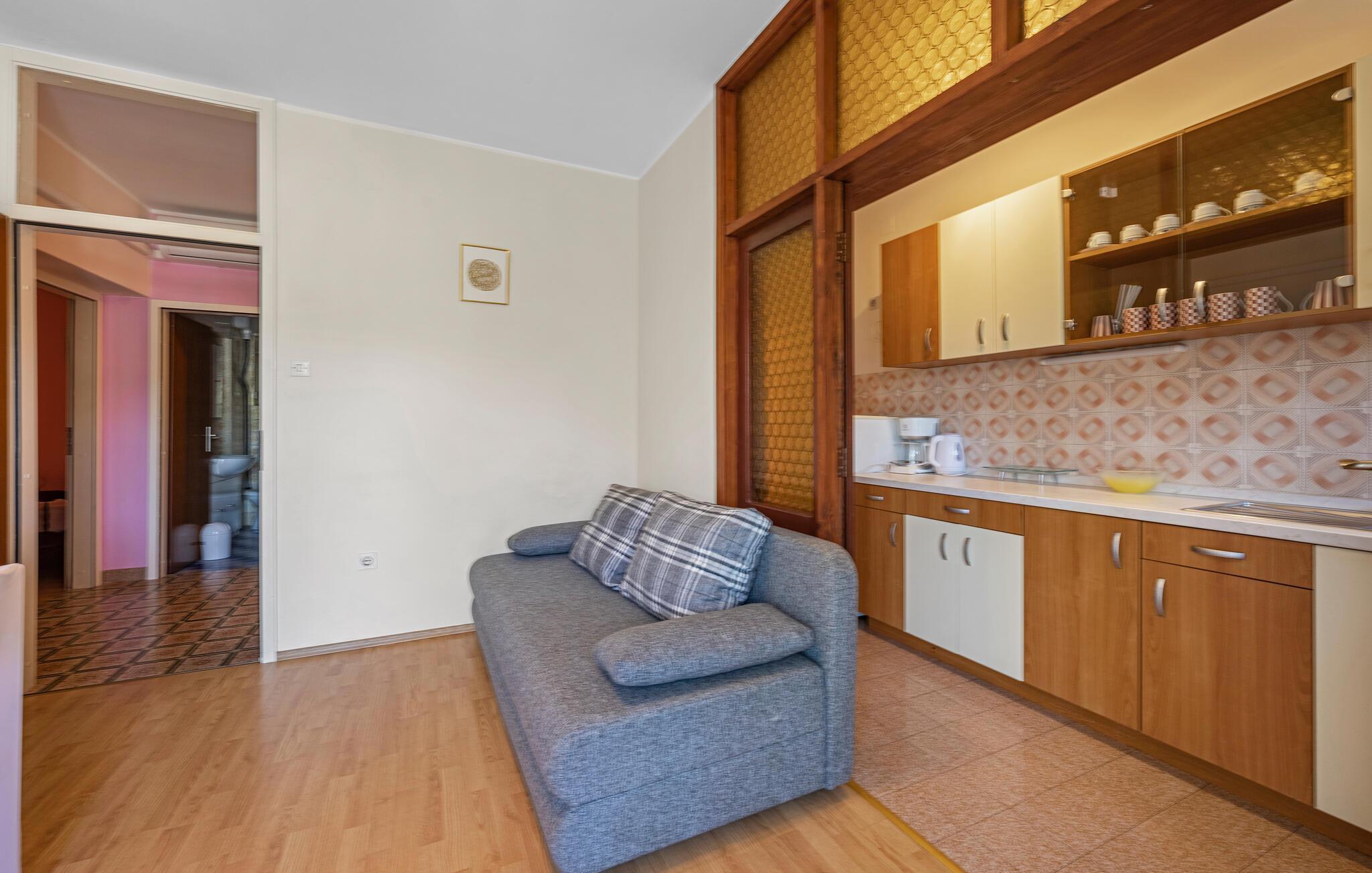 Tilbring jeres ferie i denne ferielejlighed nær Sibenik og Solaris, og nyd den indbydende atmosfære samt den behagelige indretning. Det veludstyrede køkken inviterer til madlavning, mens I kan tilbringe hyggelige aftener i den attraktive stue.