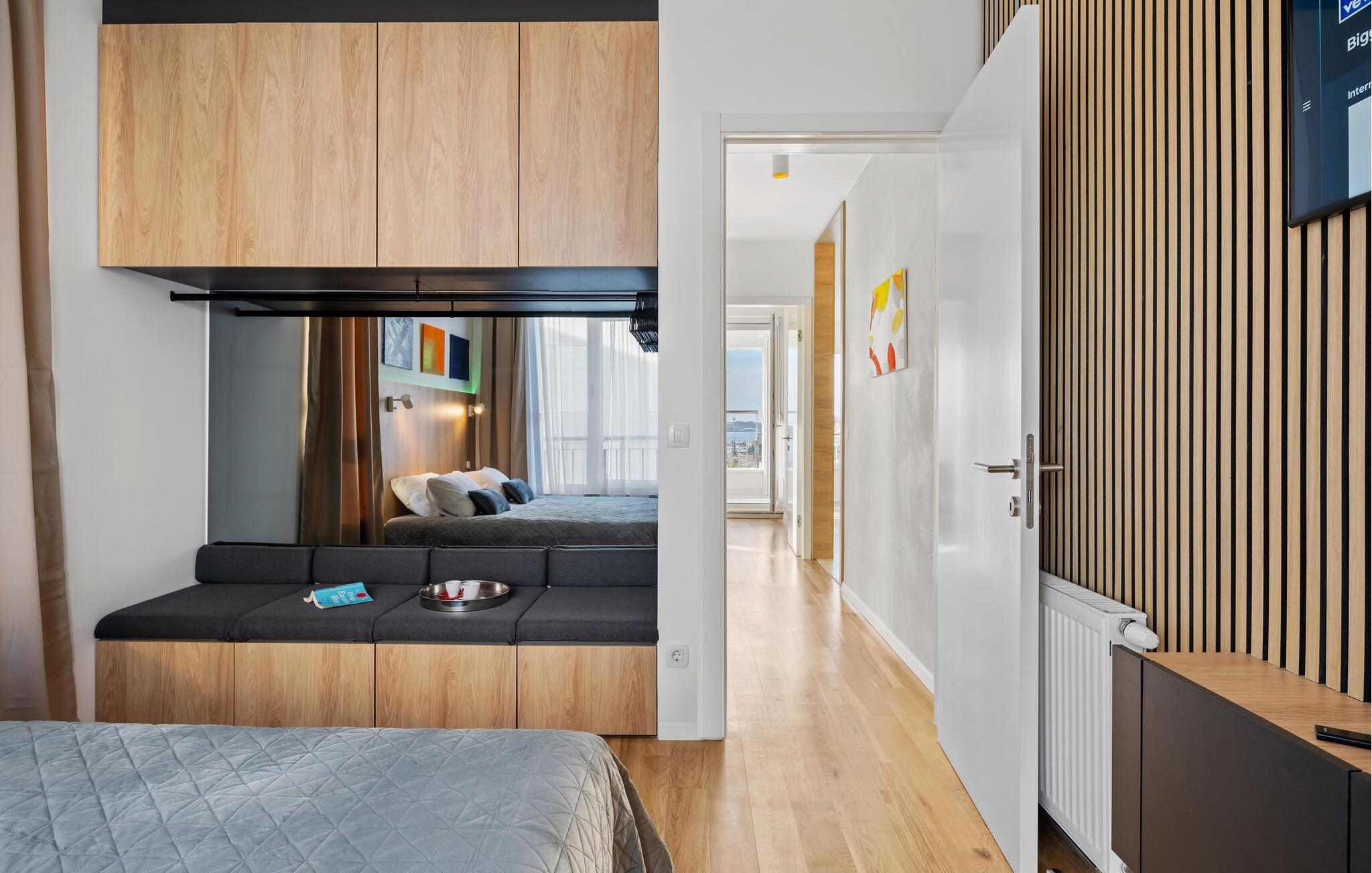 På jeres solrige panoramaterrasse kan I nyde det vidunderlige middelhavsklima i timevis, spise morgenmad eller lade blikket vandre over bugten med jeres yndlingsdrink.